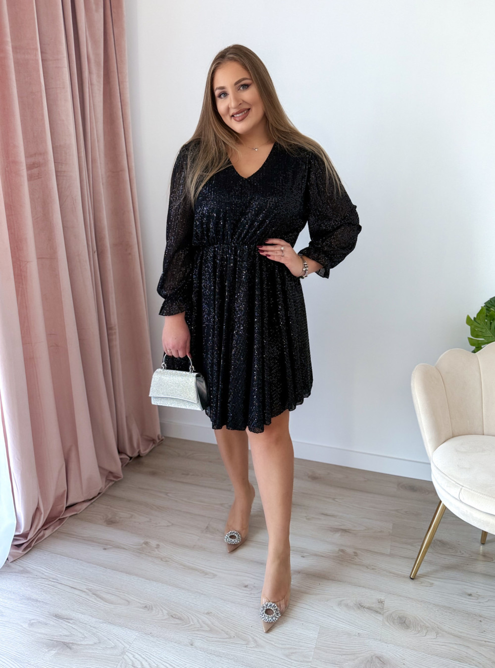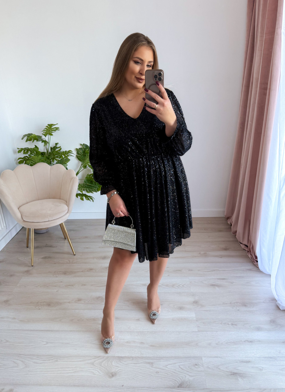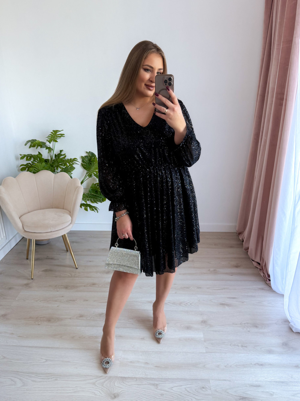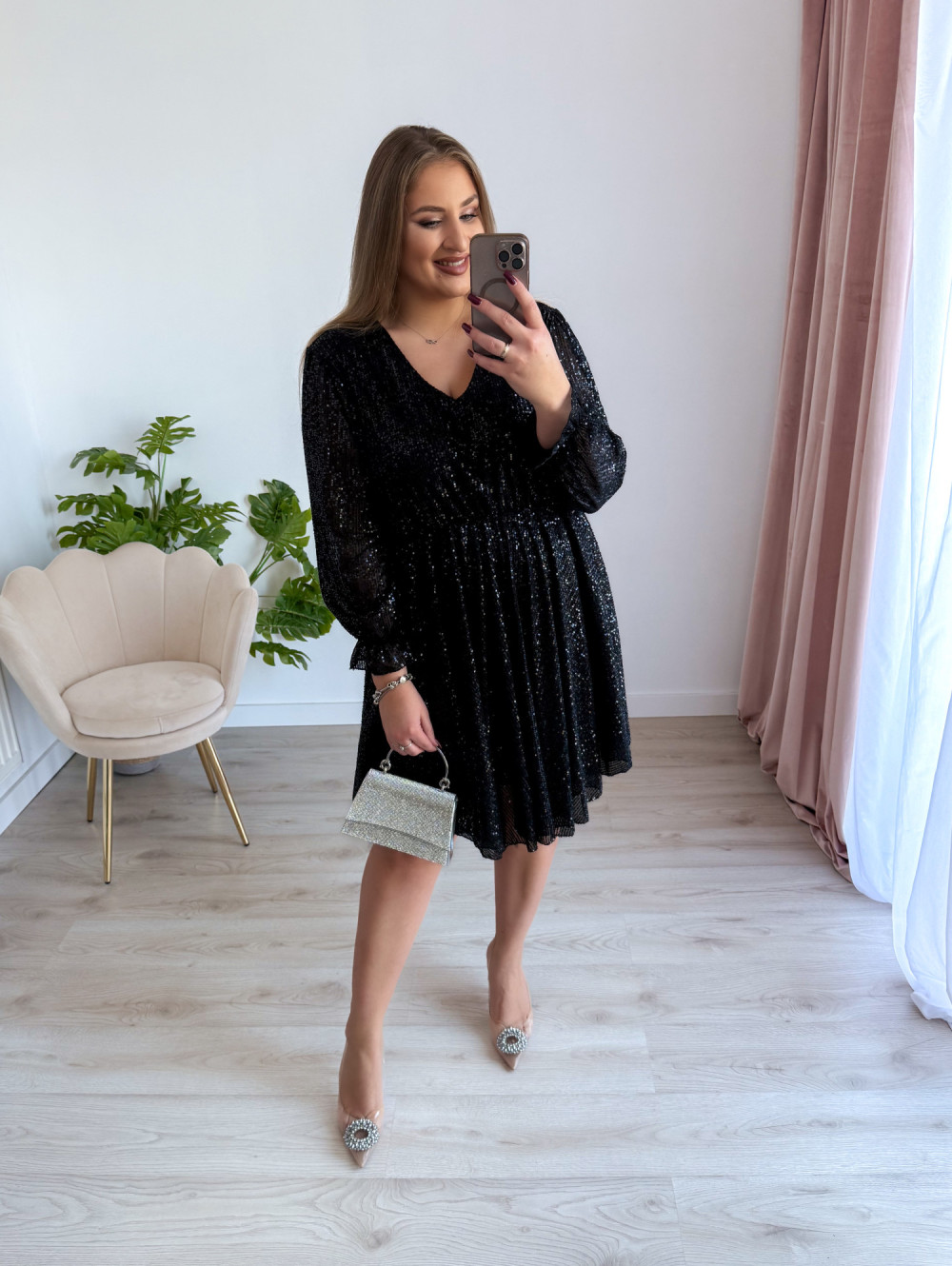 Sukienka krótka cekinowa z dekoltem V Glam Star - czarna
