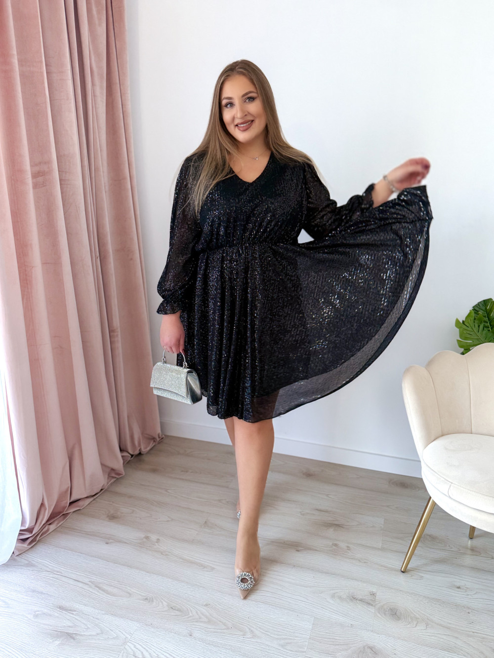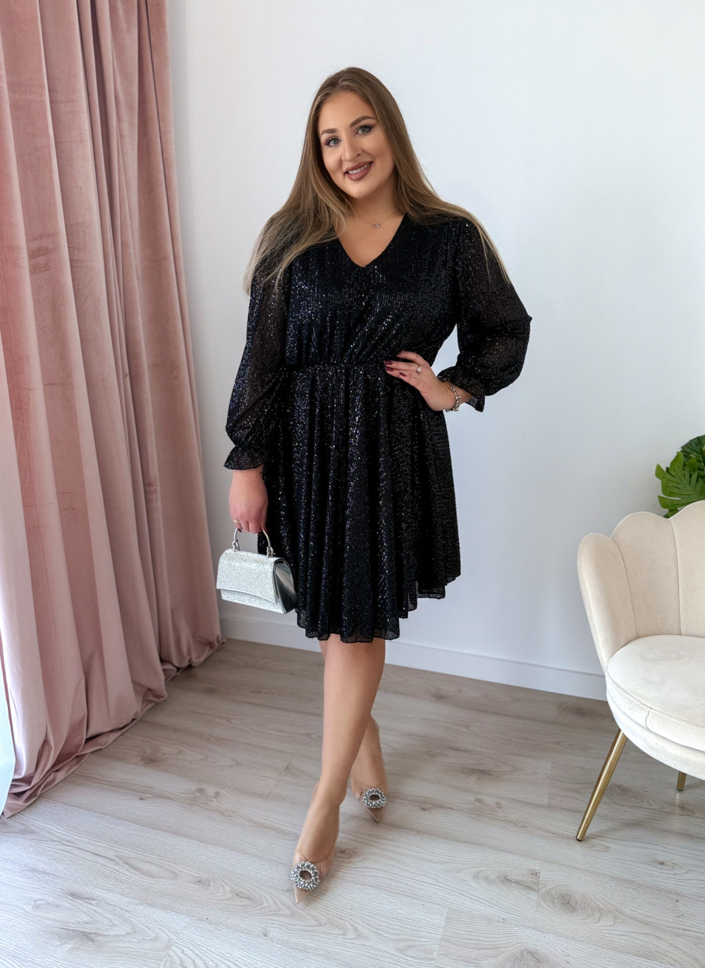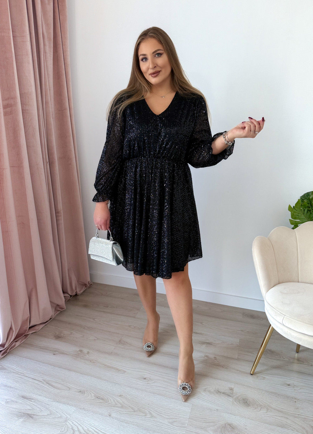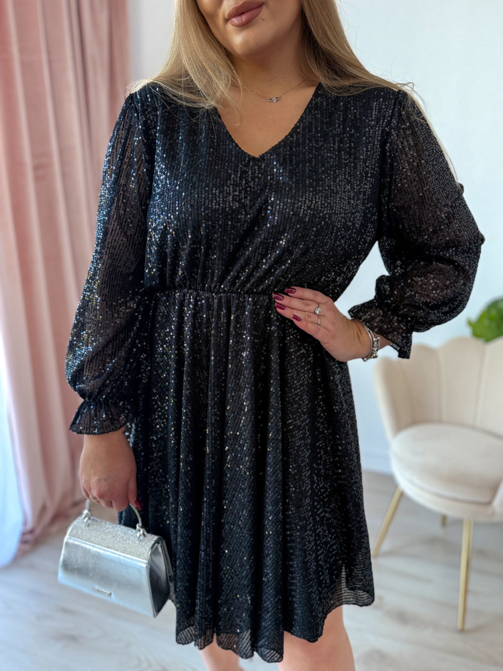Sukienka krótka cekinowa z dekoltem V Glam Star - czarna