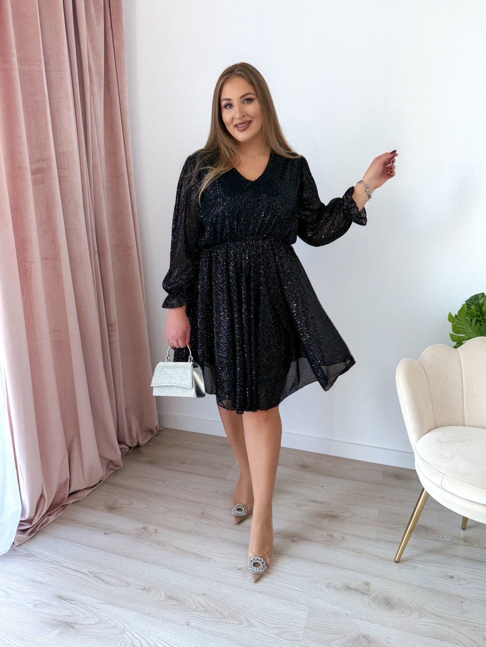 Sukienka, która zachwyca blaskiem i kobiecym krojem. Idealna na wyjątkowe okazje, imprezy czy święta – wszędzie tam, gdzie chcesz błyszczeć i czuć się wyjątkowo. Lekka, zmysłowa i niezwykle efektowna!