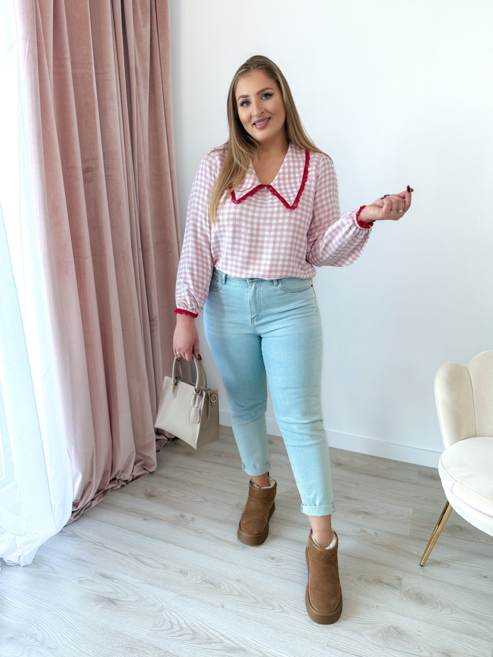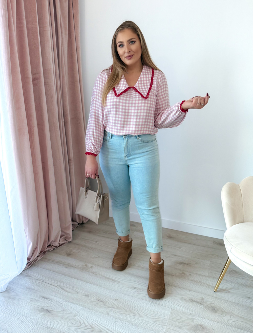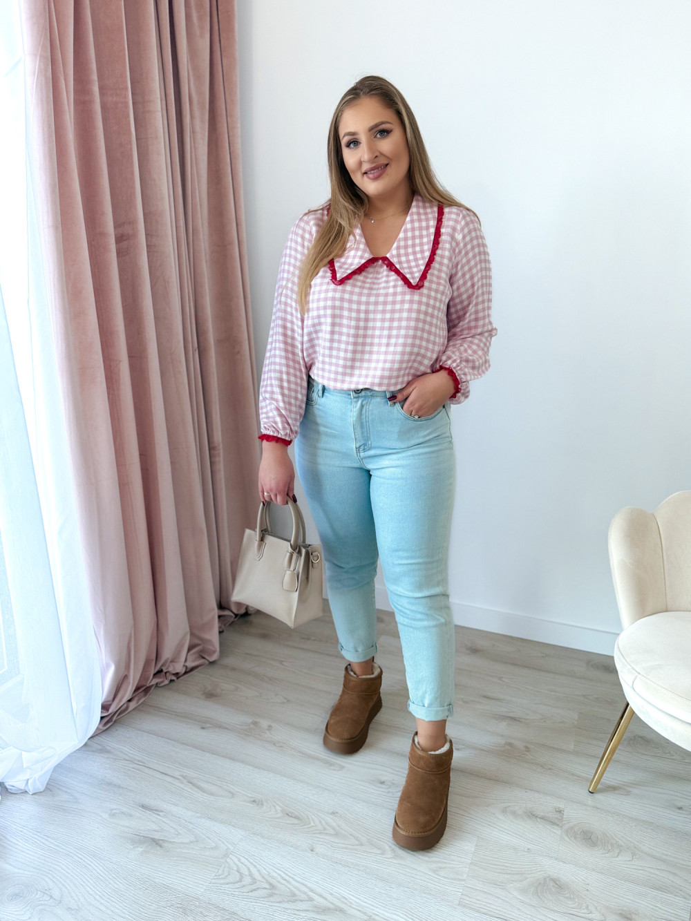 Koszula z ozdobnym kołnierzykiem biało-różowa kratka Pretty Check