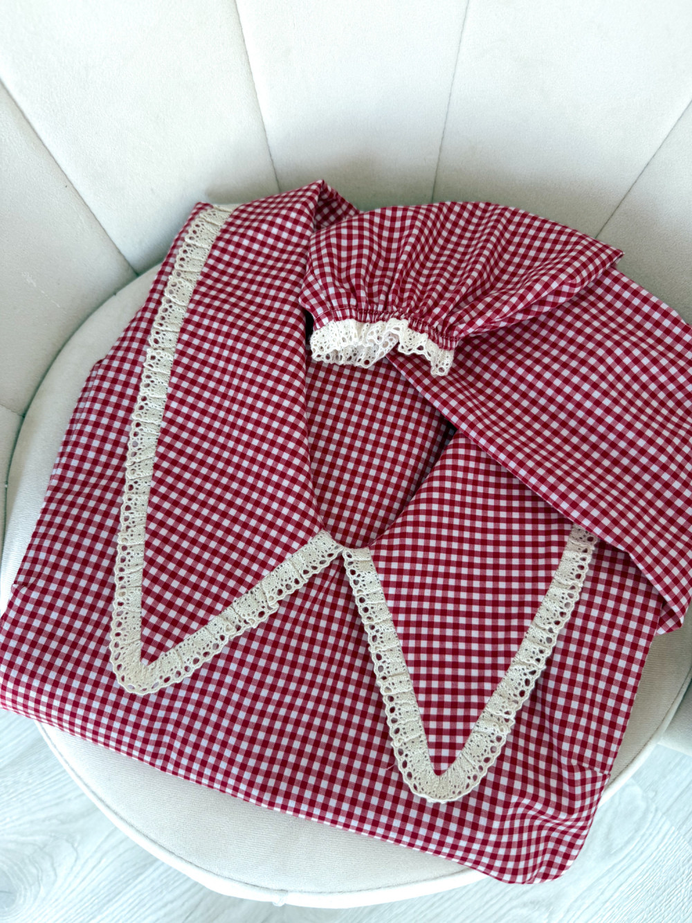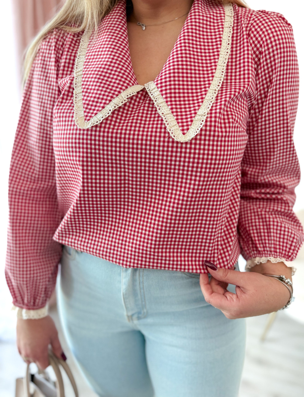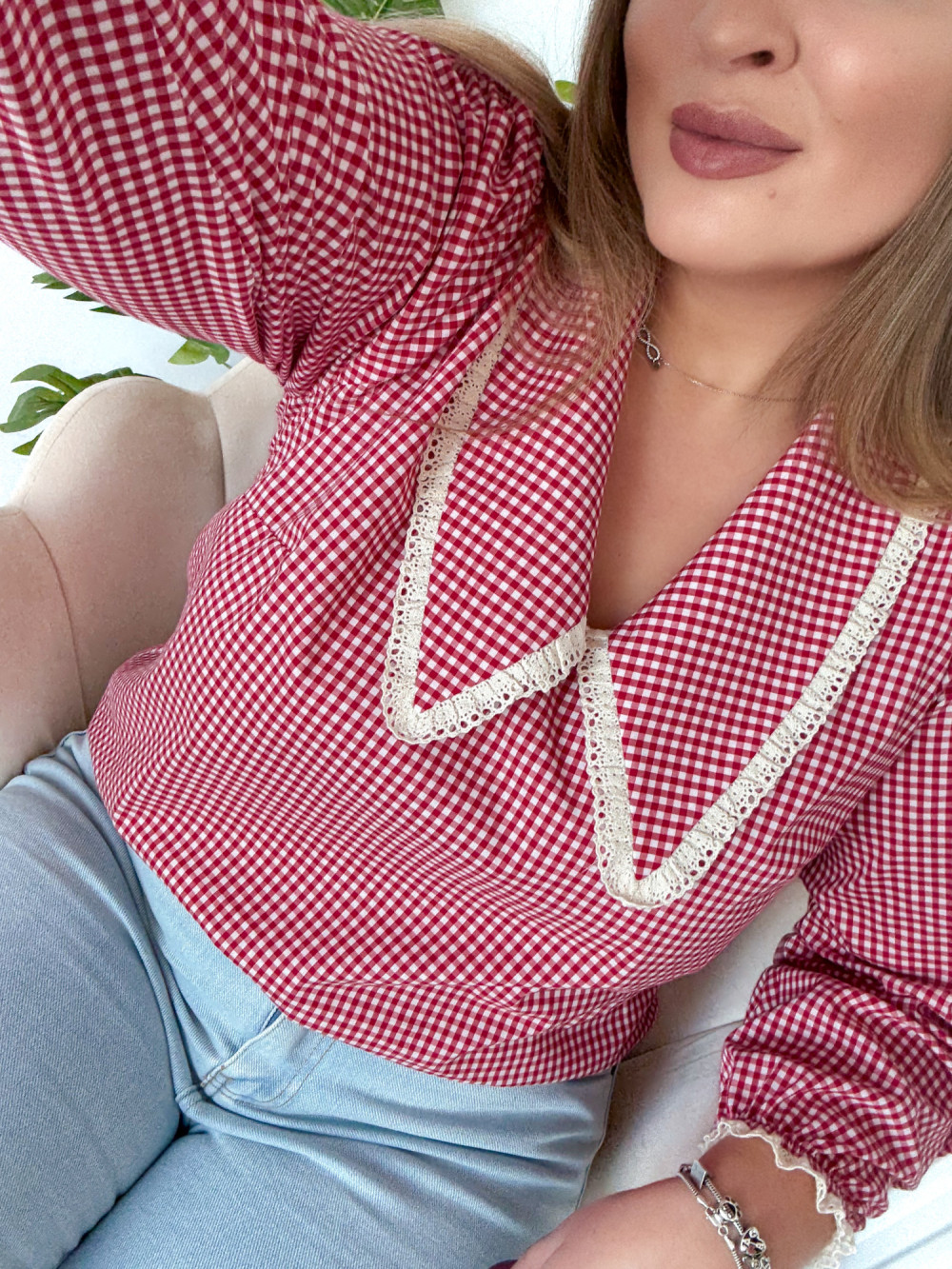 Koszula z ozdobnym kołnierzykiem biało-czerwona kratka Pretty Check