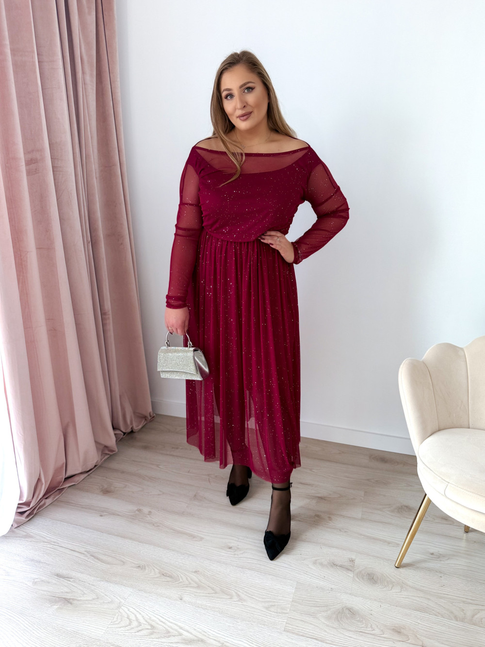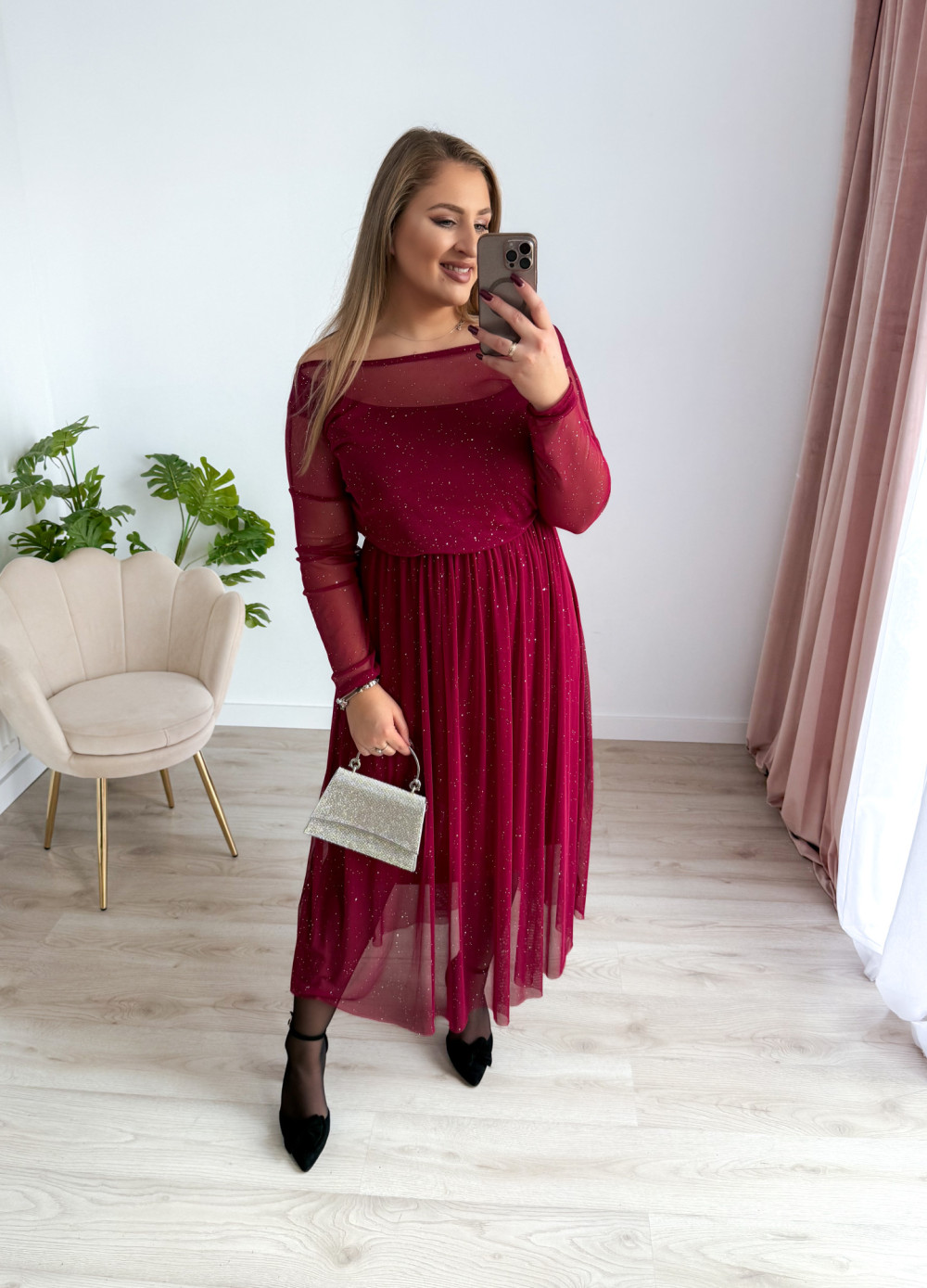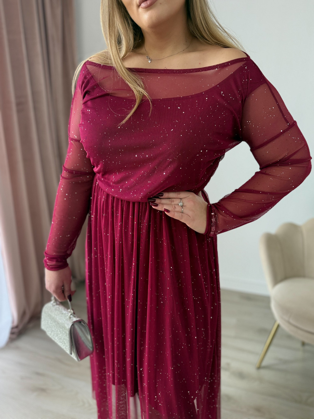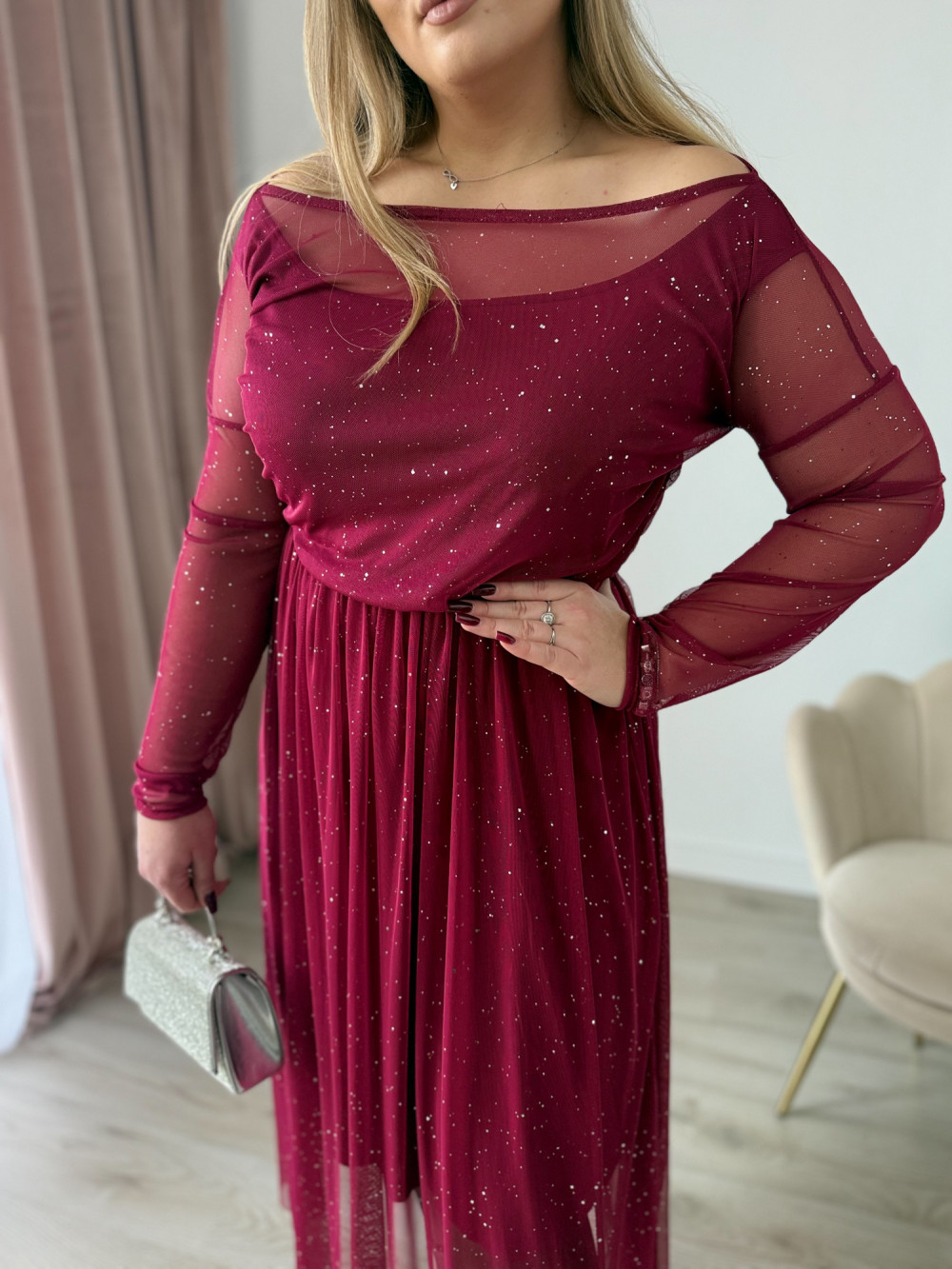 Sukienka siateczkowana ze srebrnymi drobinkami Fairy Moment - malinowe bordo