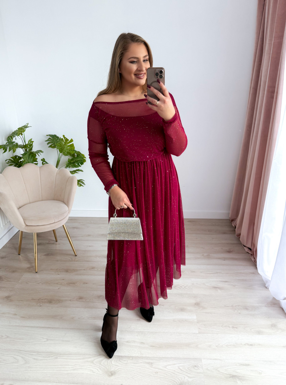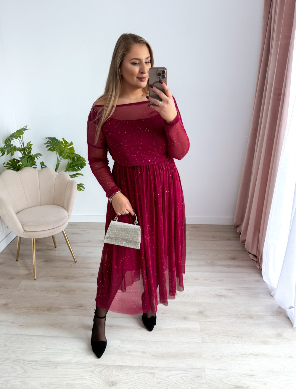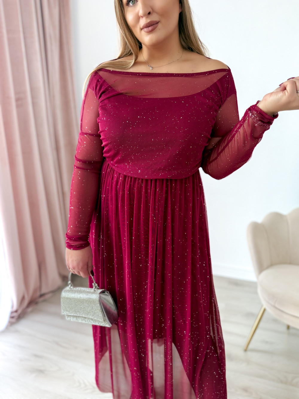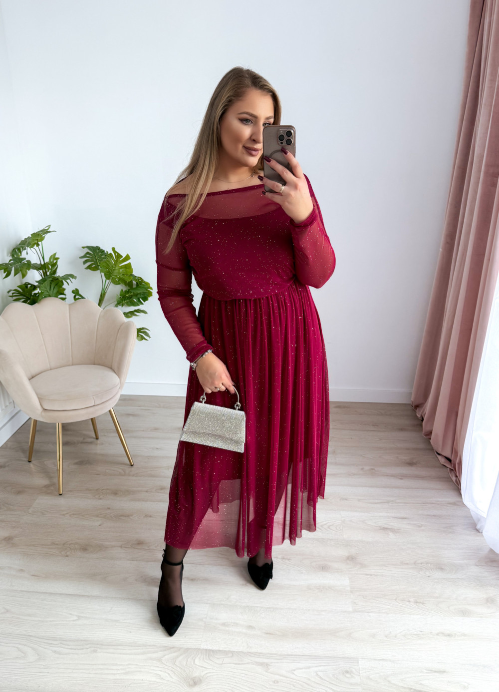 Sukienka siateczkowana ze srebrnymi drobinkami Fairy Moment - malinowe bordo
