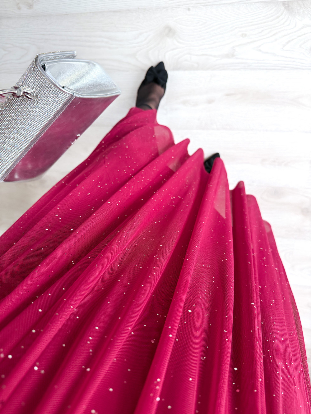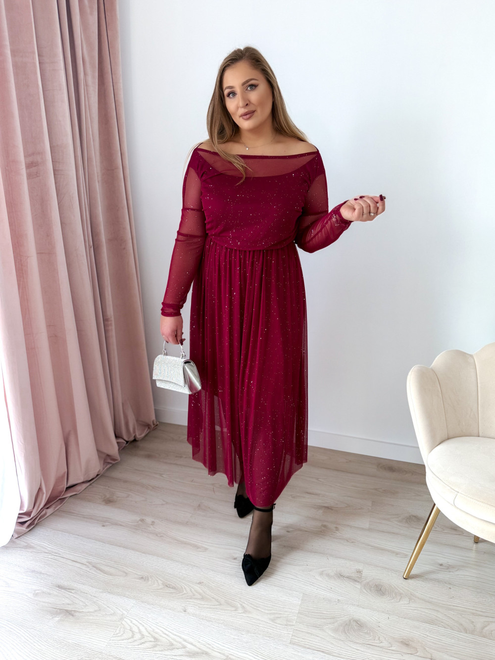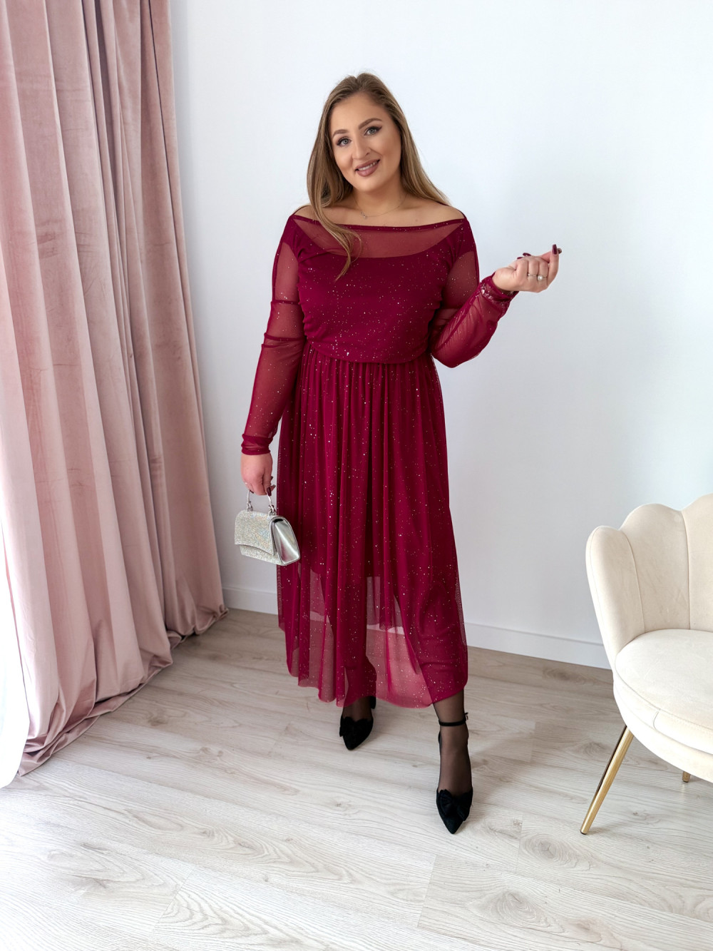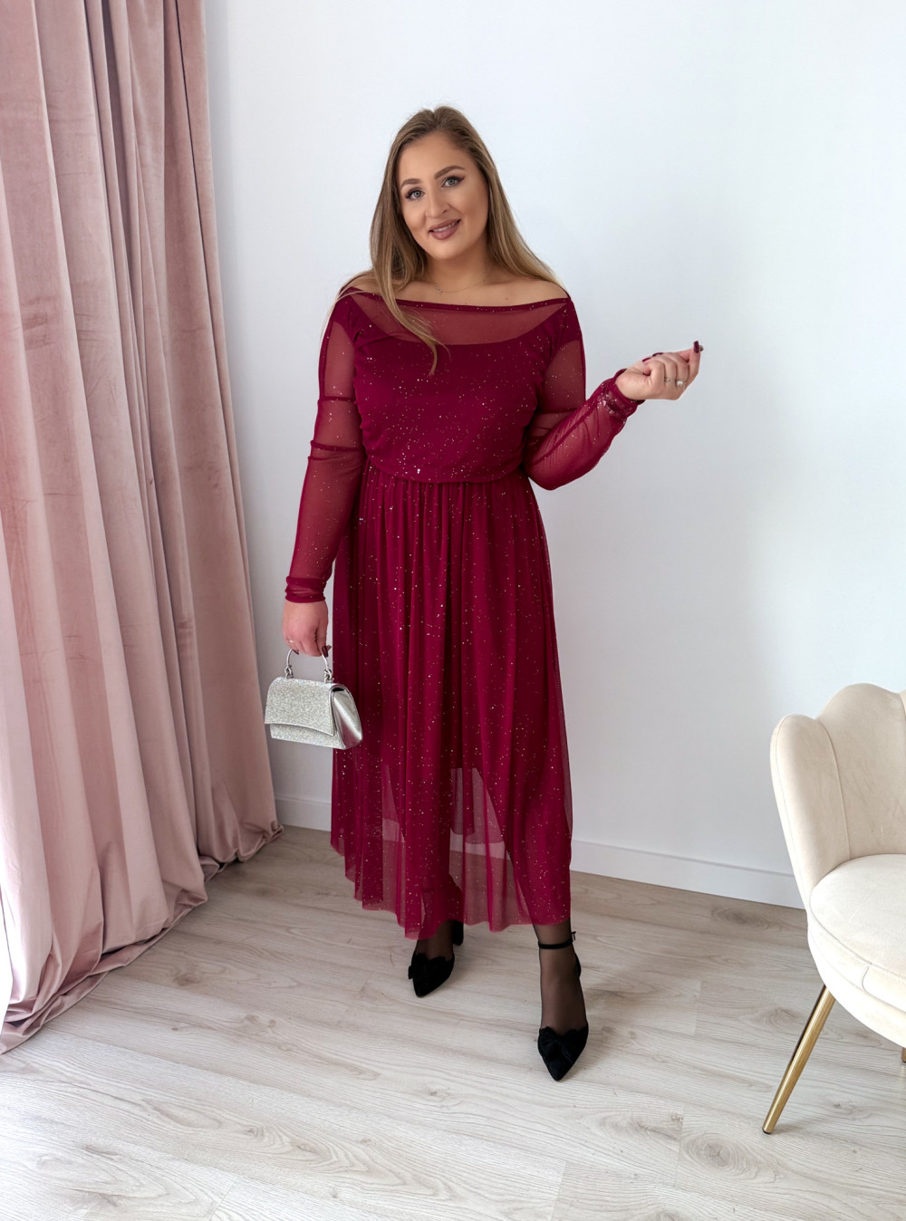Sukienka siateczkowana ze srebrnymi drobinkami Fairy Moment - malinowe bordo