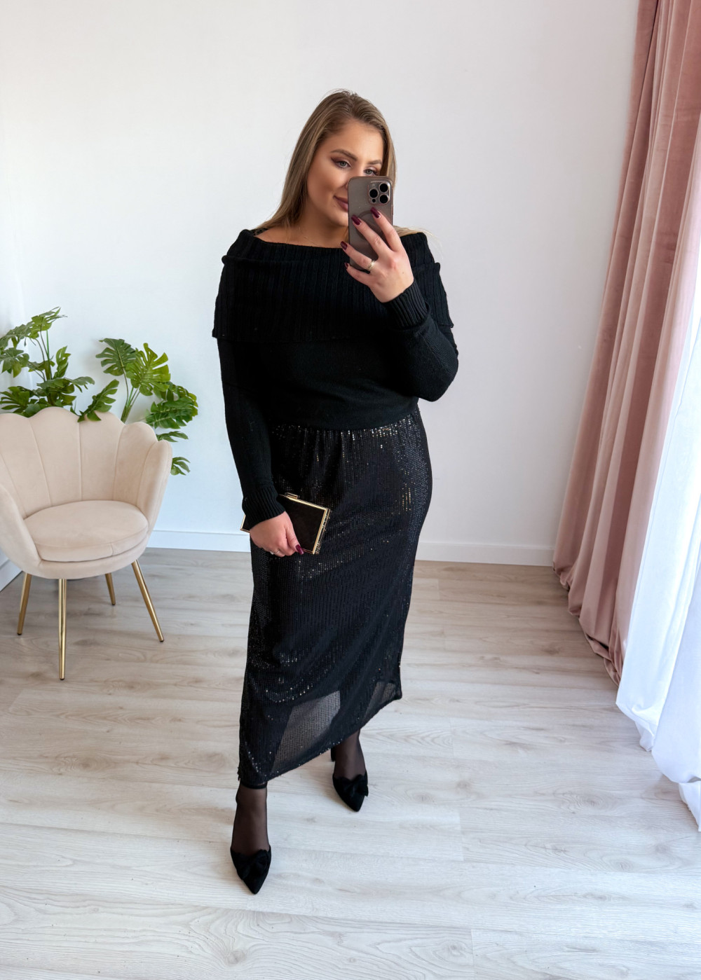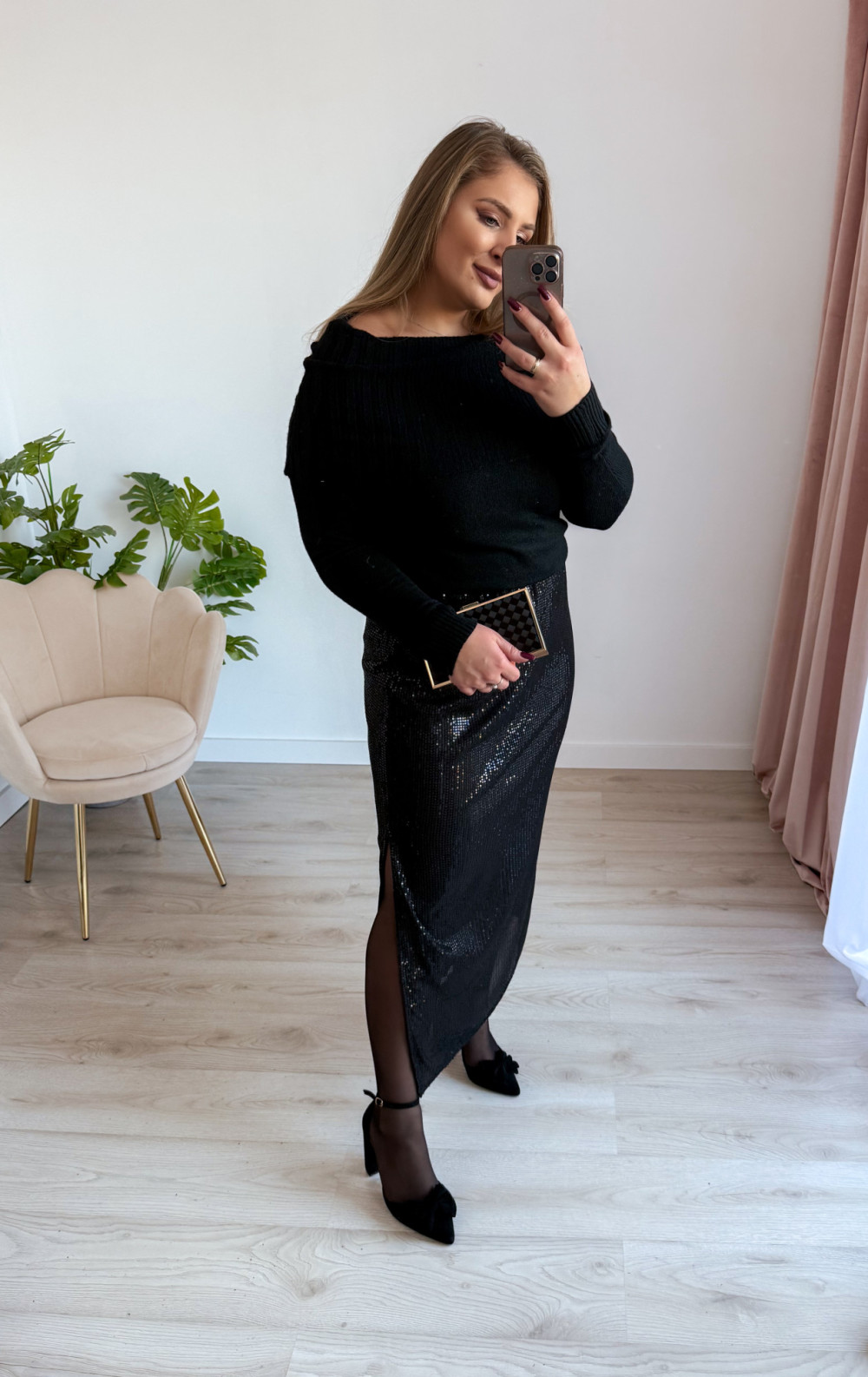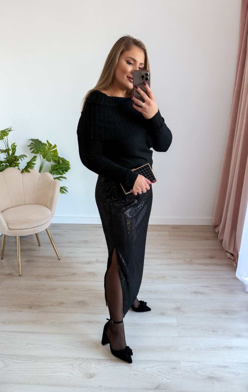 Spódnica midi cekinowa z rozcięciem na nodze Luxe - czarna