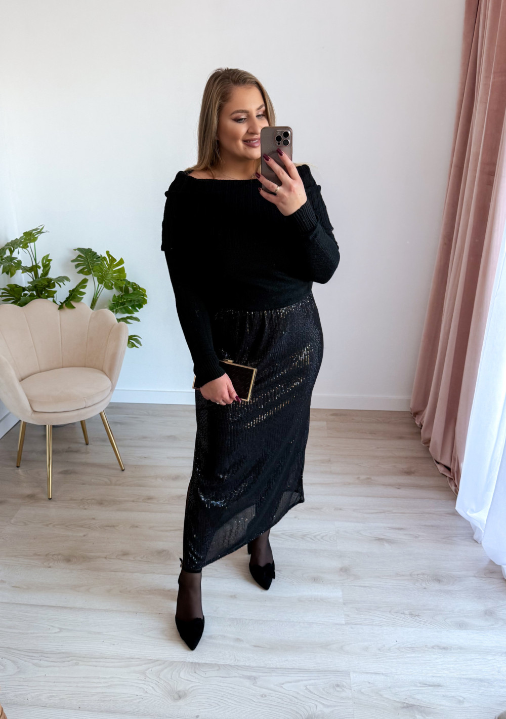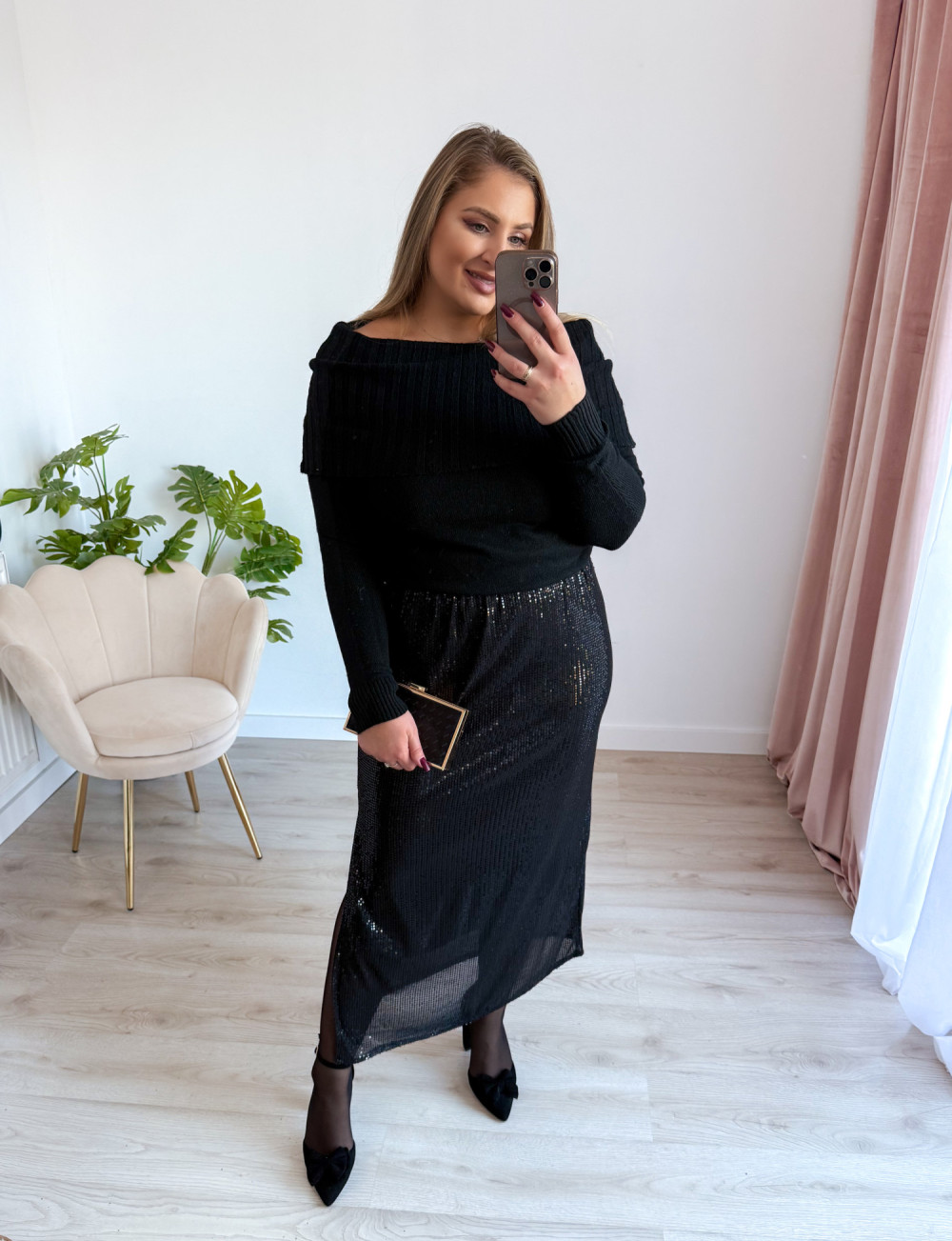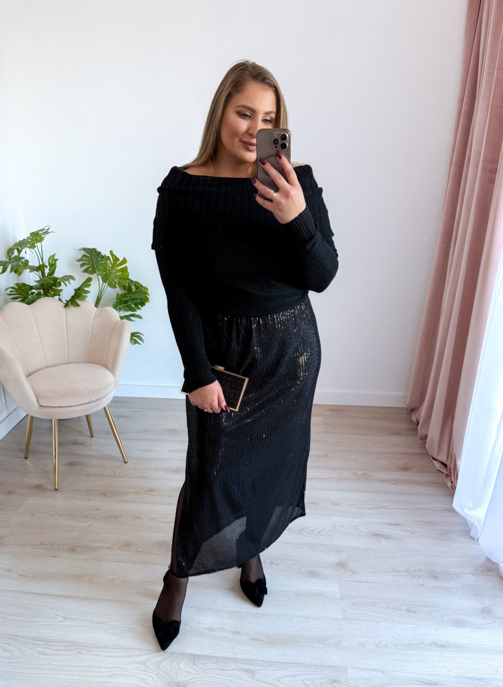 Spódnica midi cekinowa z rozcięciem na nodze Luxe - czarna