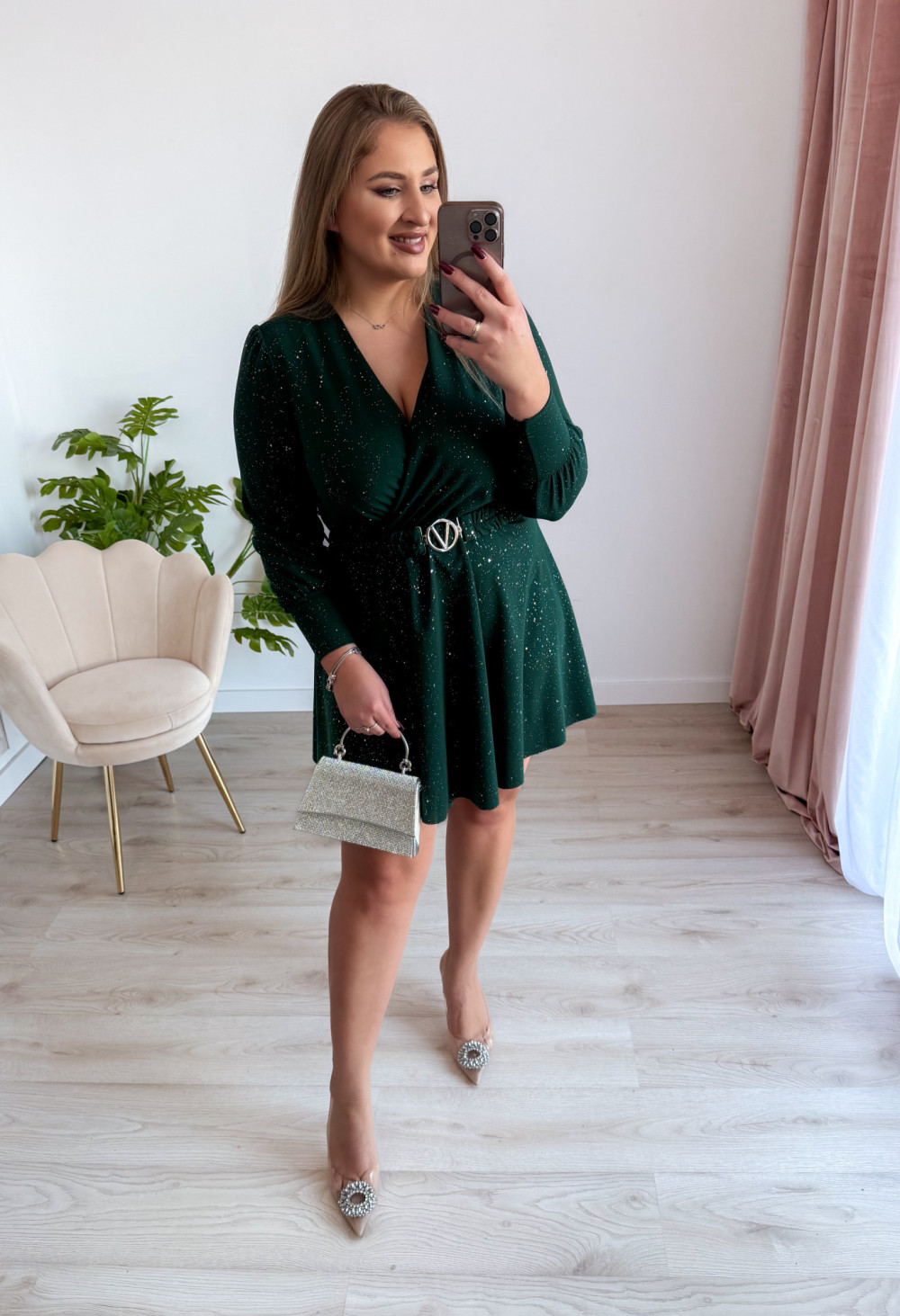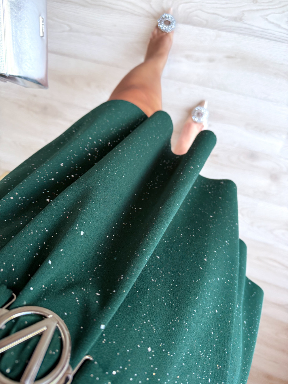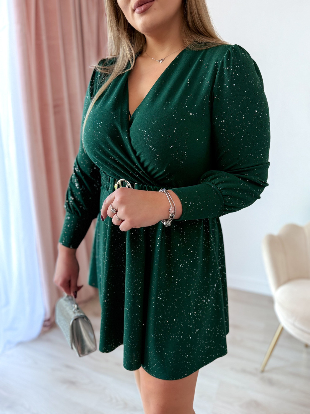 Sukienka krótka ze srebrnymi drobinkami Princess - butelkowa zieleń