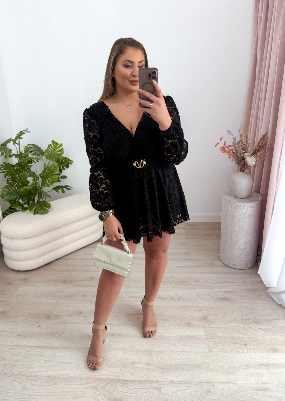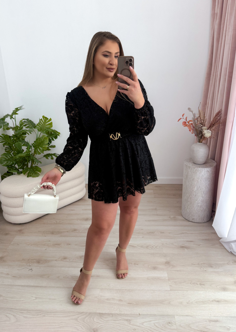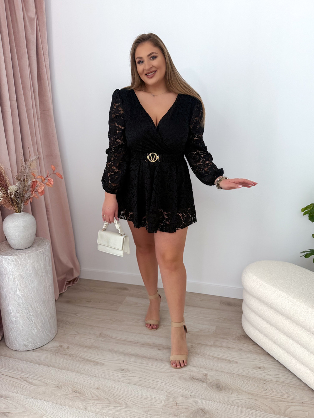 Kombinezon, który łączy kobiecość i wygodę w najpiękniejszym wydaniu. Wykonany z delikatnej koronki, prezentuje się niezwykle stylowo i romantycznie. Krótki fason podkreśla nogi, a zakładany dekolt dodaje zmysłowości. Gumka w talii wraz z dodatkowym paskiem pozwalają idealnie dopasować kombinezon do sylwetki.