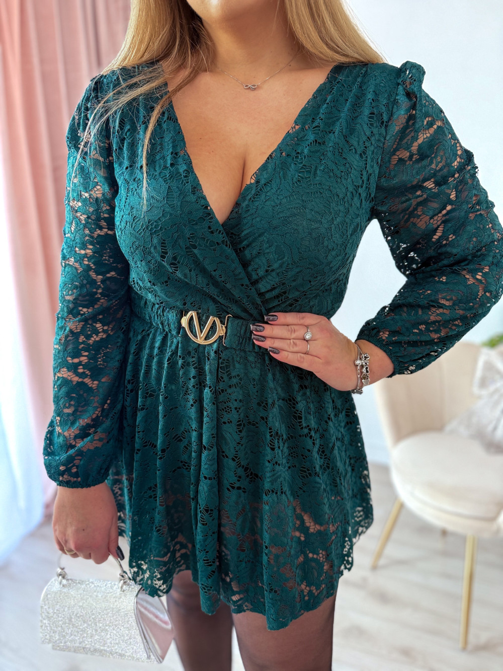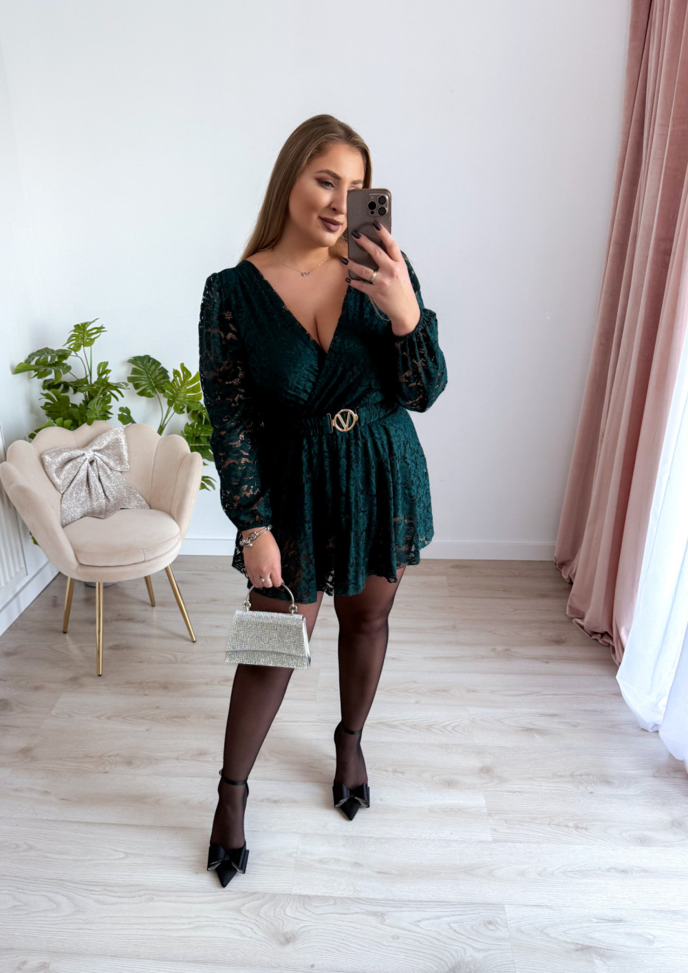 Kombinezon koronkowy Tori - butelkowa zieleń