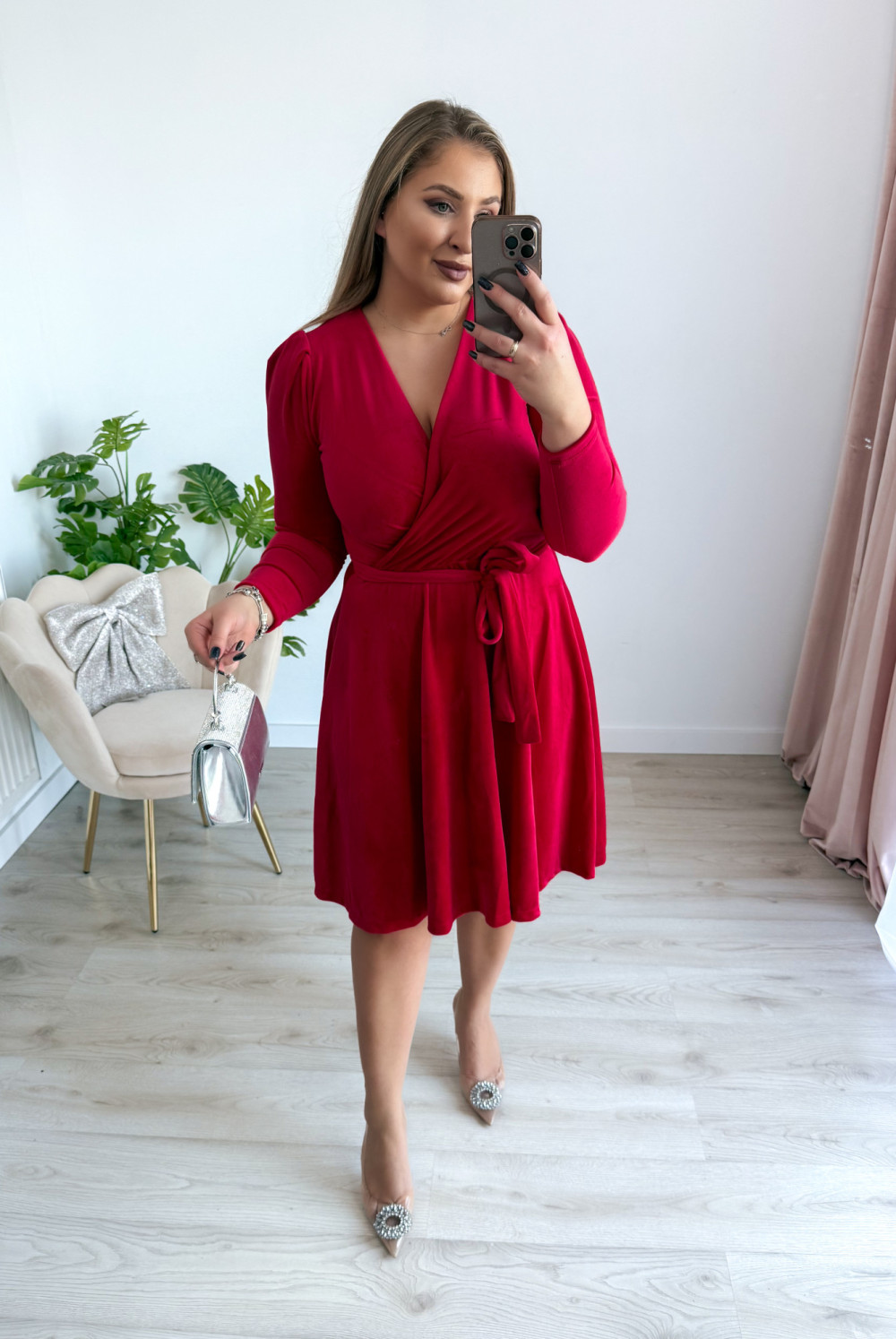 Sukienka welurowa z delikatnymi bufkami Marilyn - czerwona