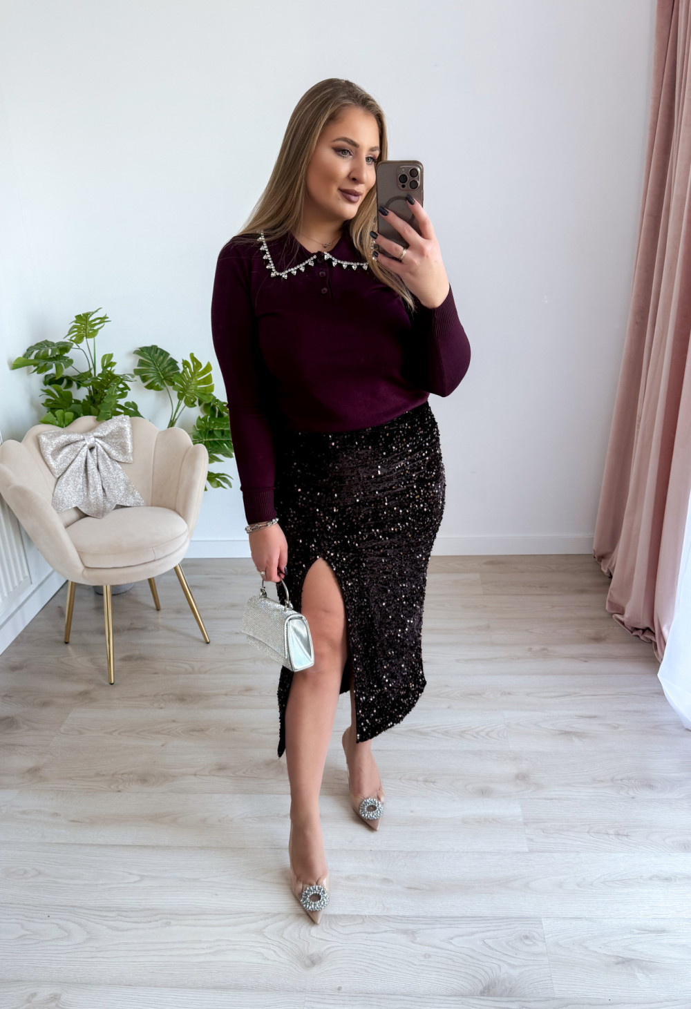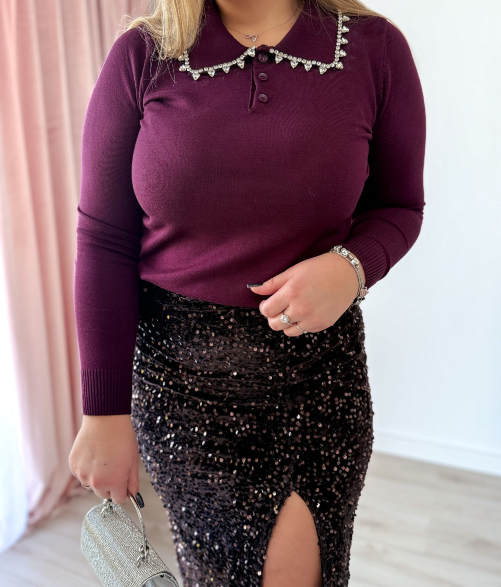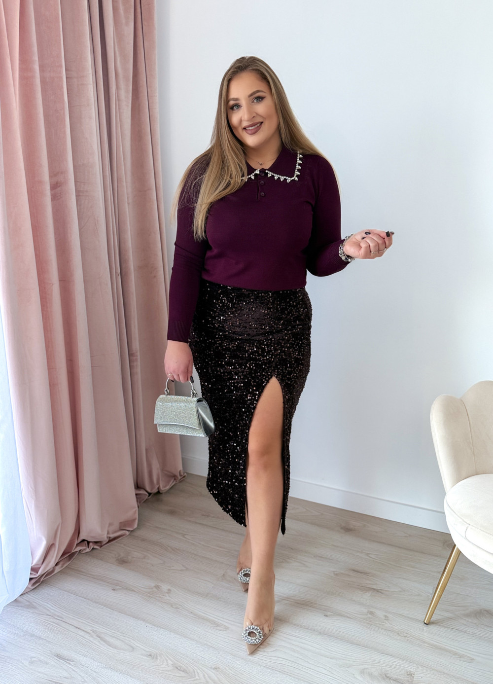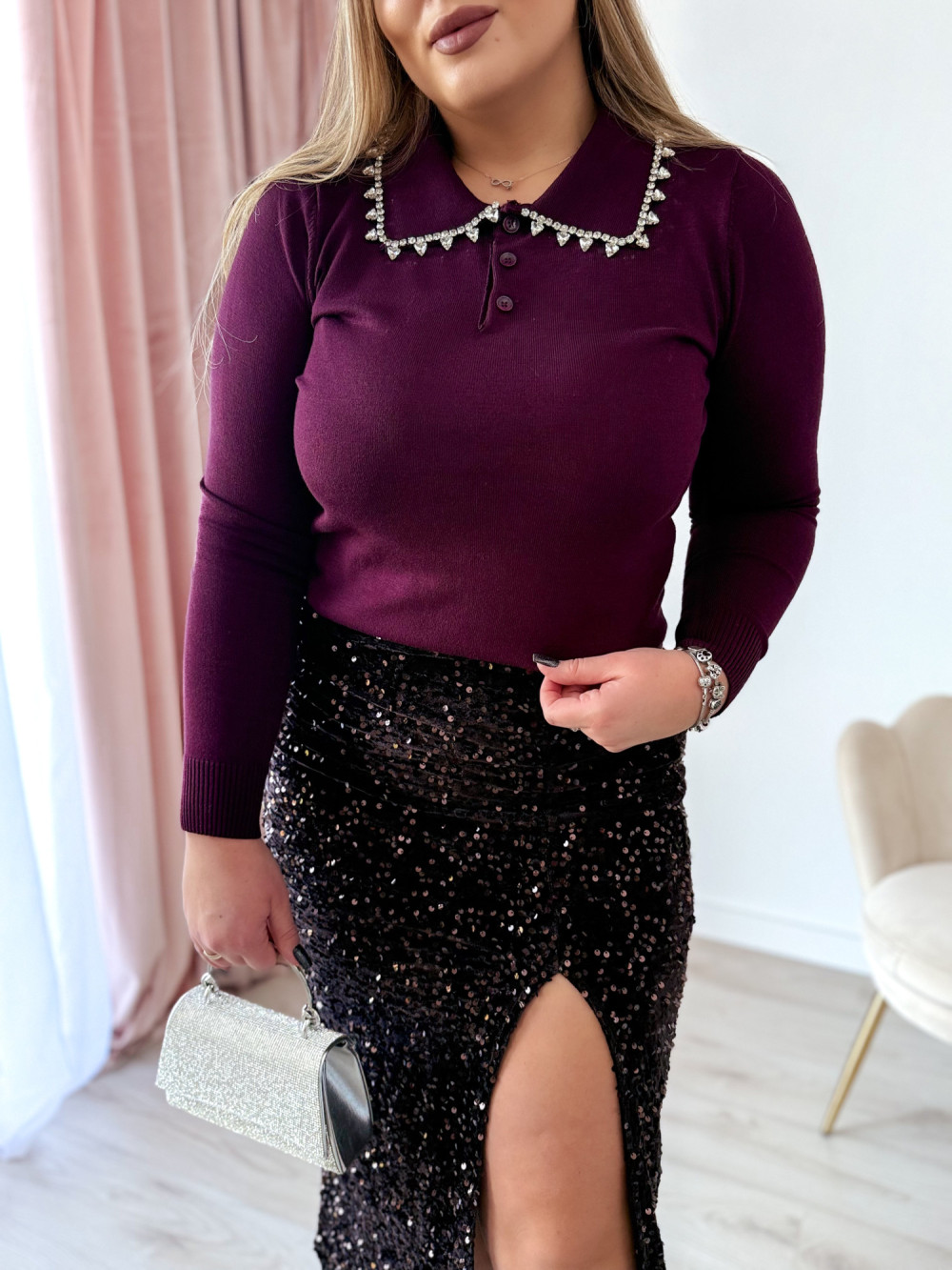 Sweter z ozdobionym kołnierzykiem Arden - śliwka