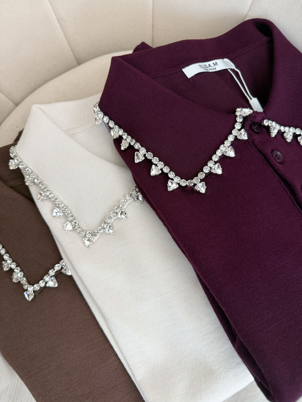 - ozdobny kołnierzyk z diamencikami, który dodaje szyku i elegancji