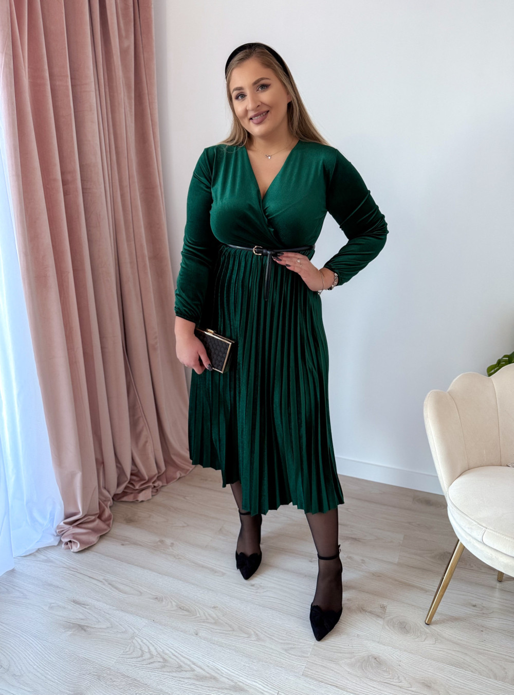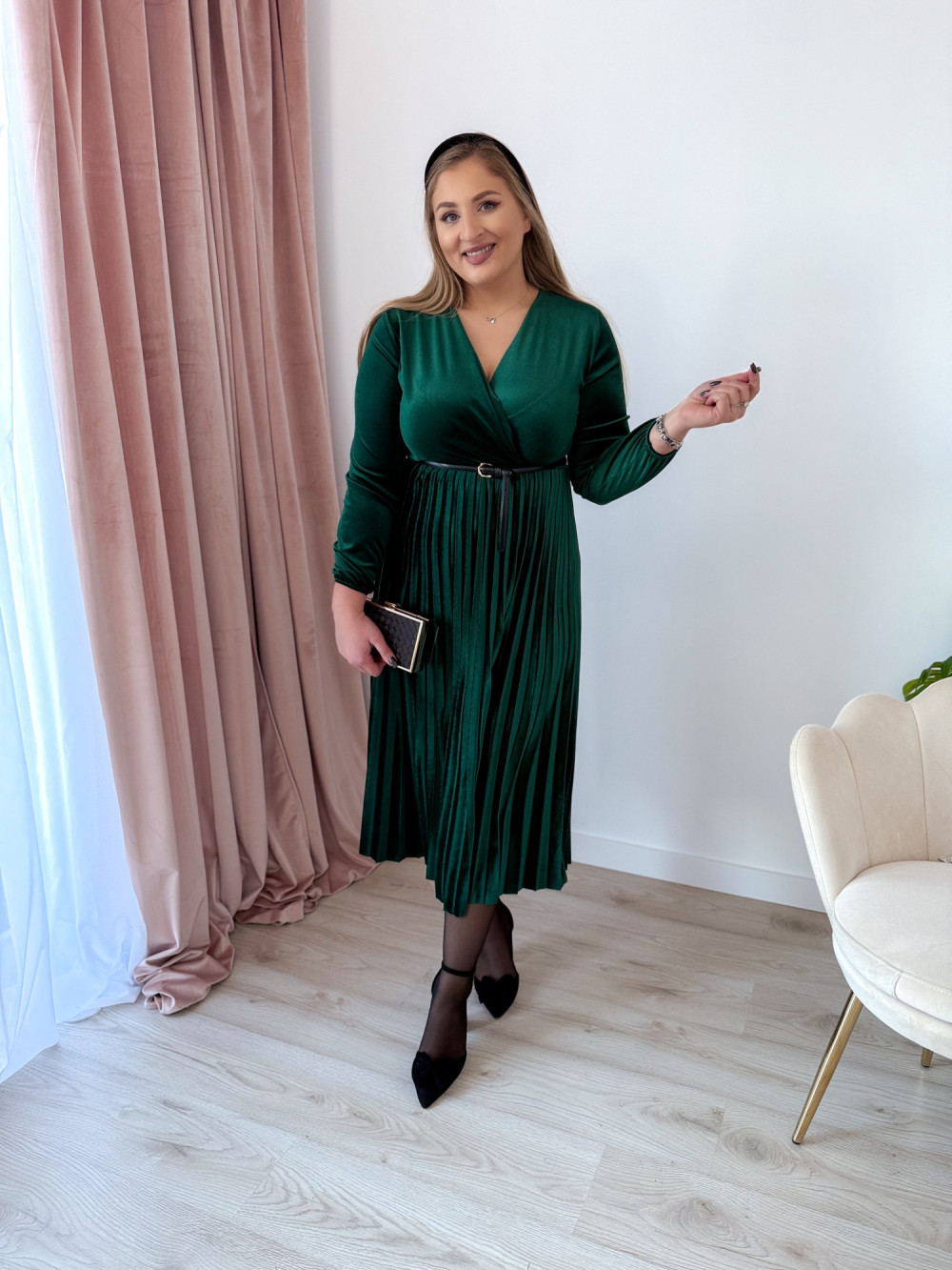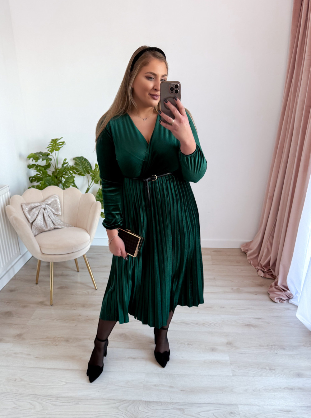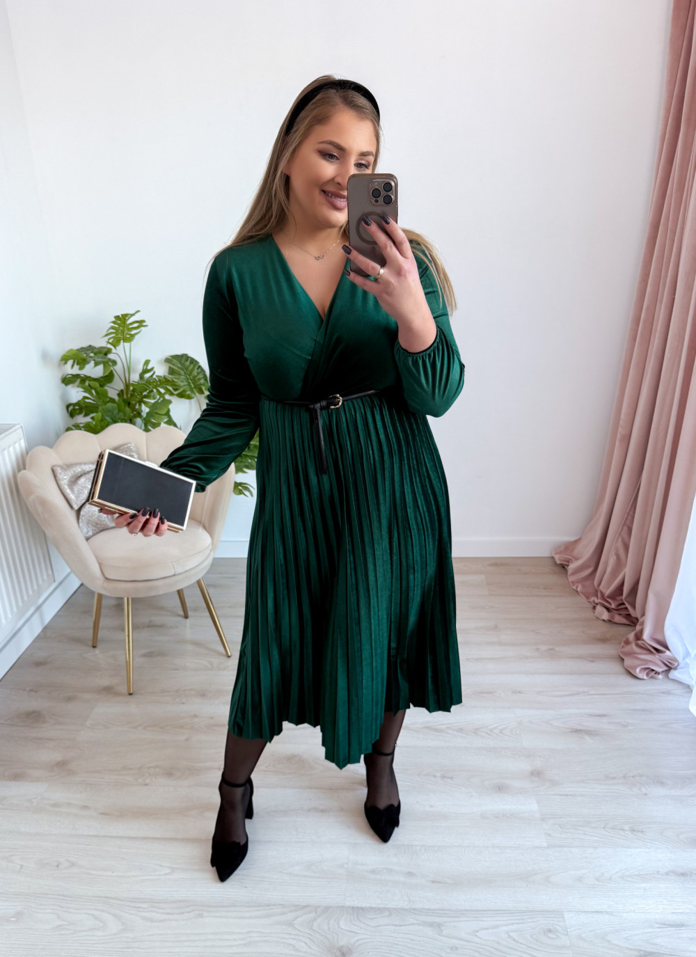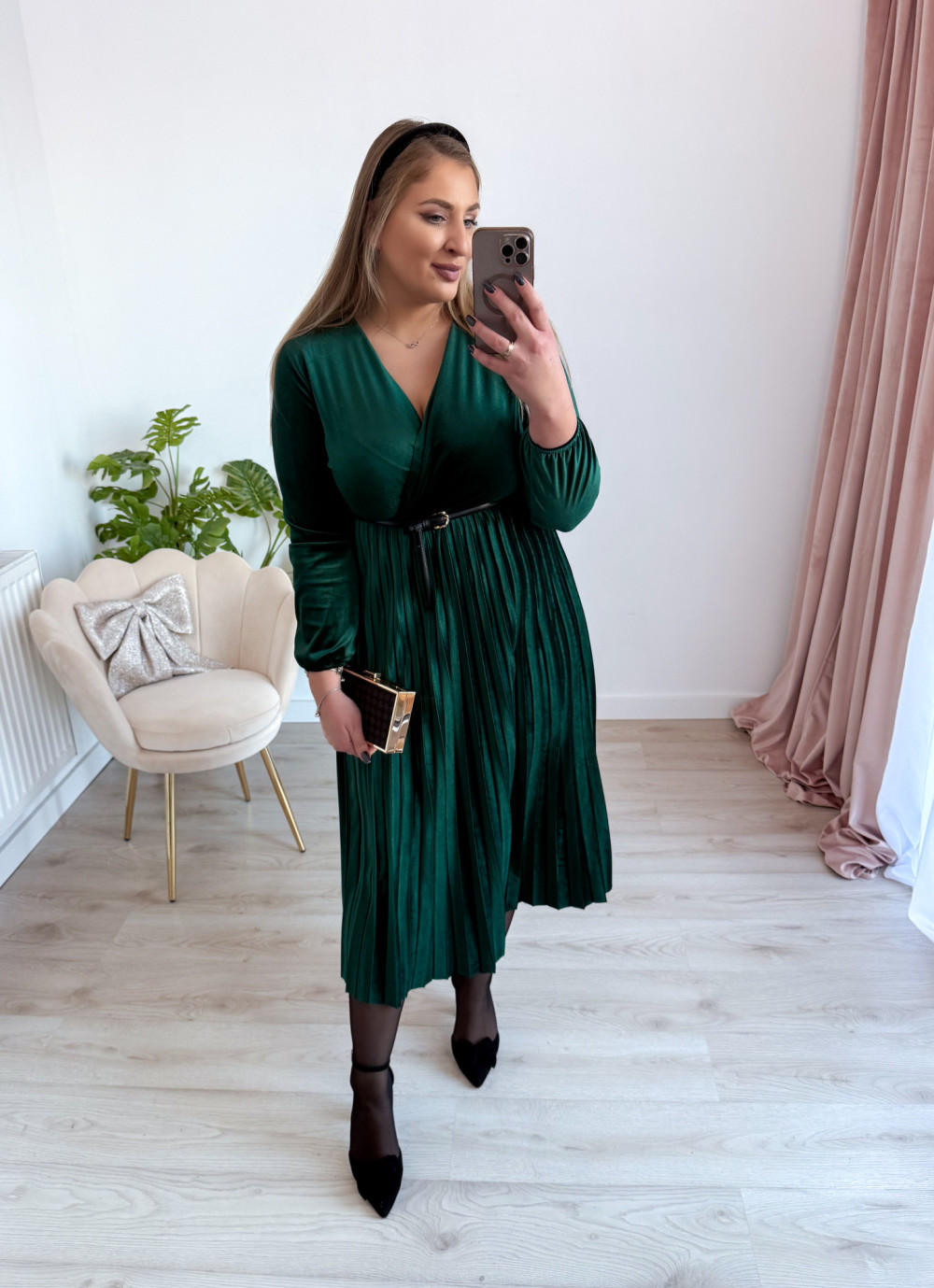 Sukienka midi welurowa plisowana Cindy - butelkowa zieleń