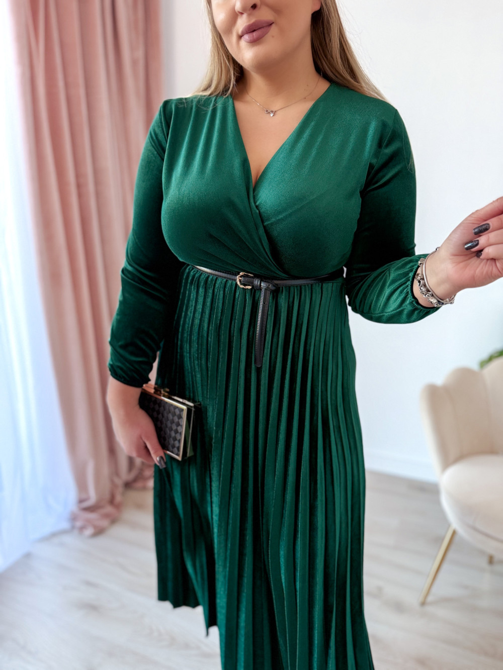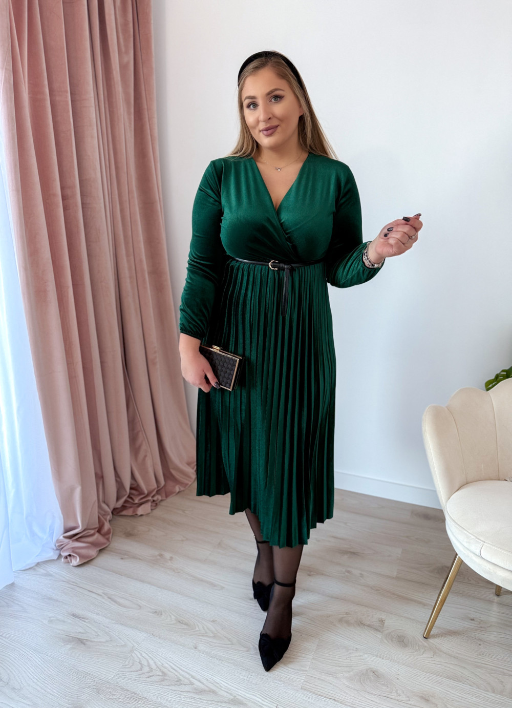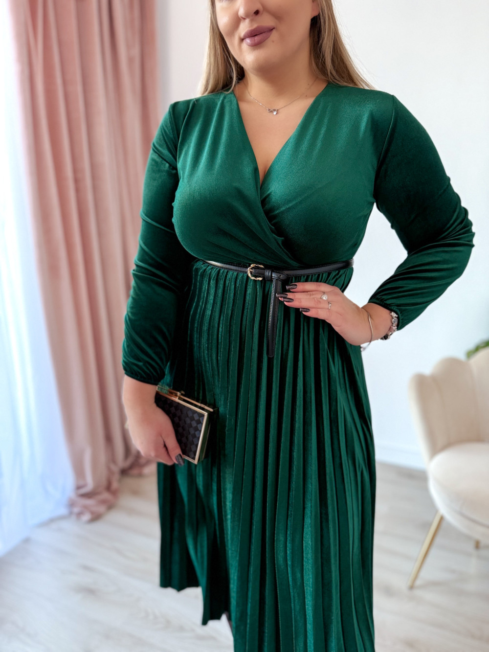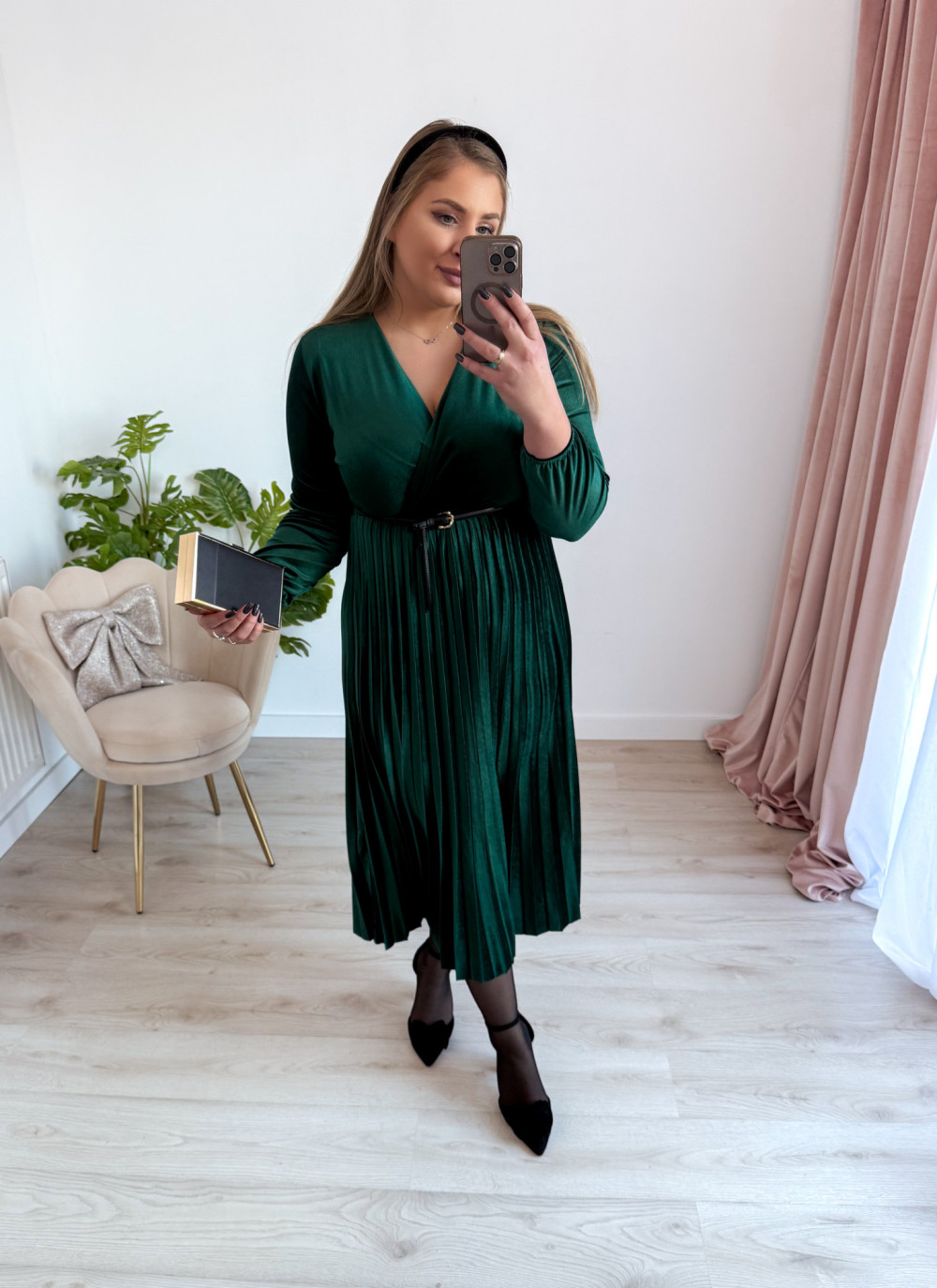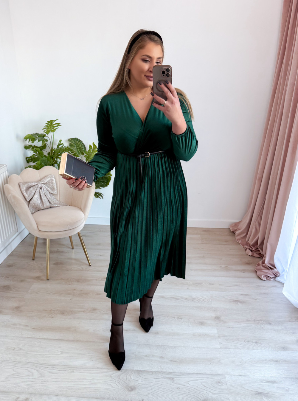 Sukienka midi welurowa plisowana Cindy - butelkowa zieleń