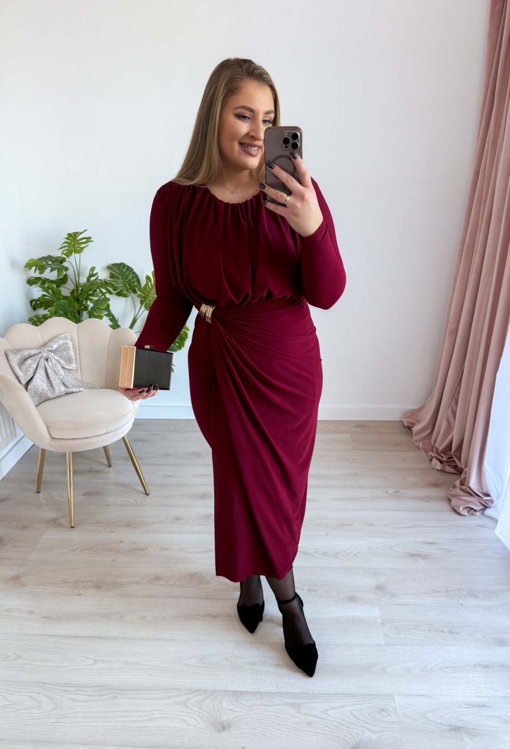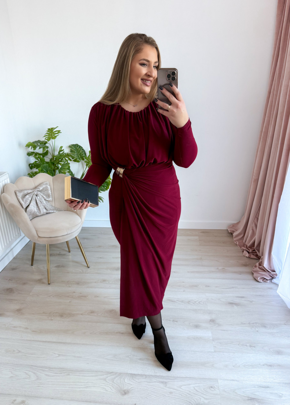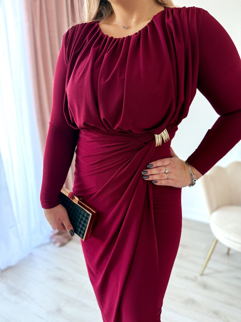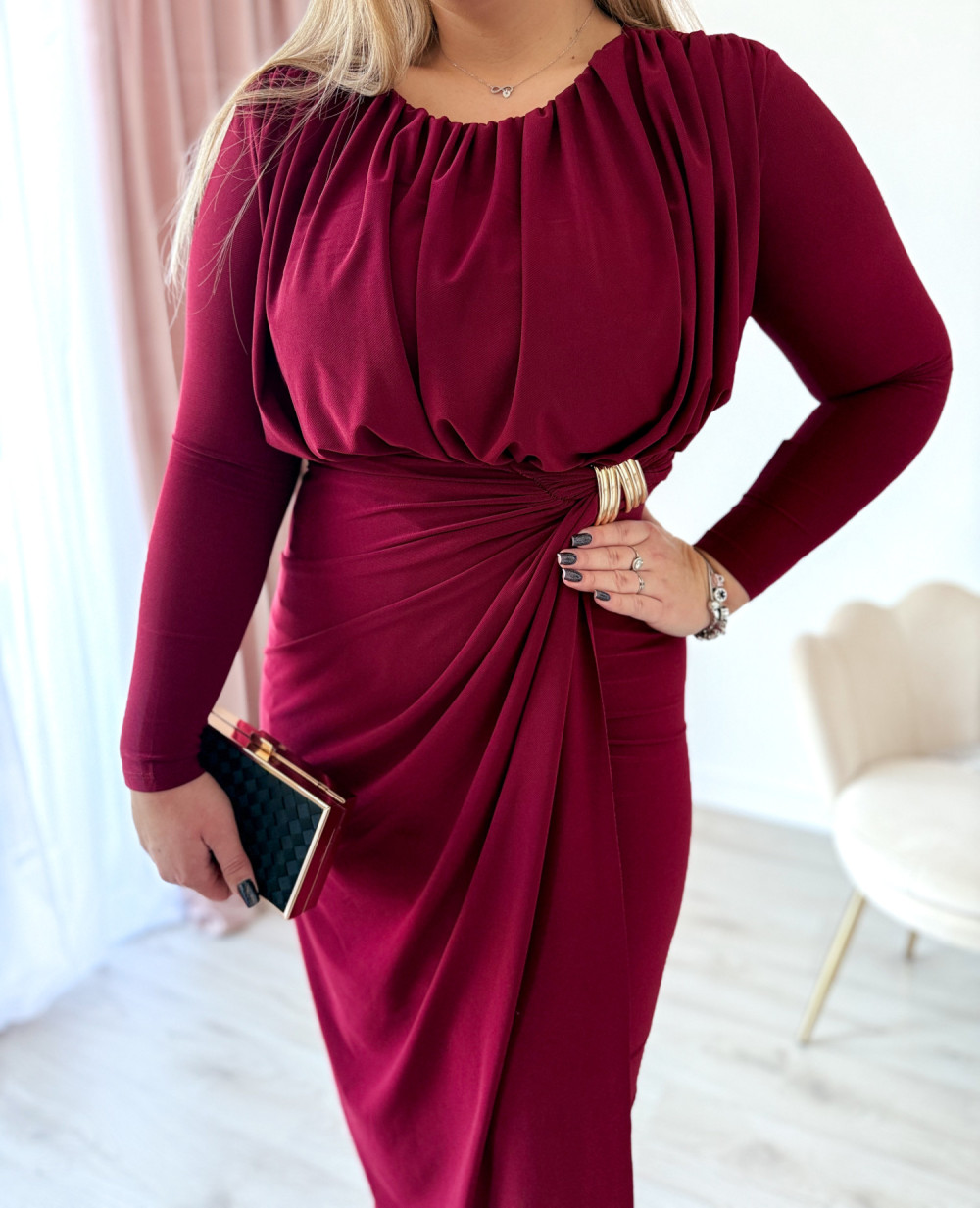 Sukienka maxi elegancka z klamrą Lalook - bordo