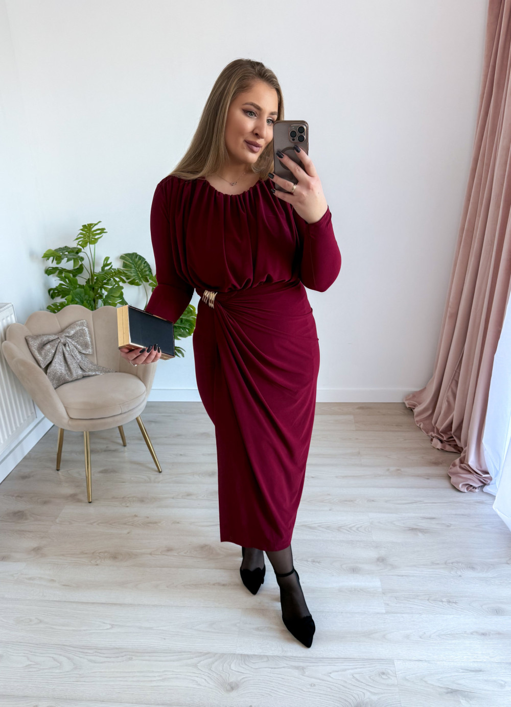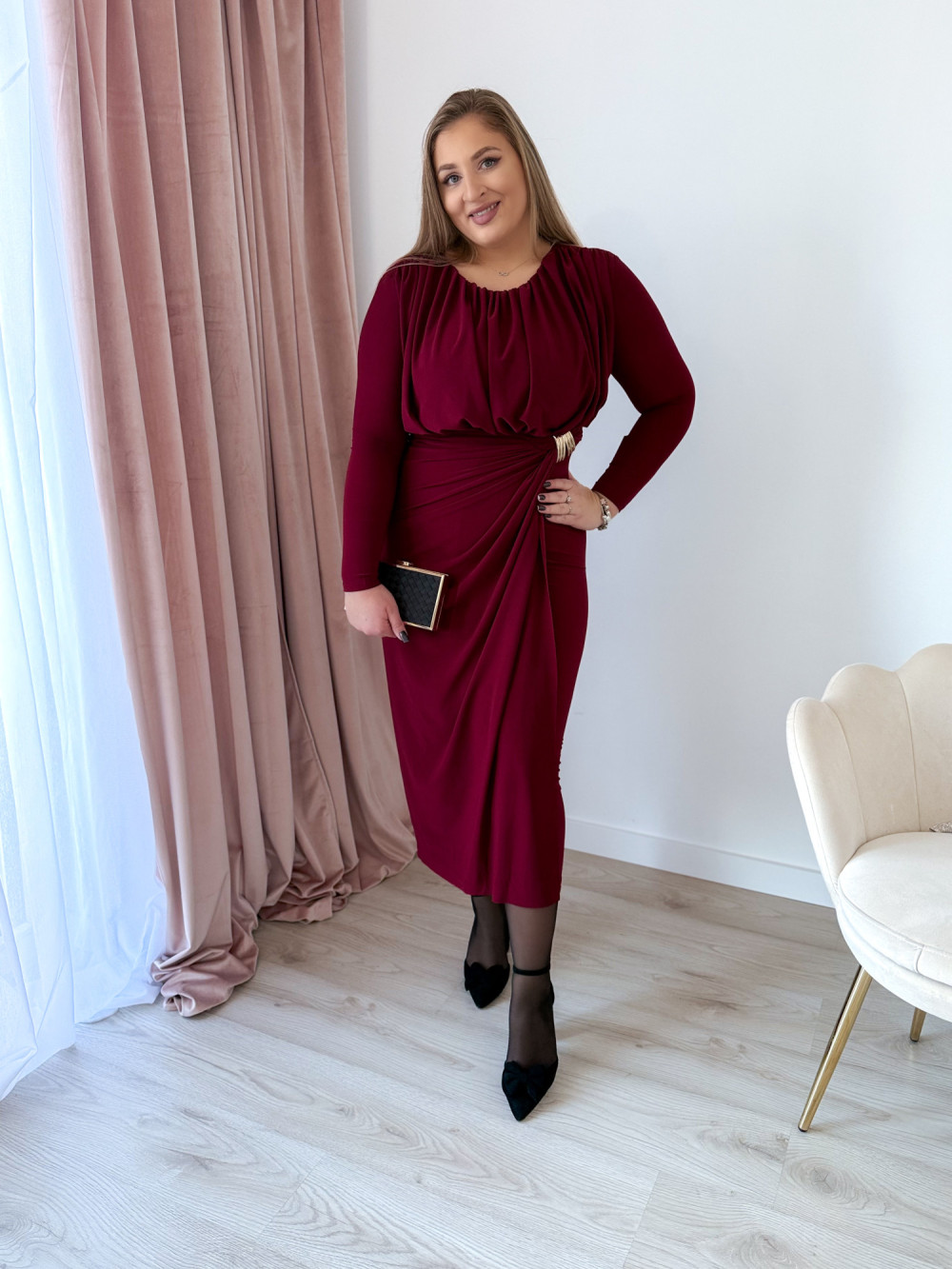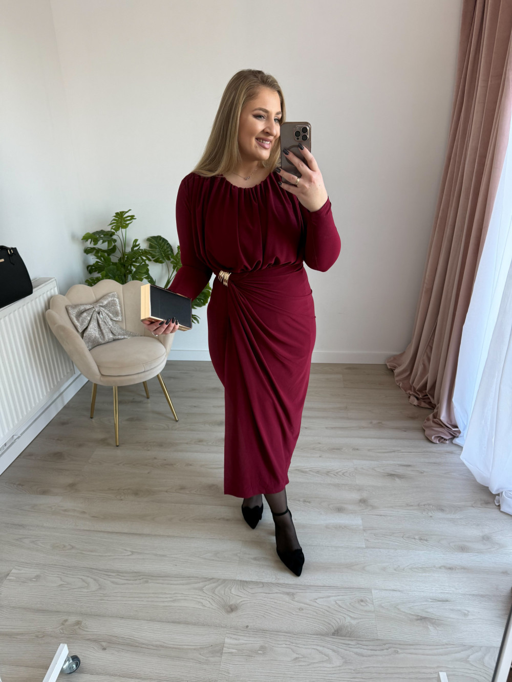 Sukienka maxi elegancka z klamrą Lalook - bordo