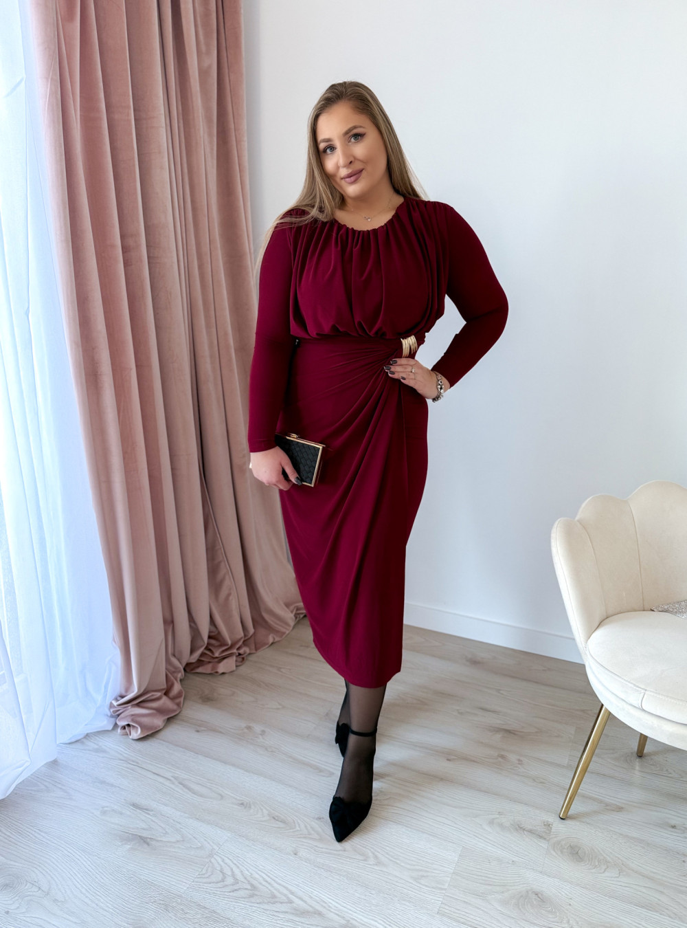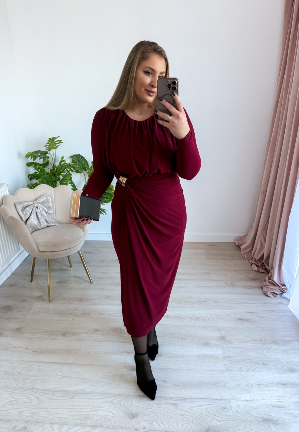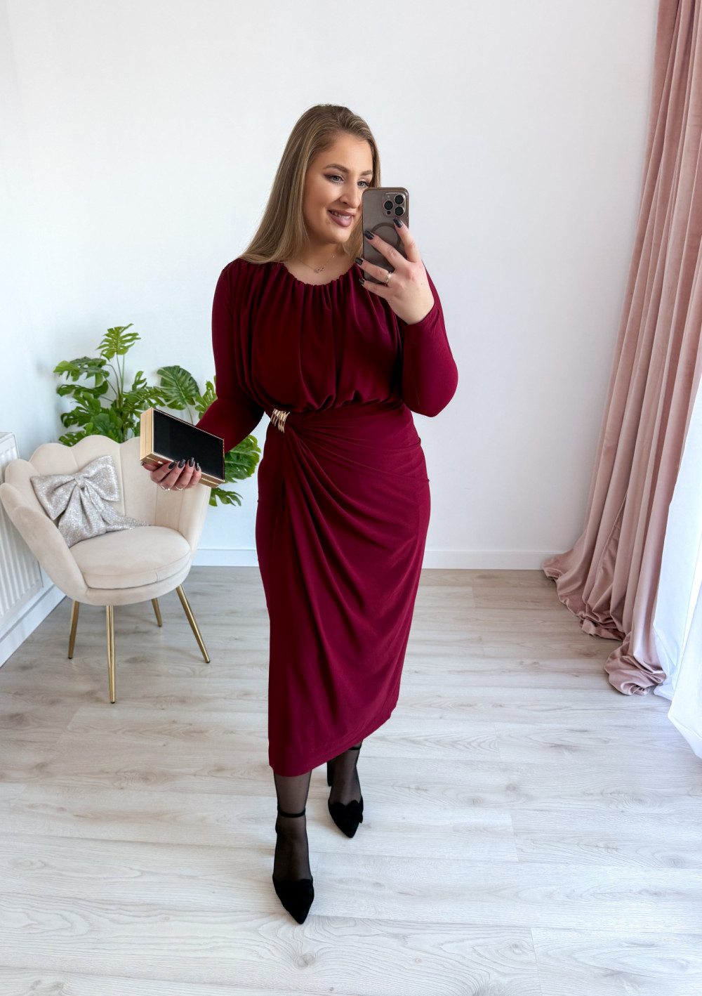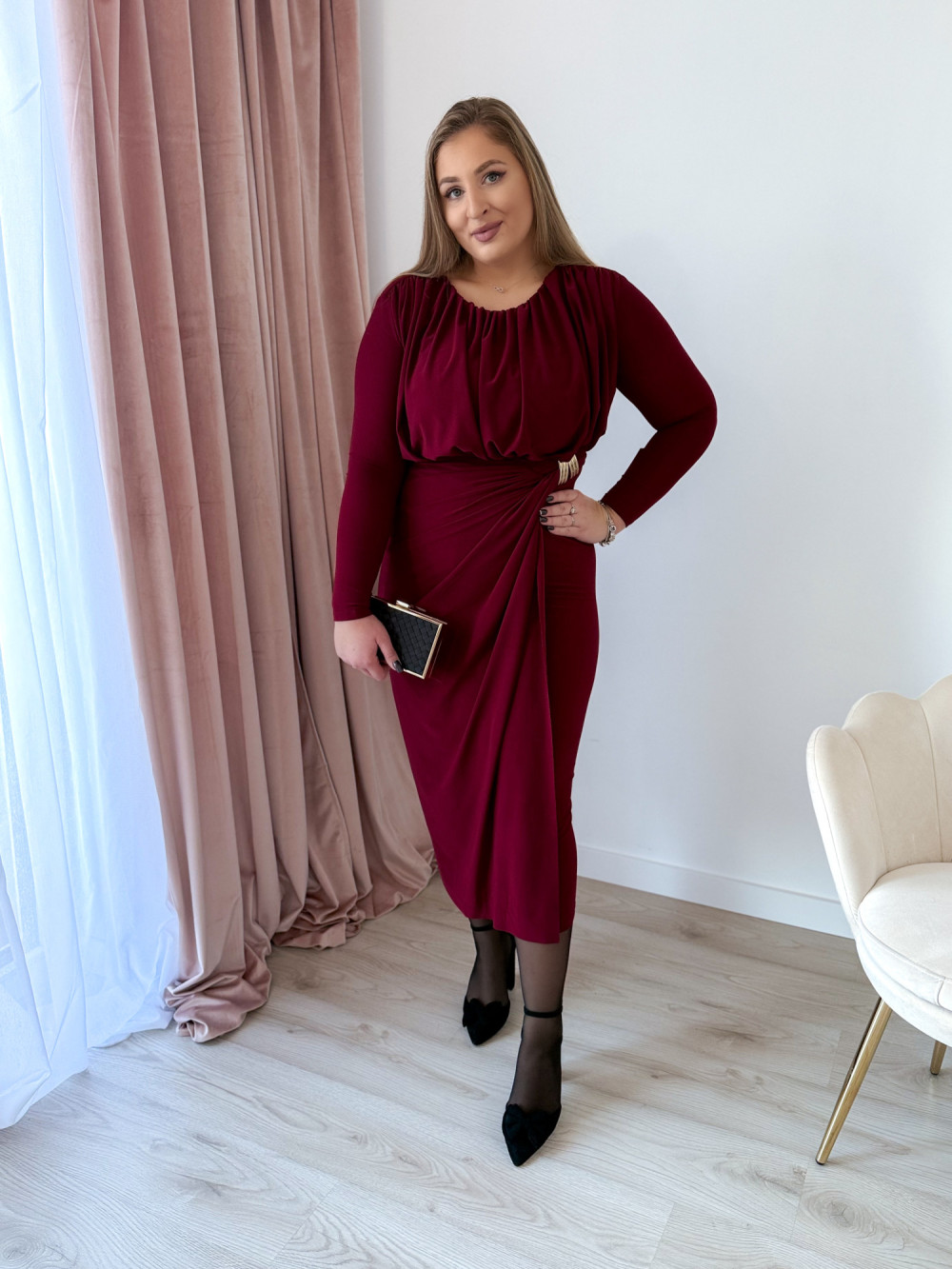 Sukienka maxi elegancka z klamrą Lalook - bordo