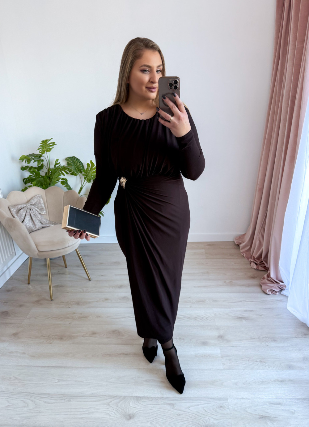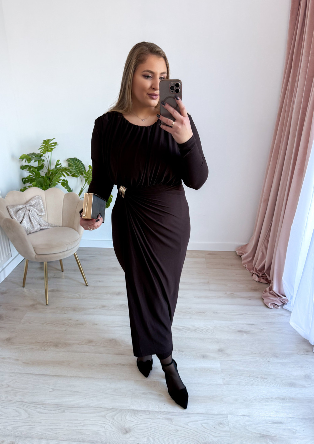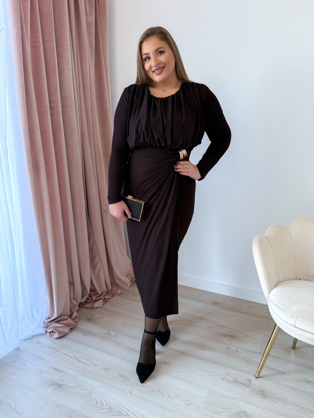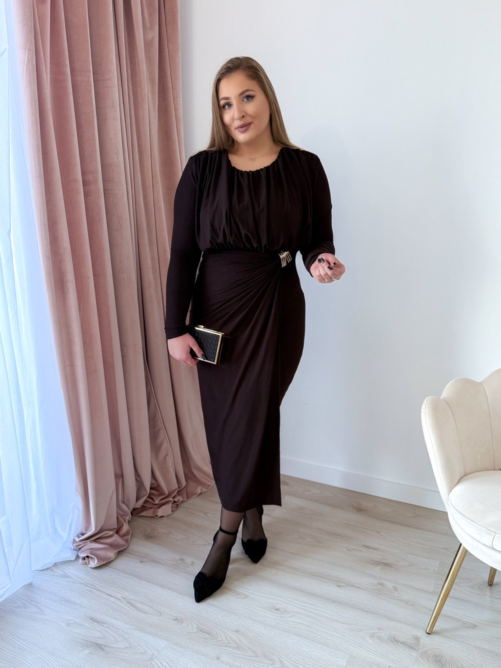 Sukienka maxi elegancka z klamrą Lalook - czekolada