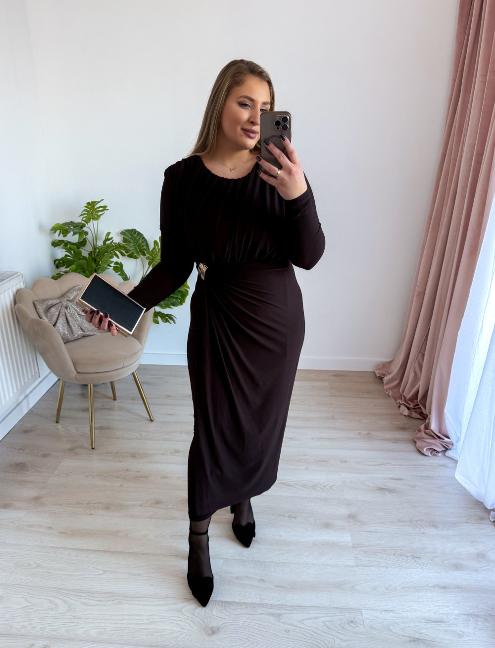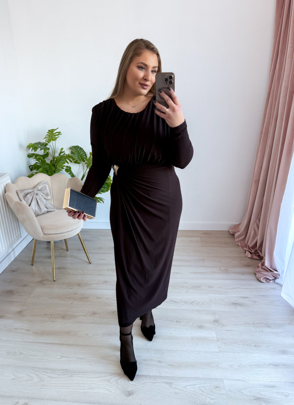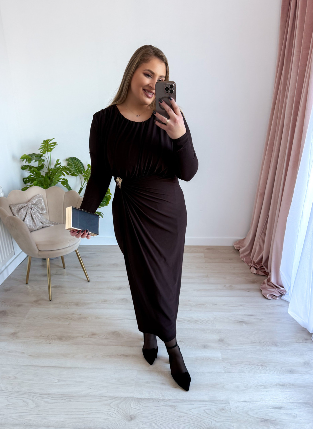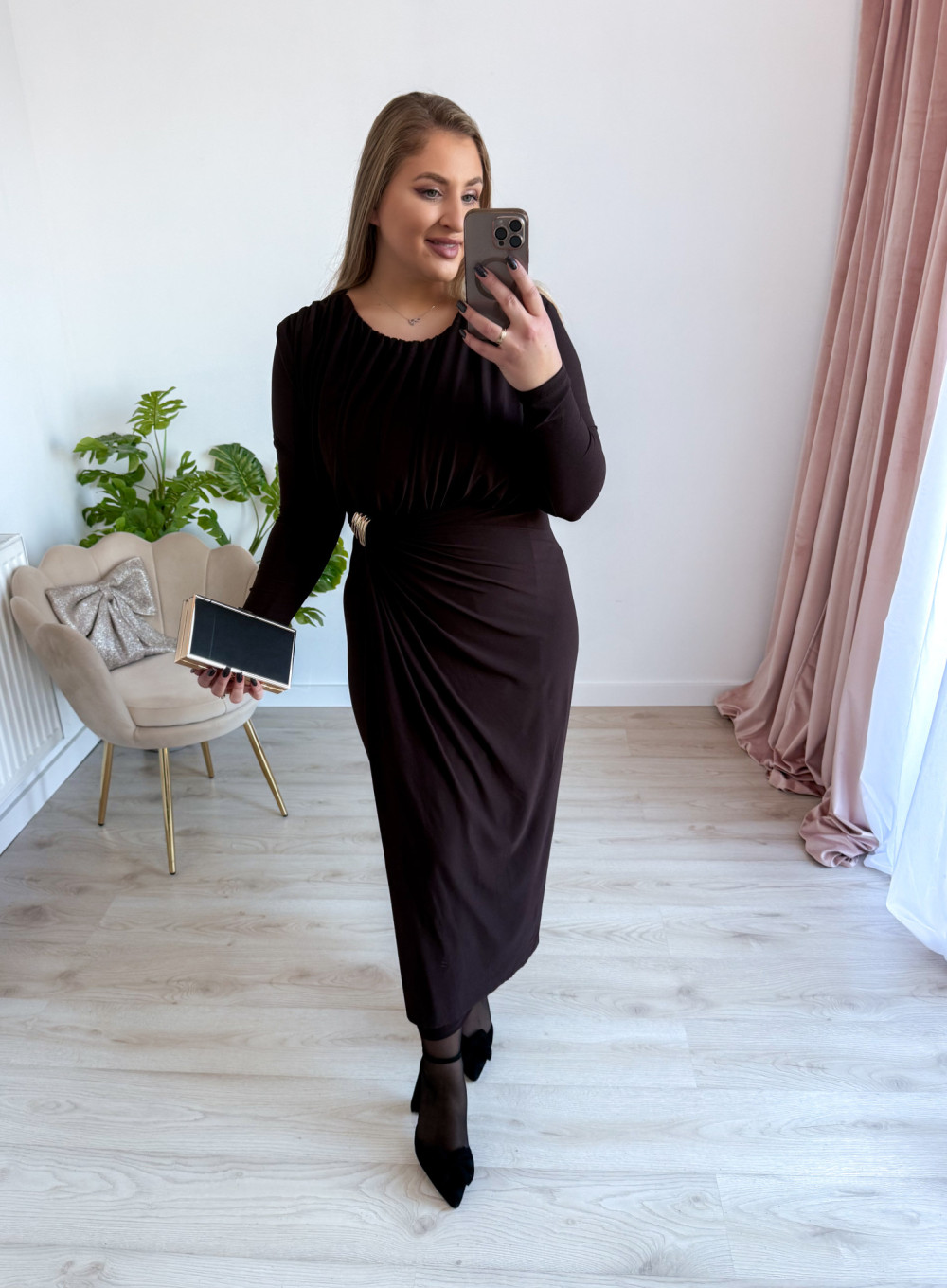 Sukienka maxi elegancka z klamrą Lalook - czekolada