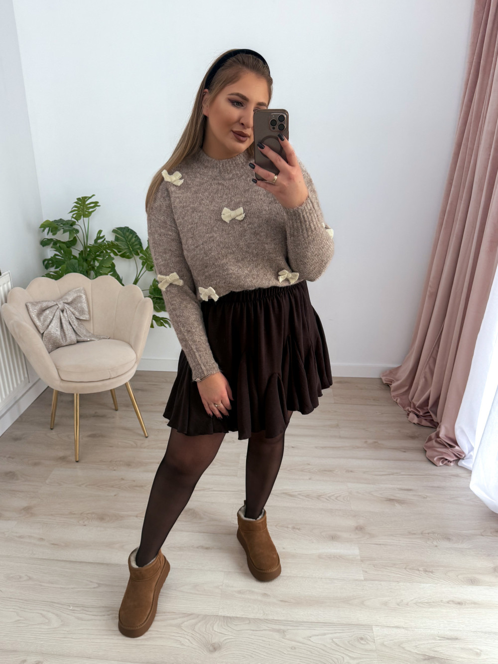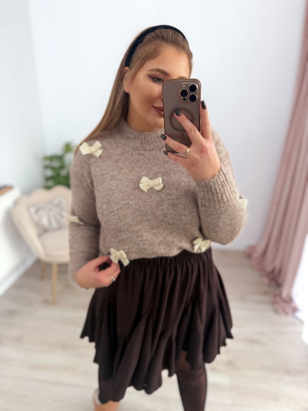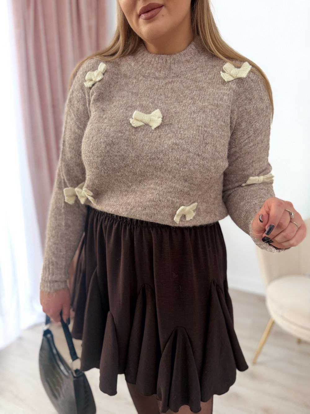 Sweterek z kokardeczkami Coccarda - fango