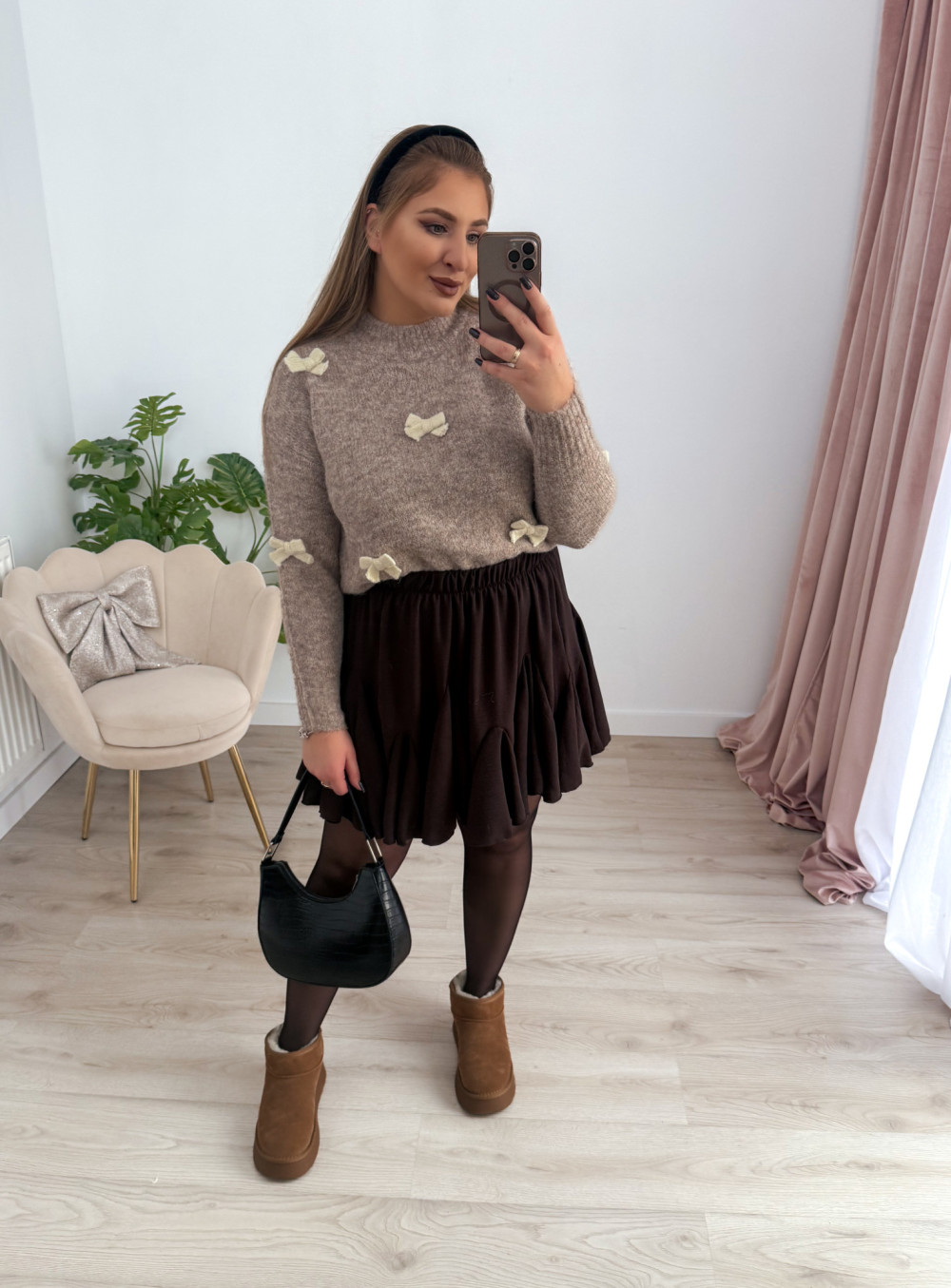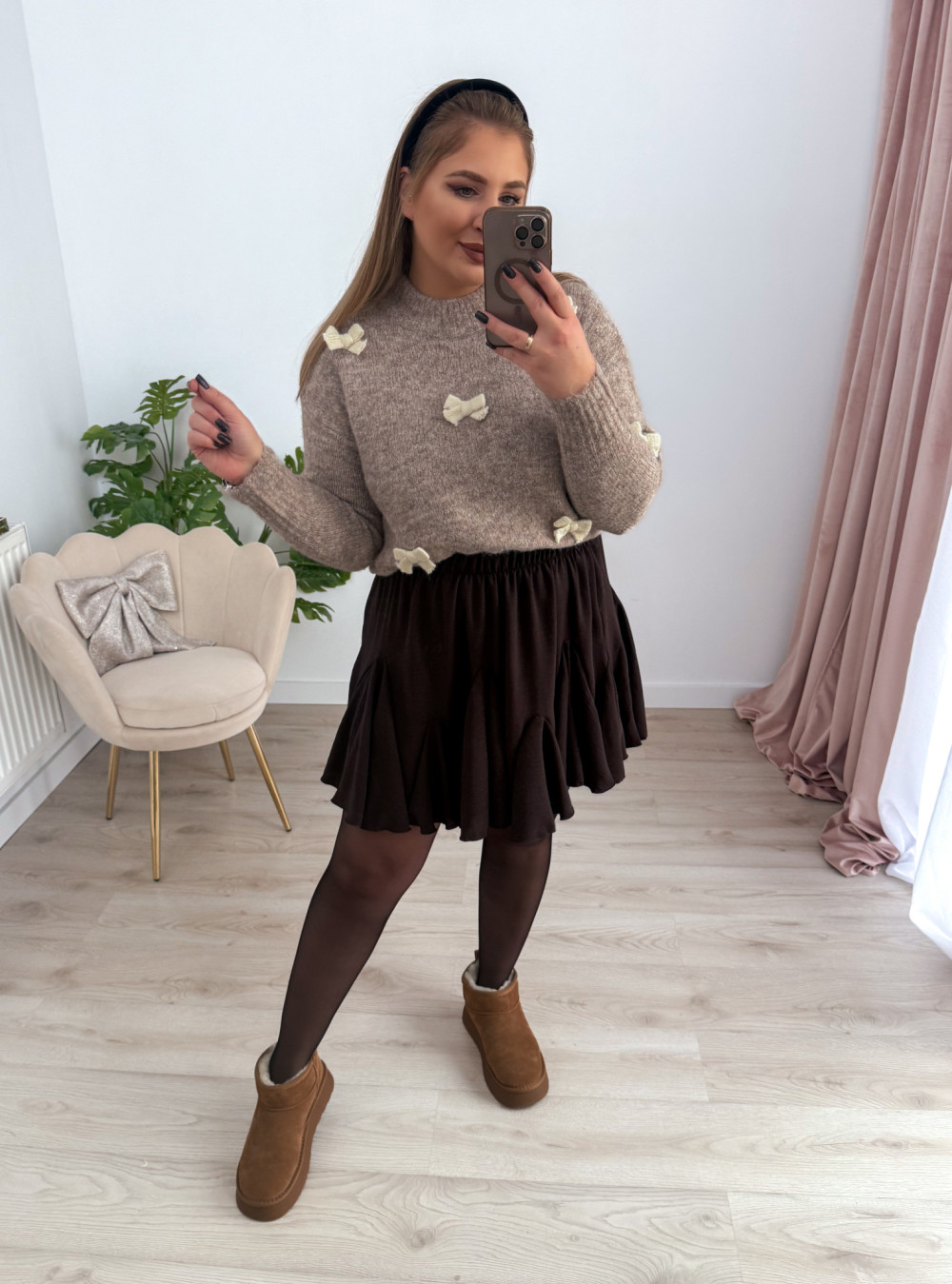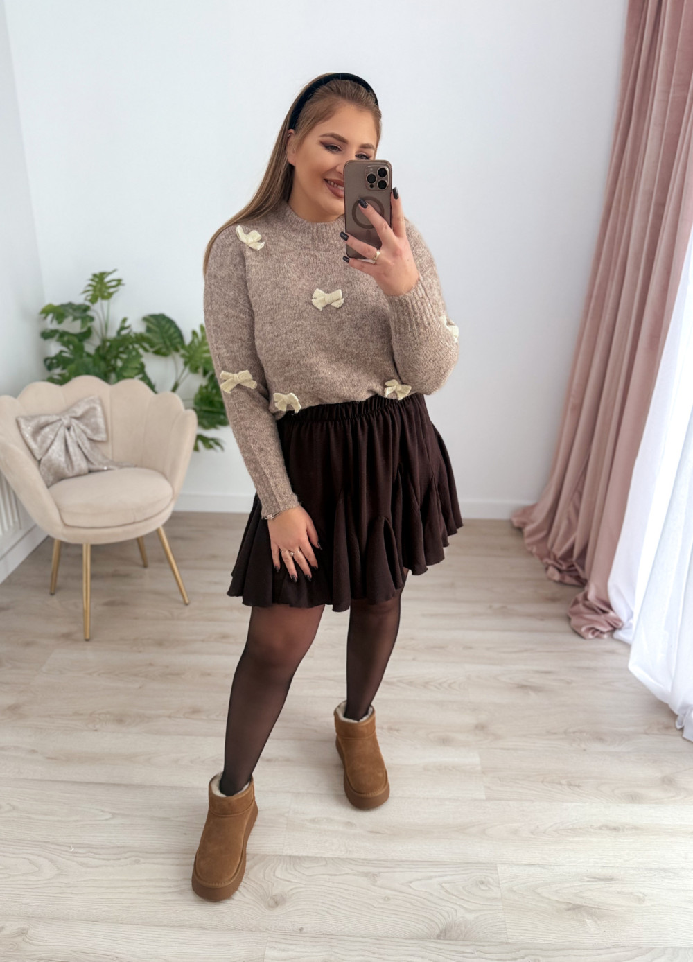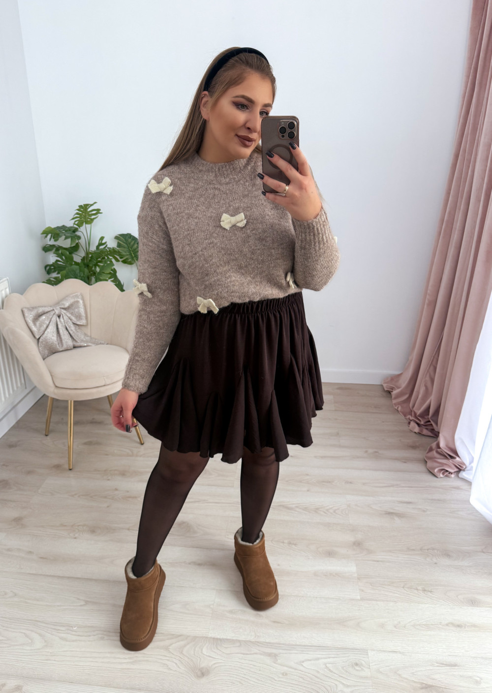 Sweterek z kokardeczkami Coccarda - fango