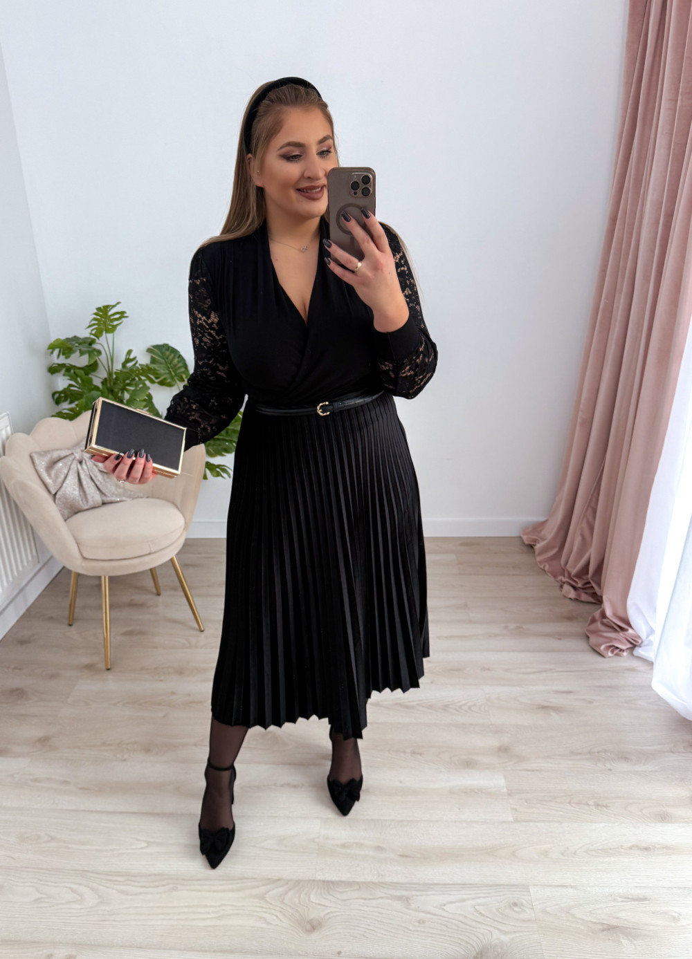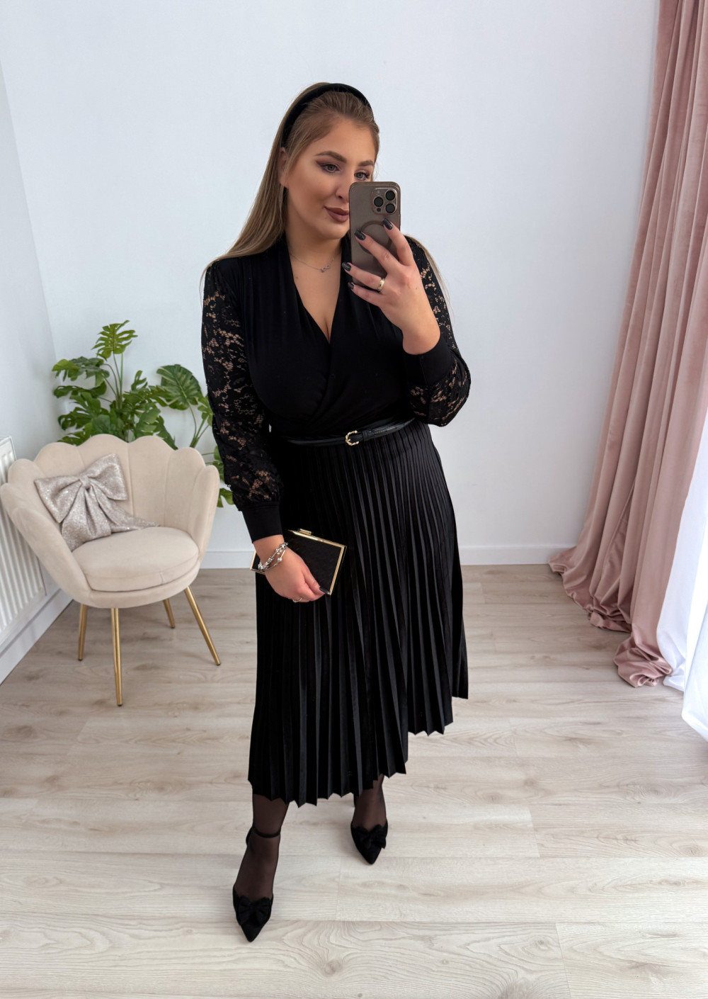 Plisowana, welurowa spódnica midi na gumce to idealne połączenie elegancji i wygody. Delikatny połysk weluru nadaje jej wyjątkowego charakteru, a długość midi sprawia, że prezentuje się niezwykle stylowo i kobieco. Elastyczna gumka w pasie zapewnia komfort noszenia i idealne dopasowanie do sylwetki. To model, który świetnie sprawdzi się zarówno na co dzień, jak i w bardziej eleganckich stylizacjach.