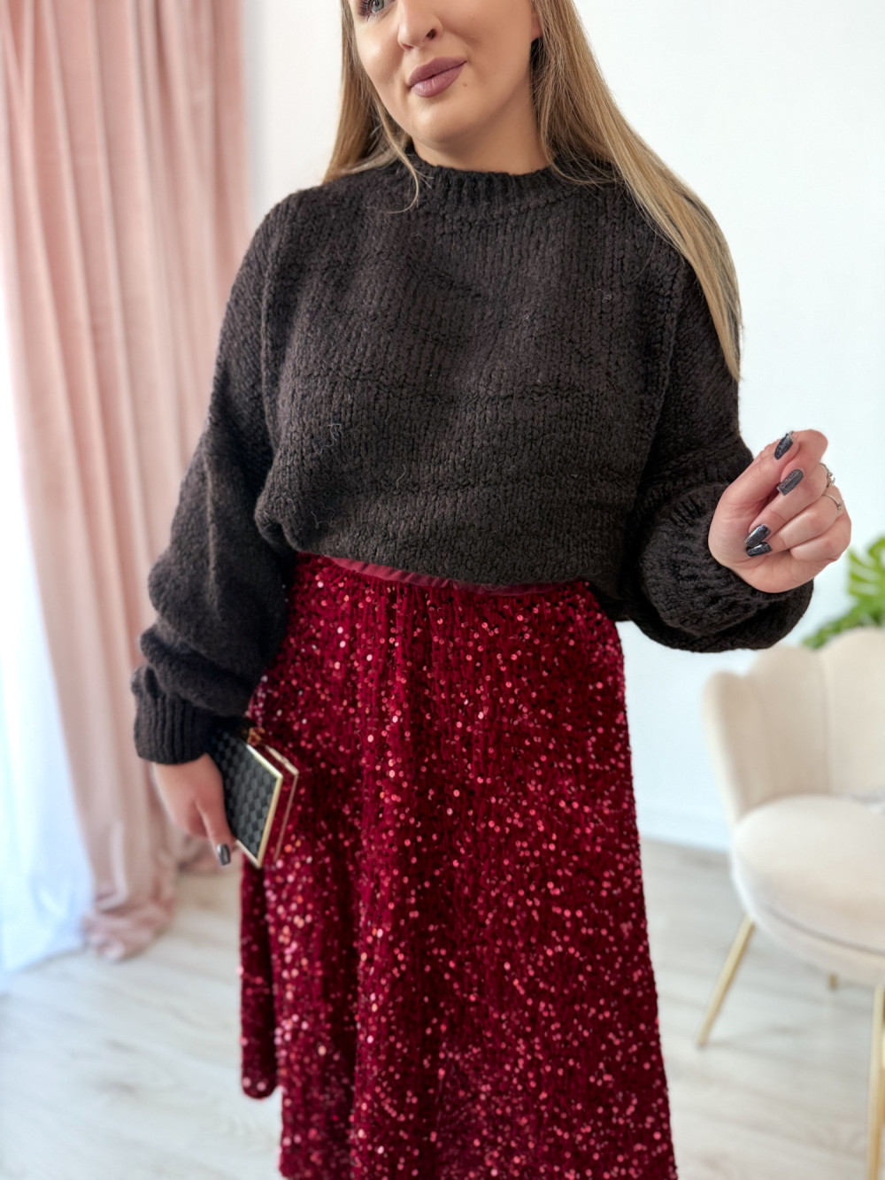 Sweter oversize z wełną i szerokimi rękawami Pippi - gorzka czekolada