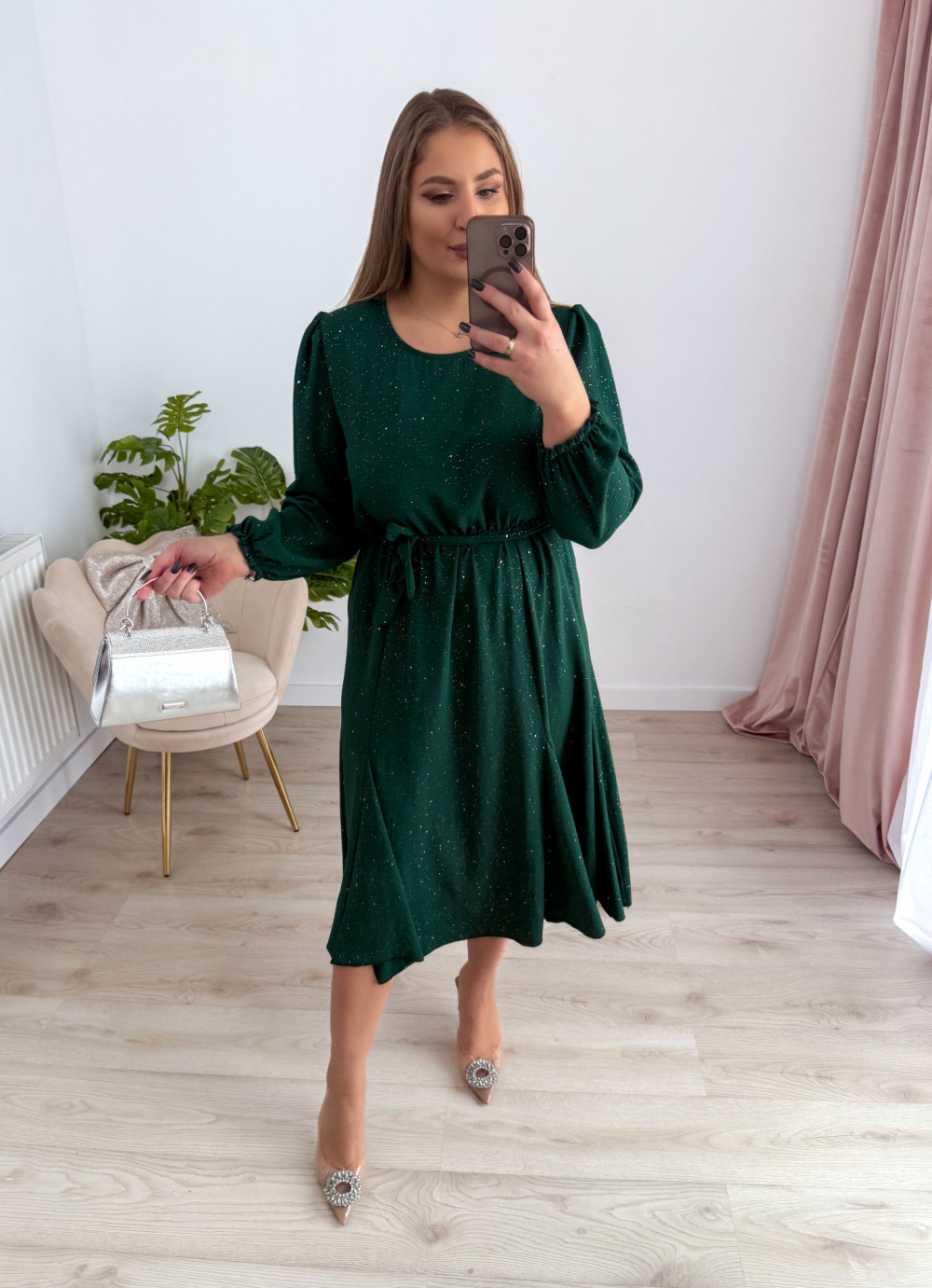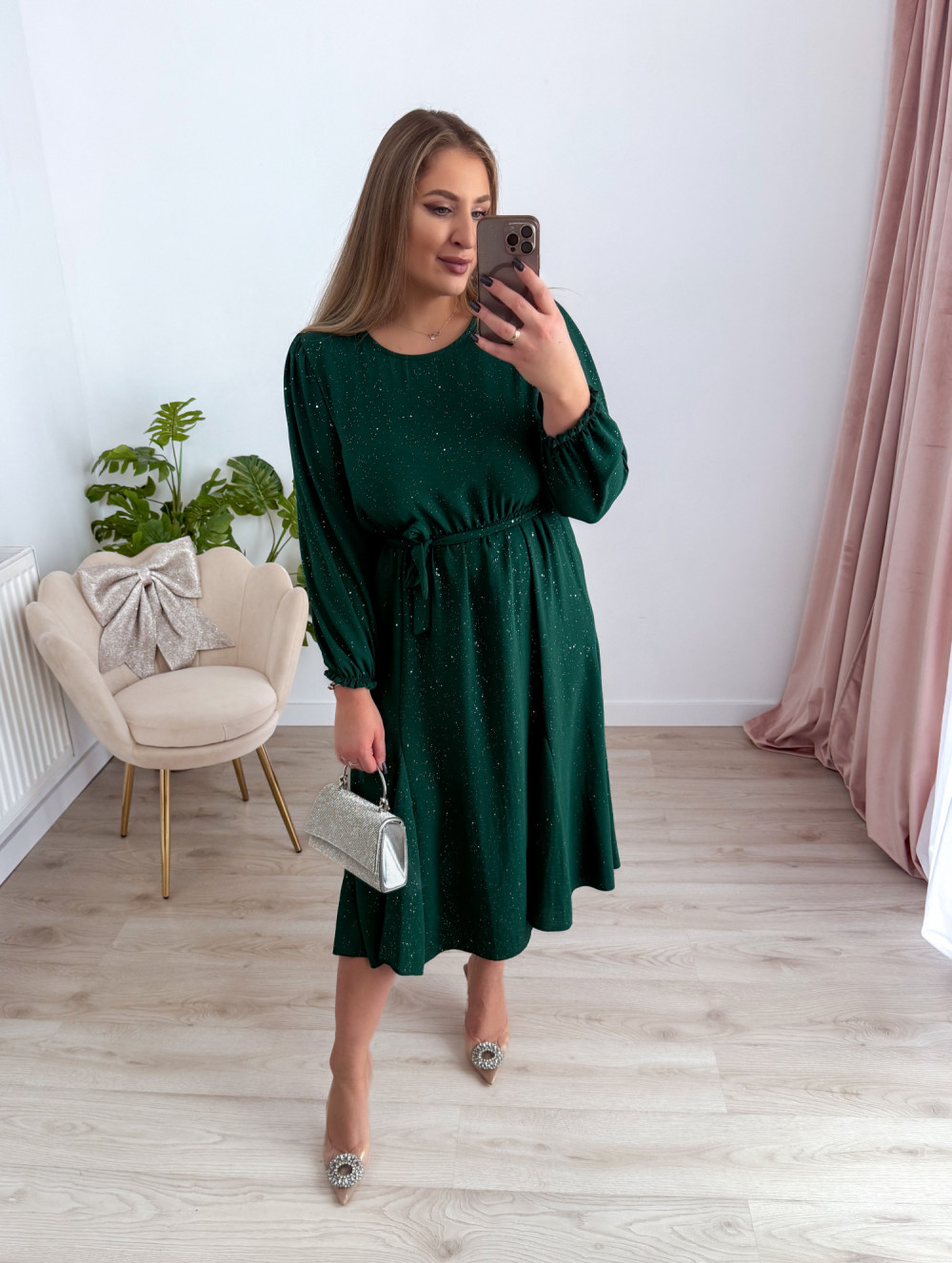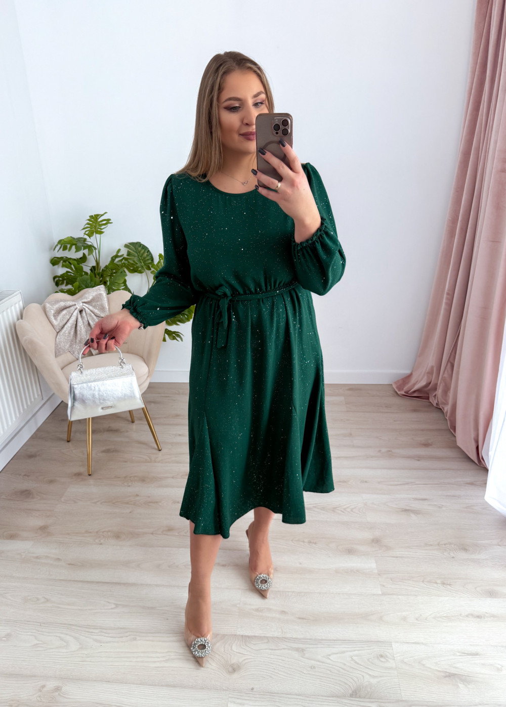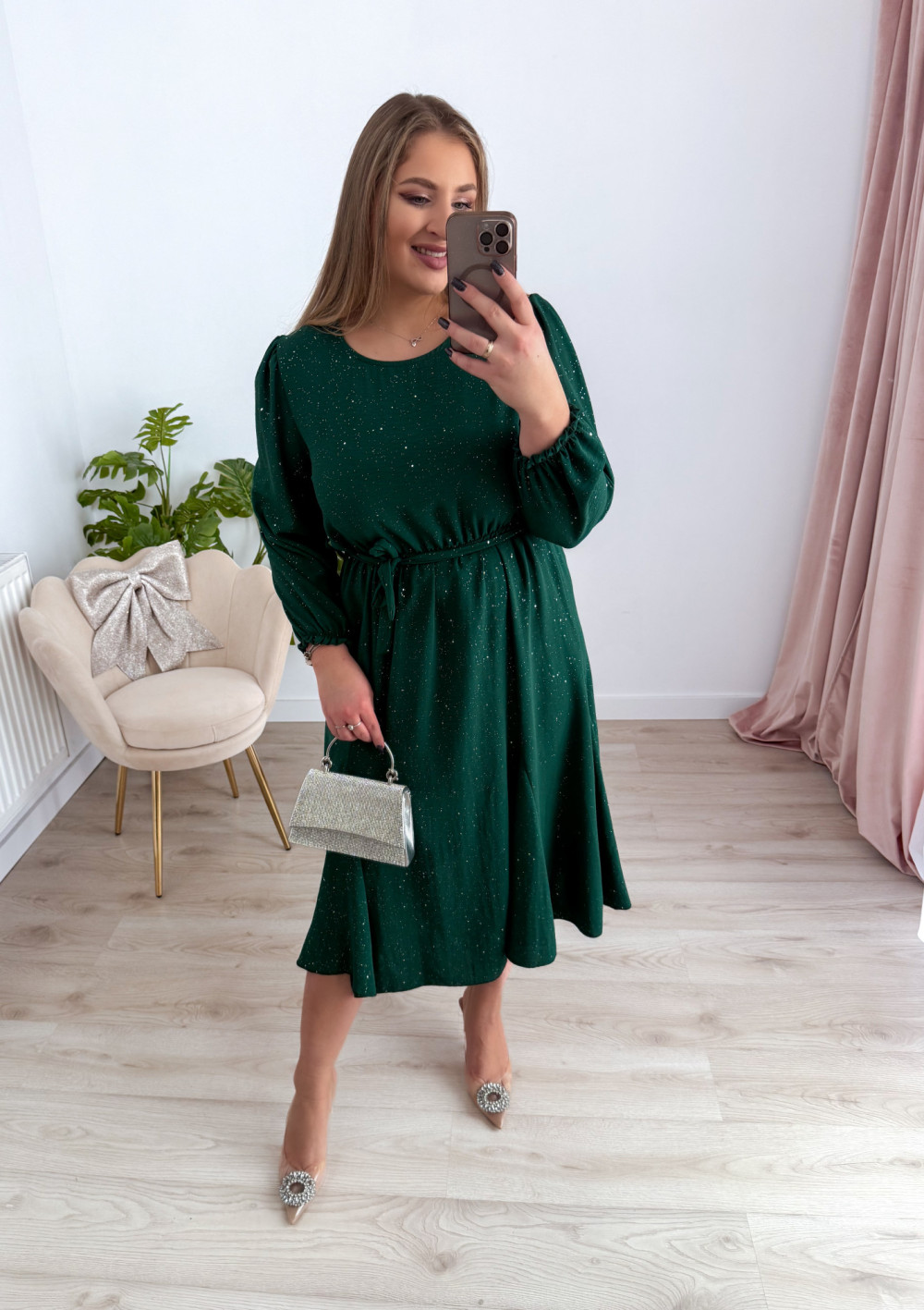 Sukienka midi ze srebrnymi drobinkami Dominica - butelkowa zieleń