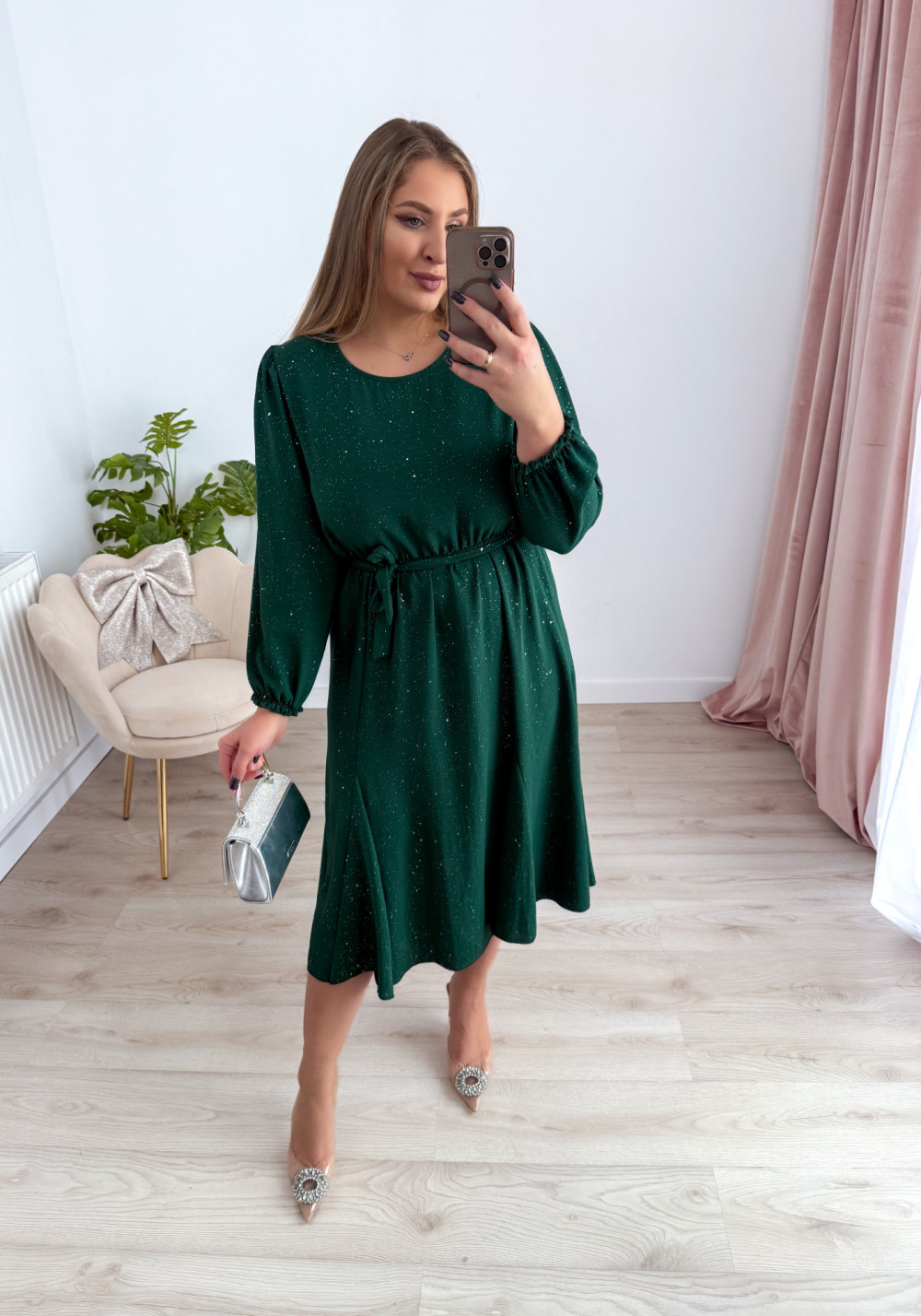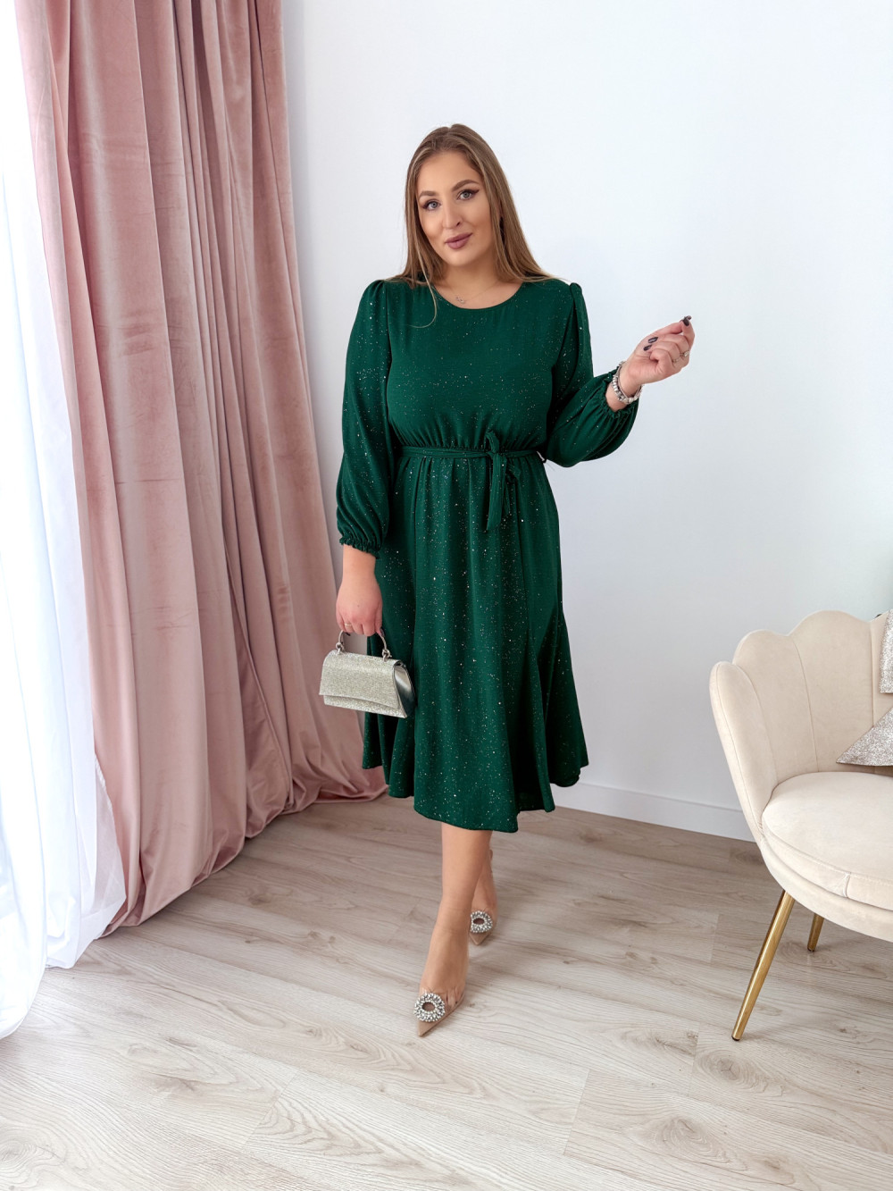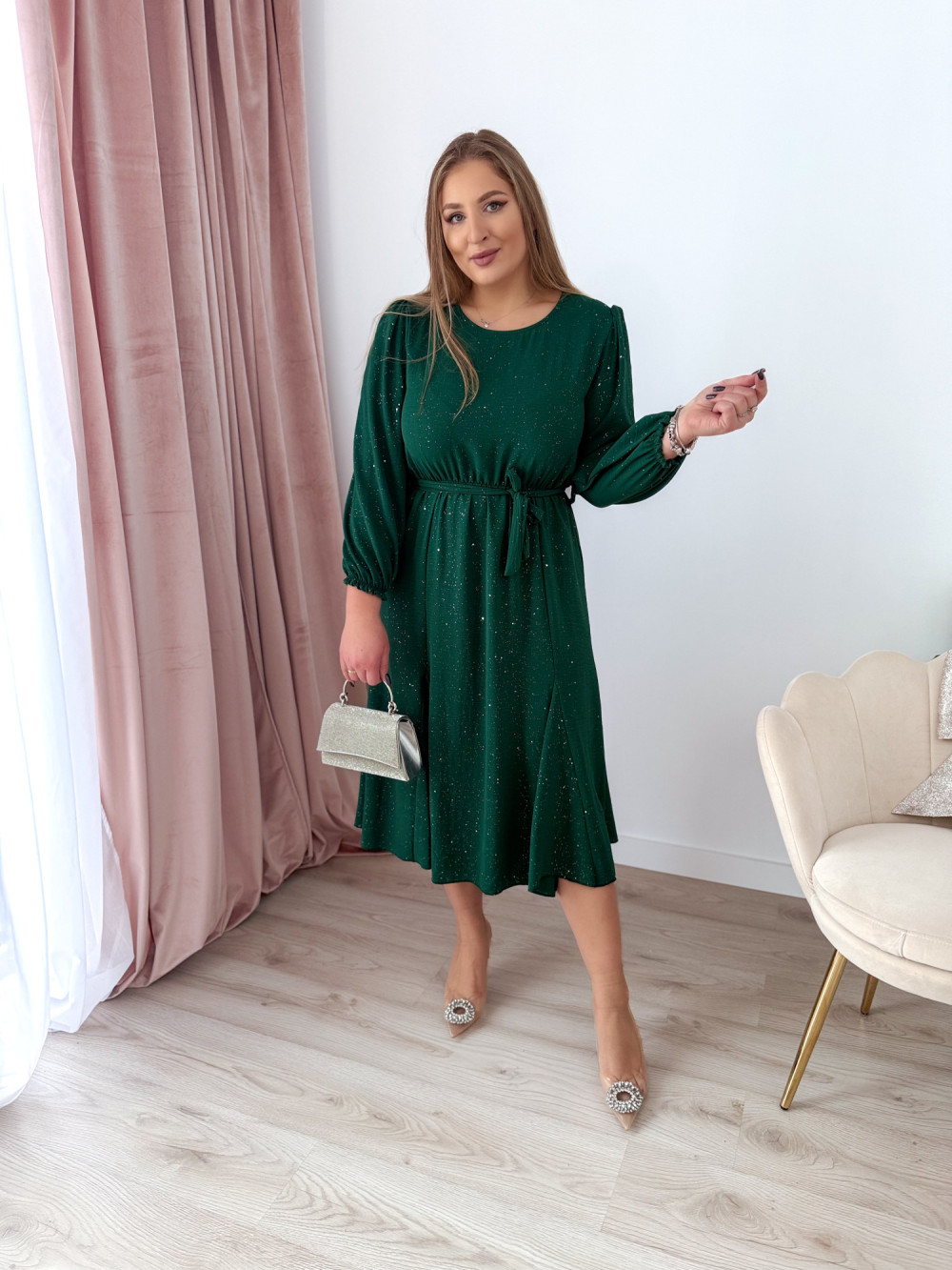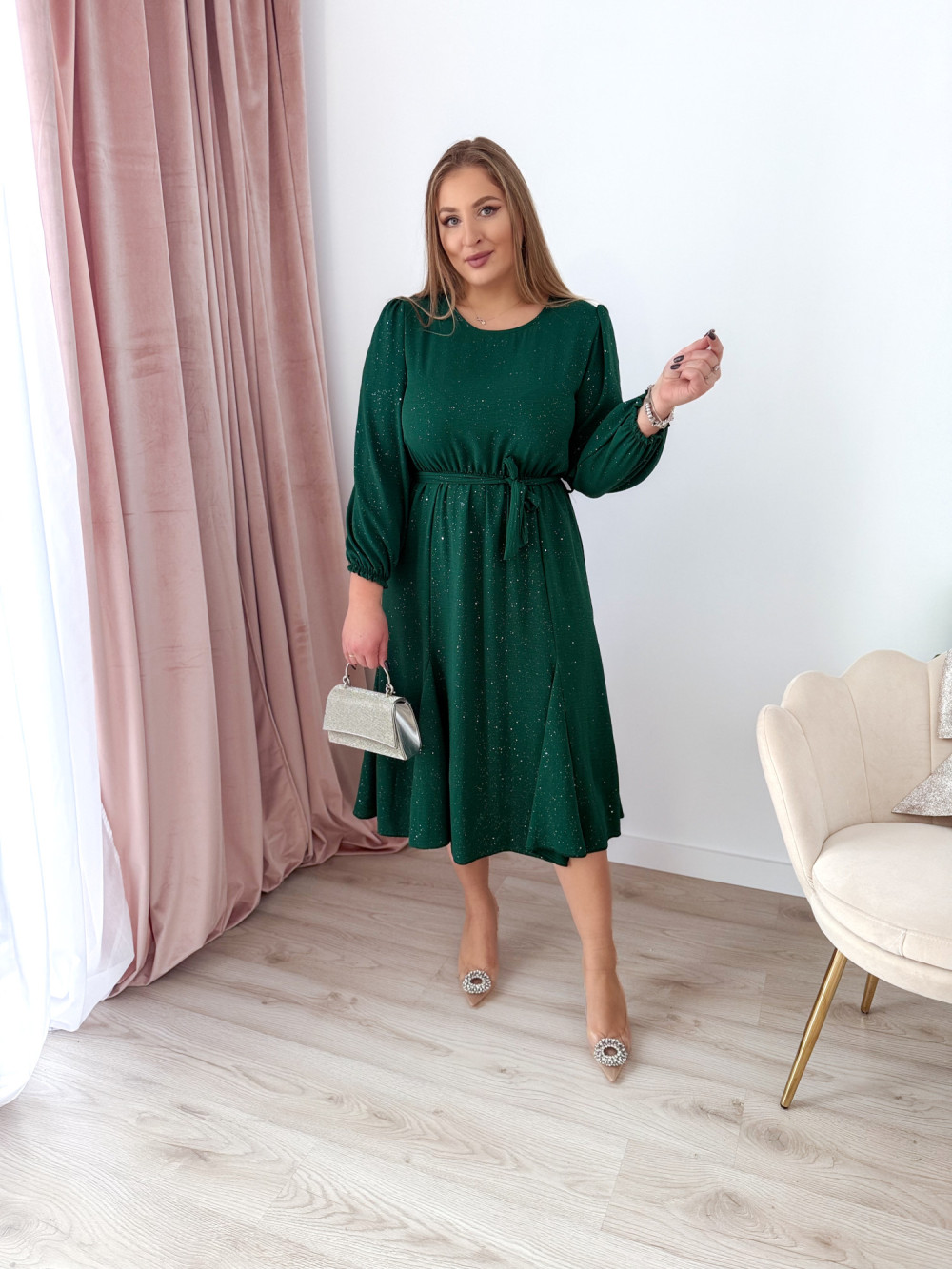 Sukienka midi ze srebrnymi drobinkami Dominica - butelkowa zieleń