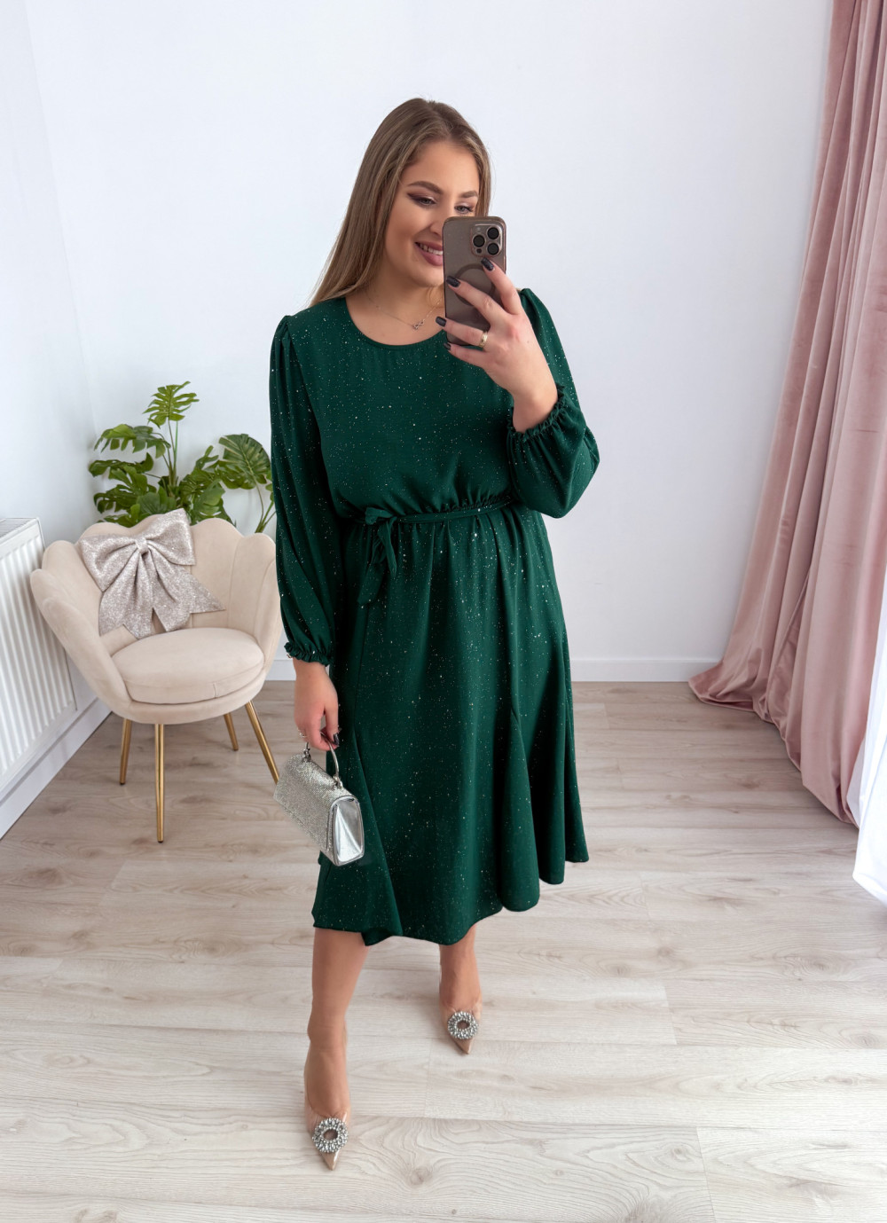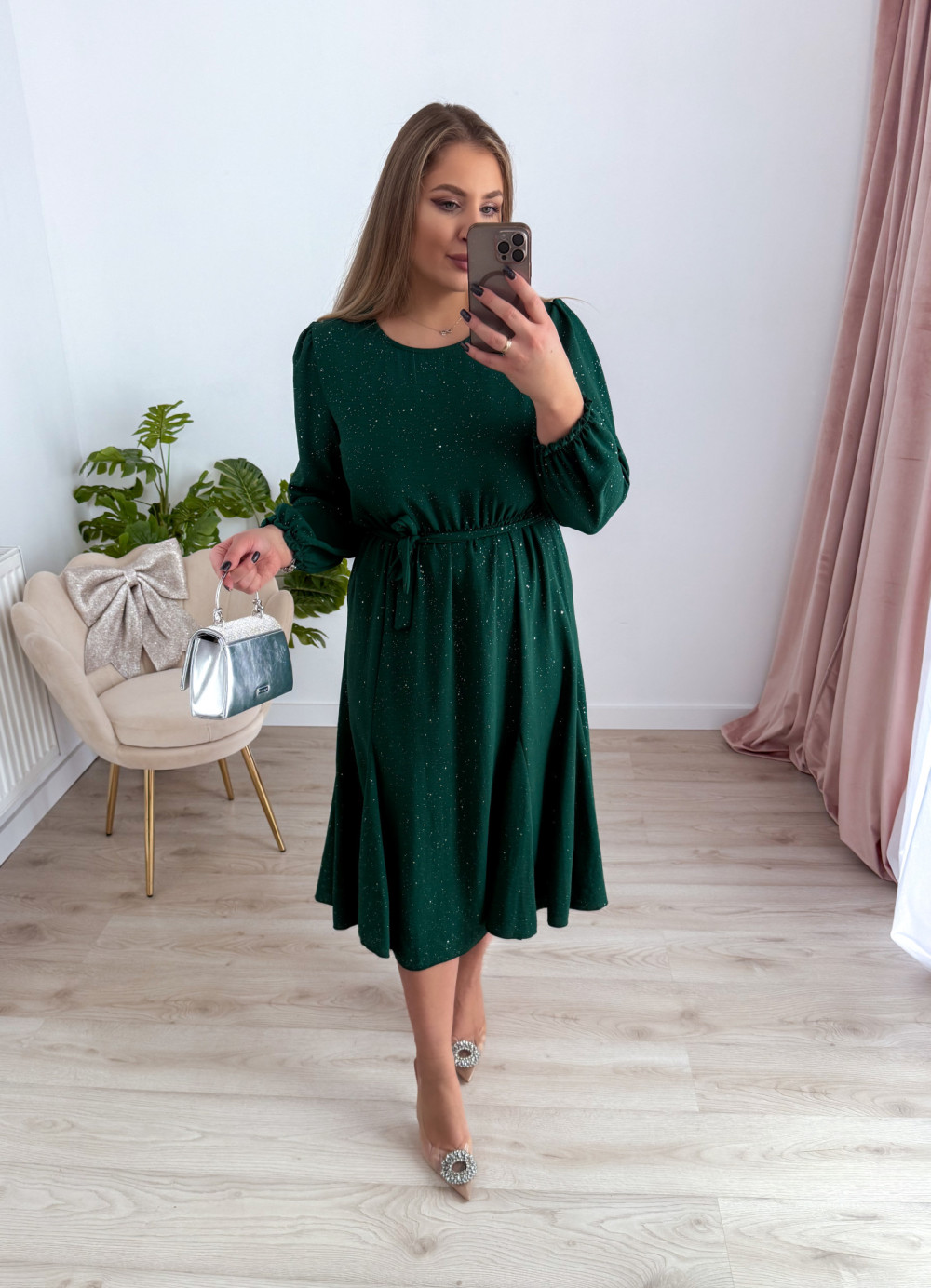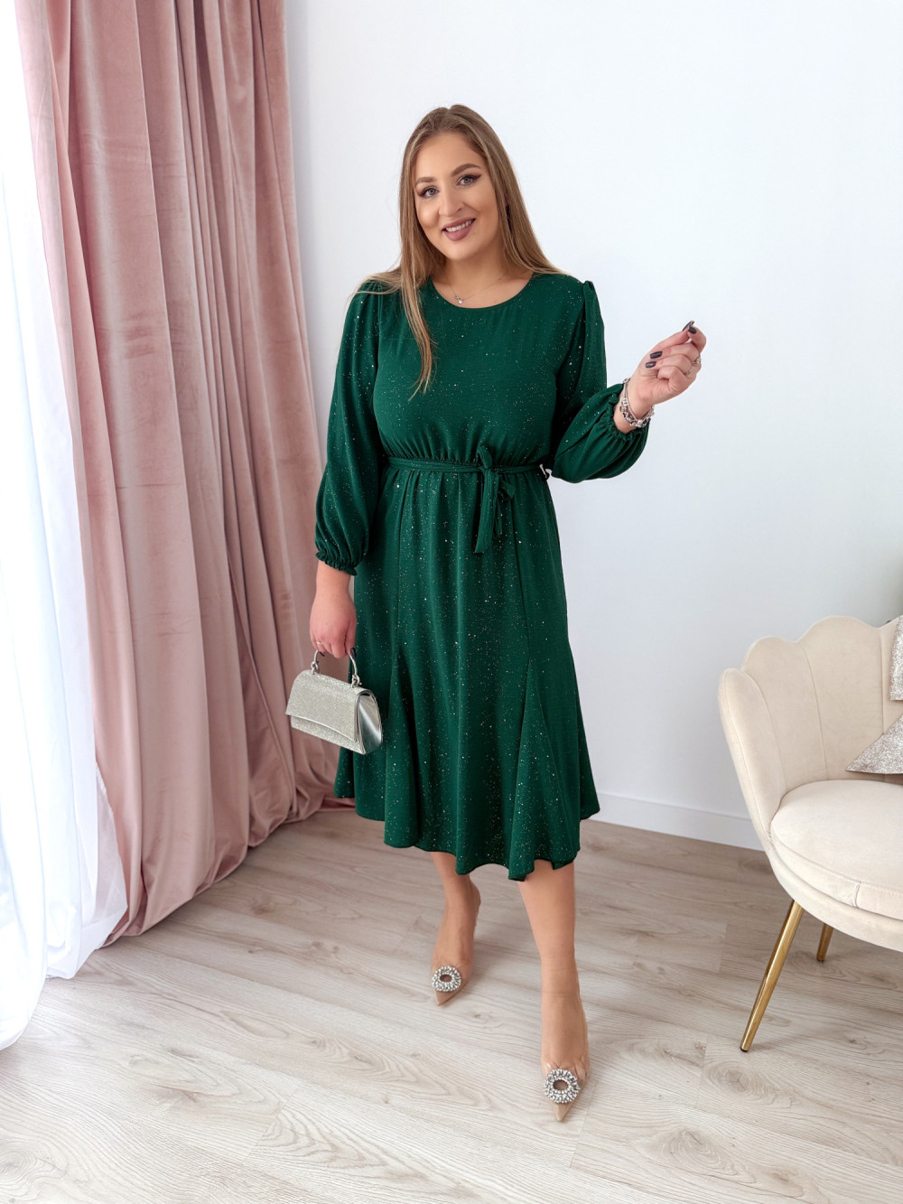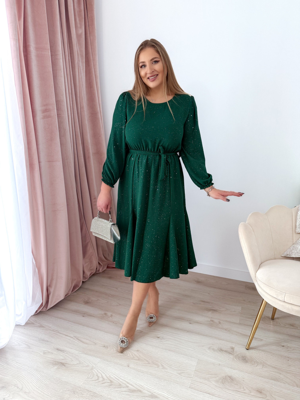 Sukienka midi ze srebrnymi drobinkami Dominica - butelkowa zieleń