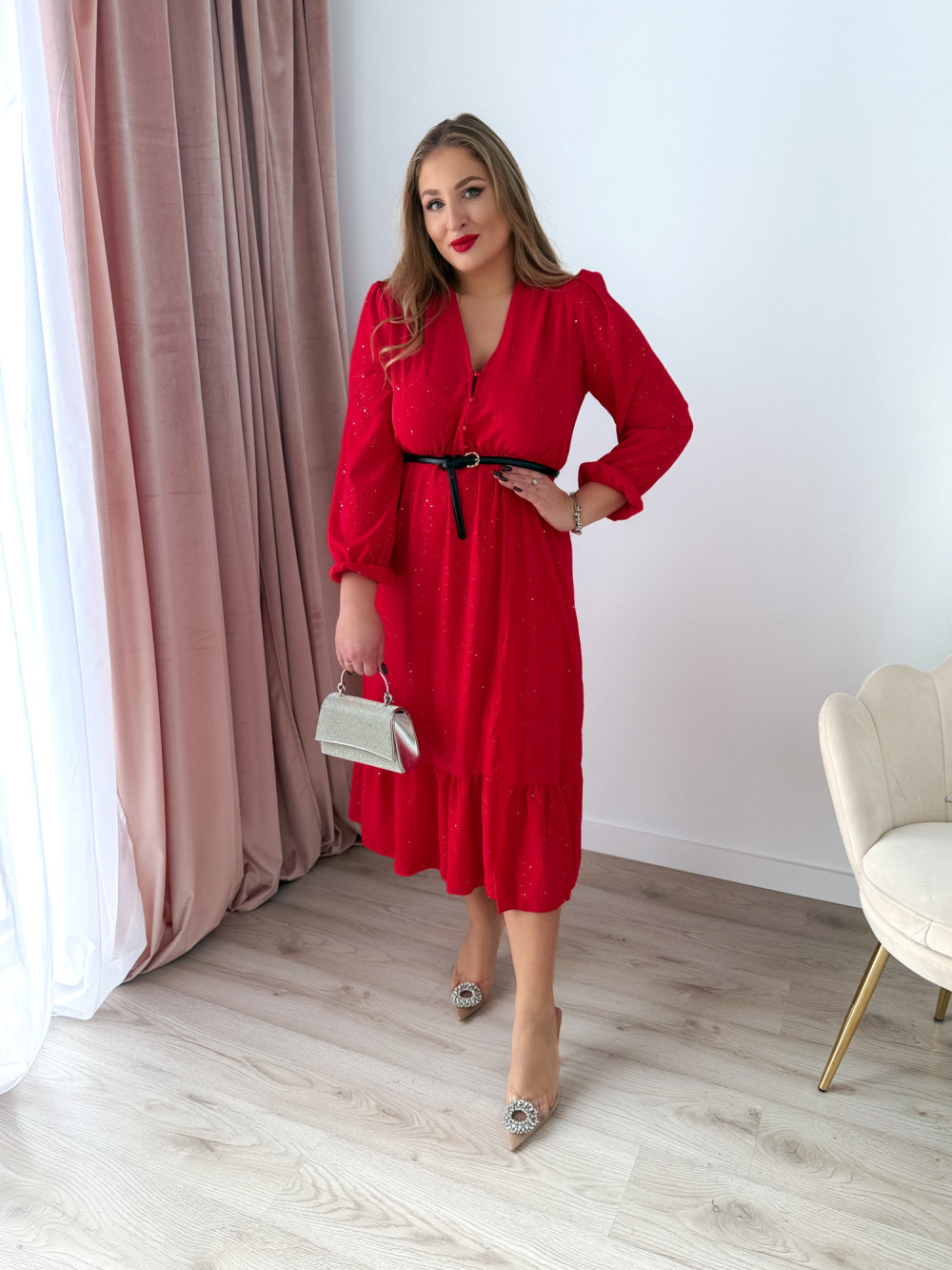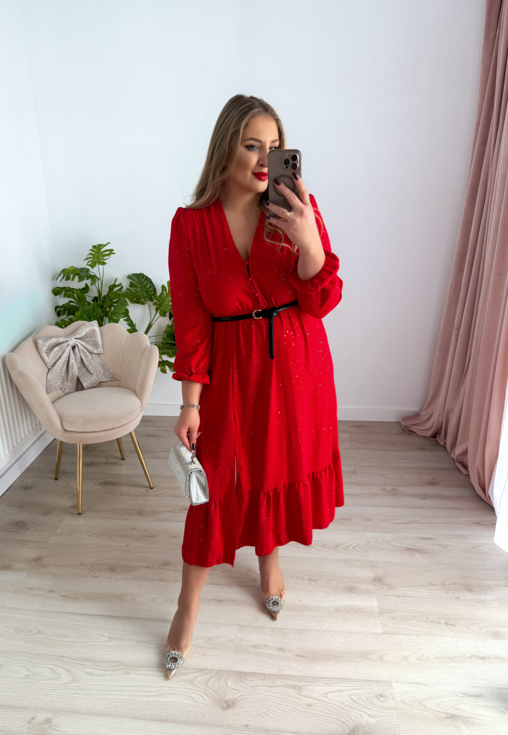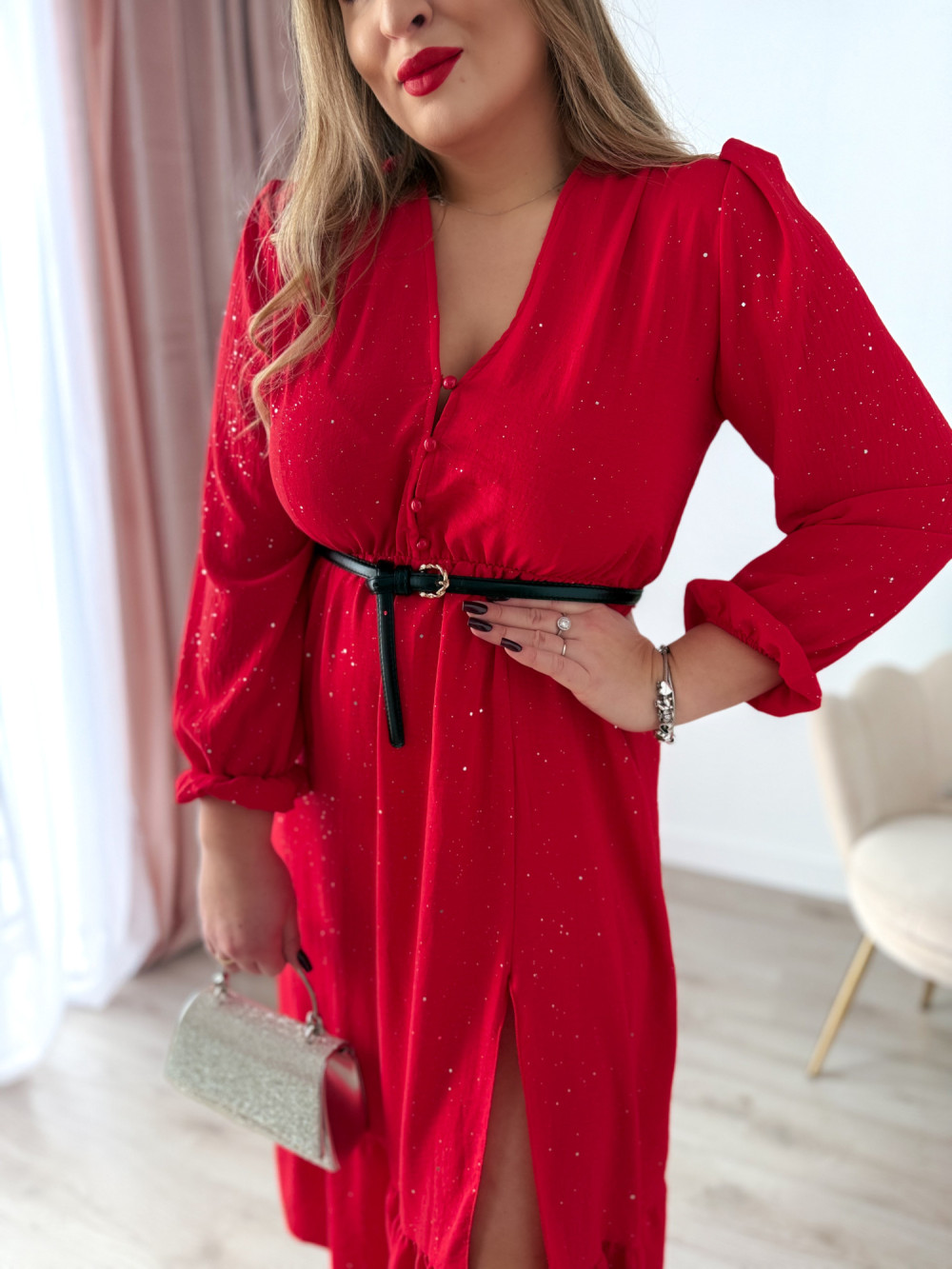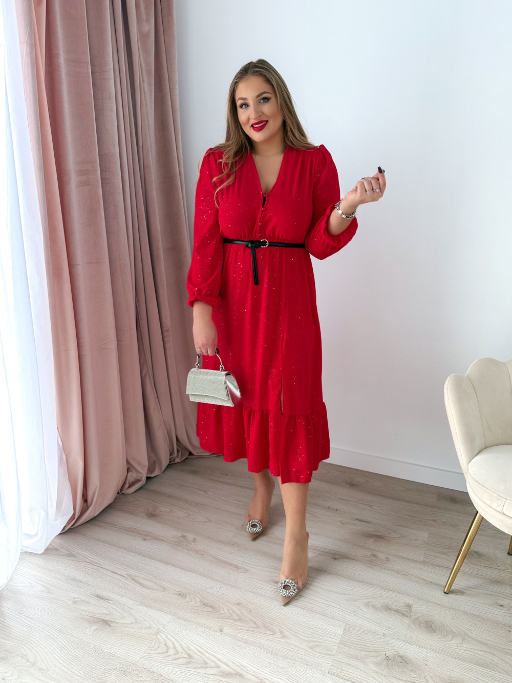 Sukienka midi z rozcięciem na nodze i srebrnymi drobinkami Belle - czerwona