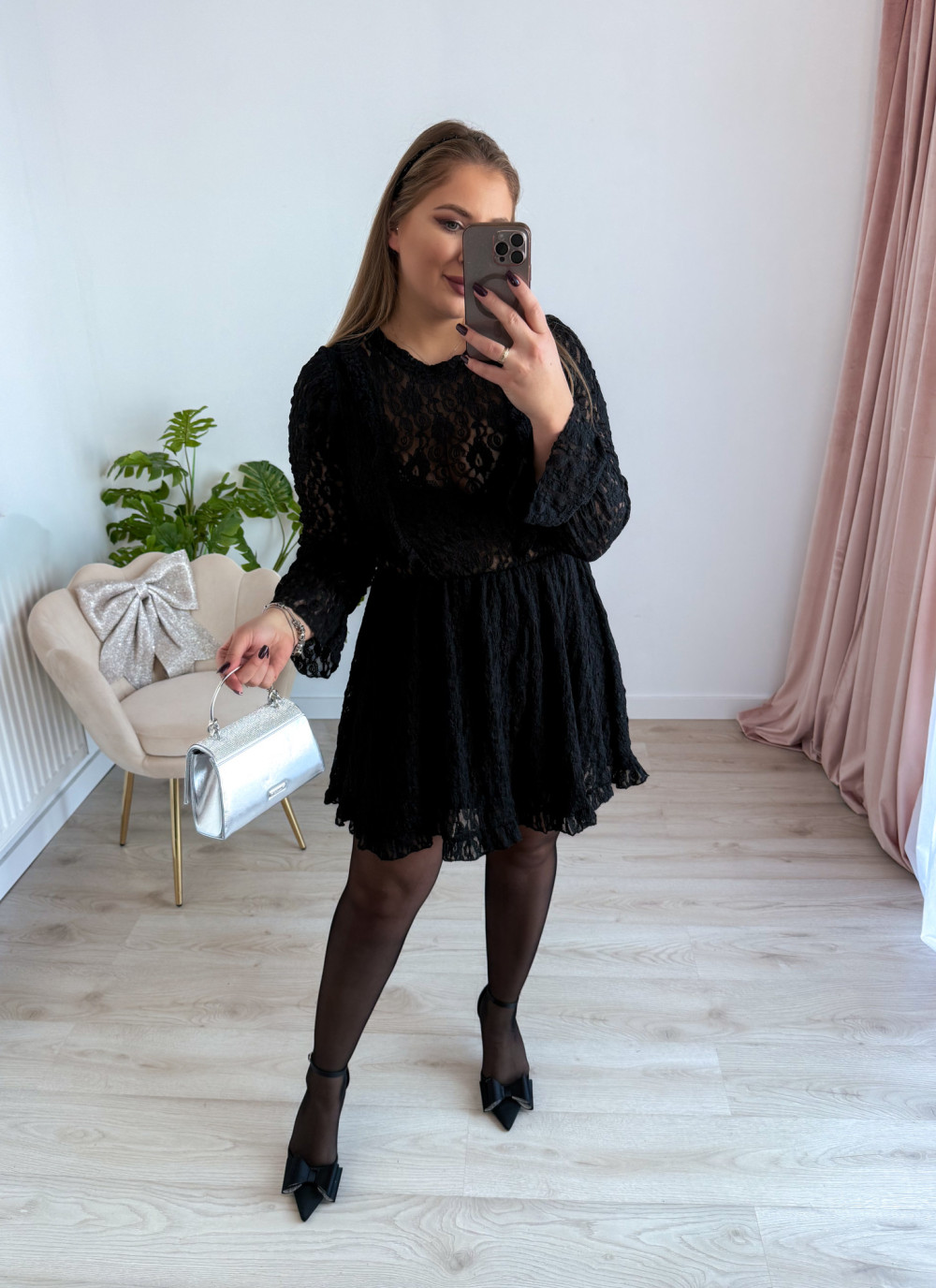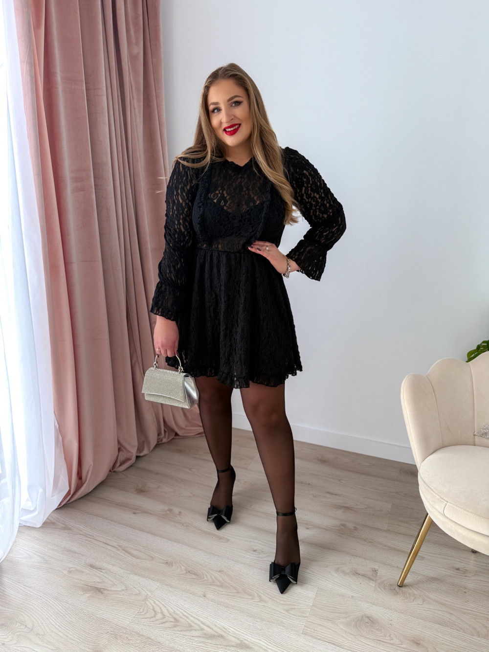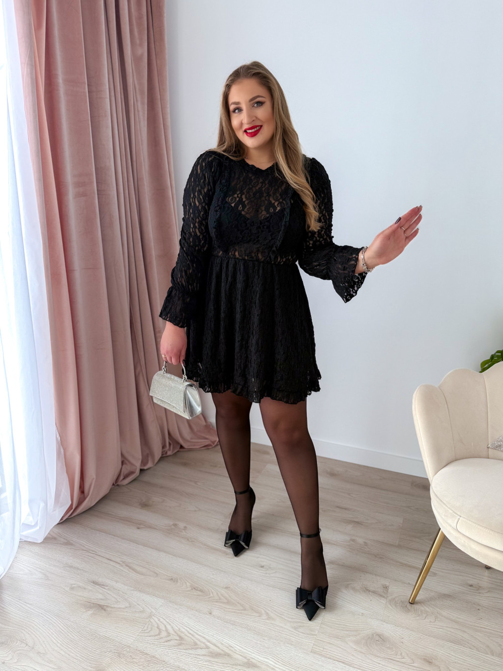 Sukienka krótka koronkowa London - czarna