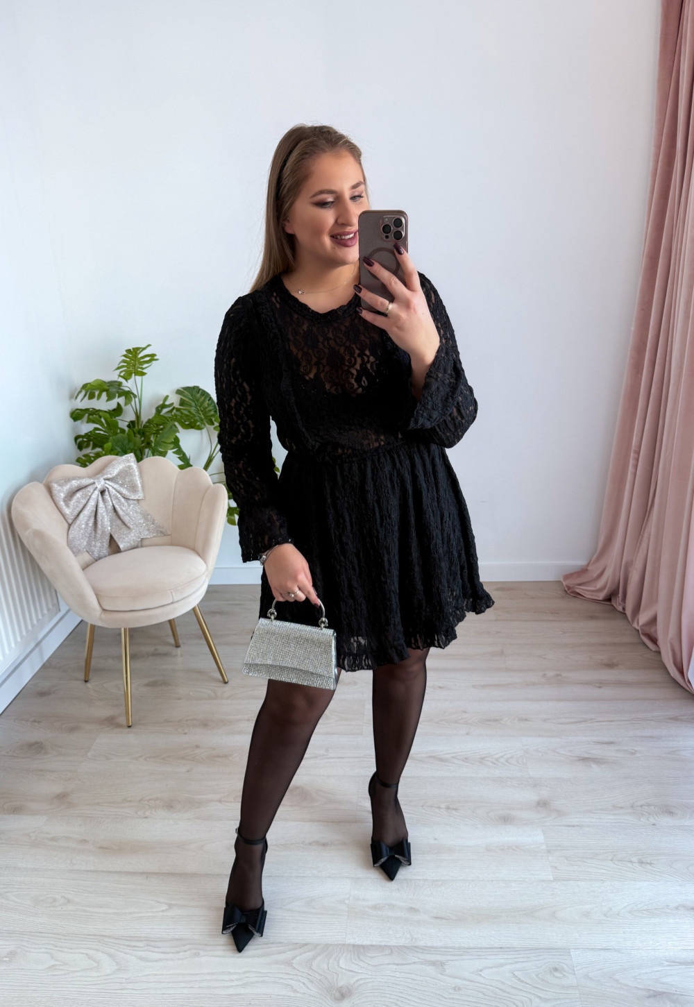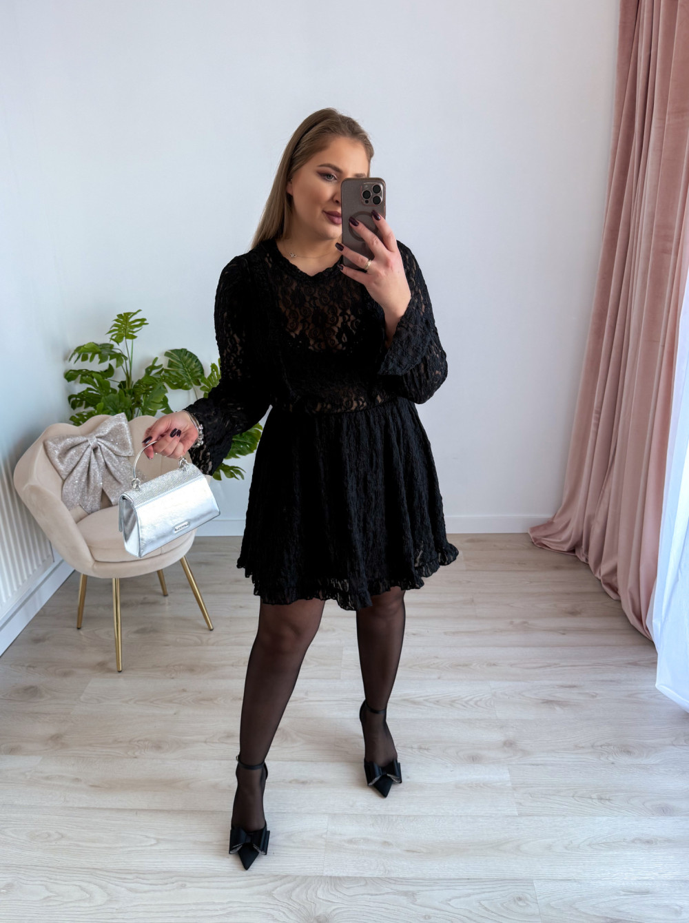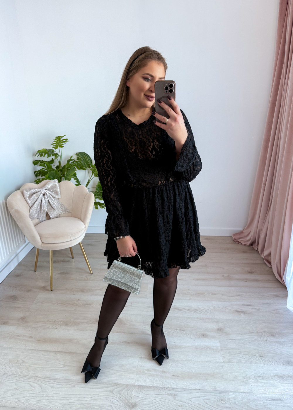 Sukienka krótka koronkowa London - czarna