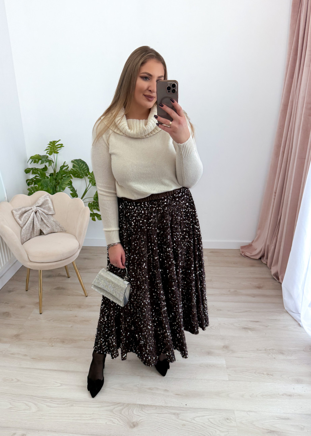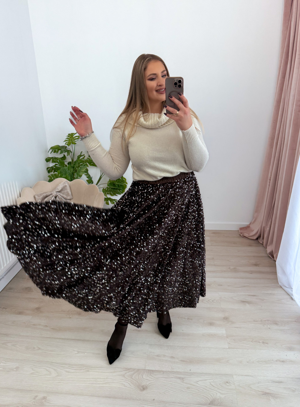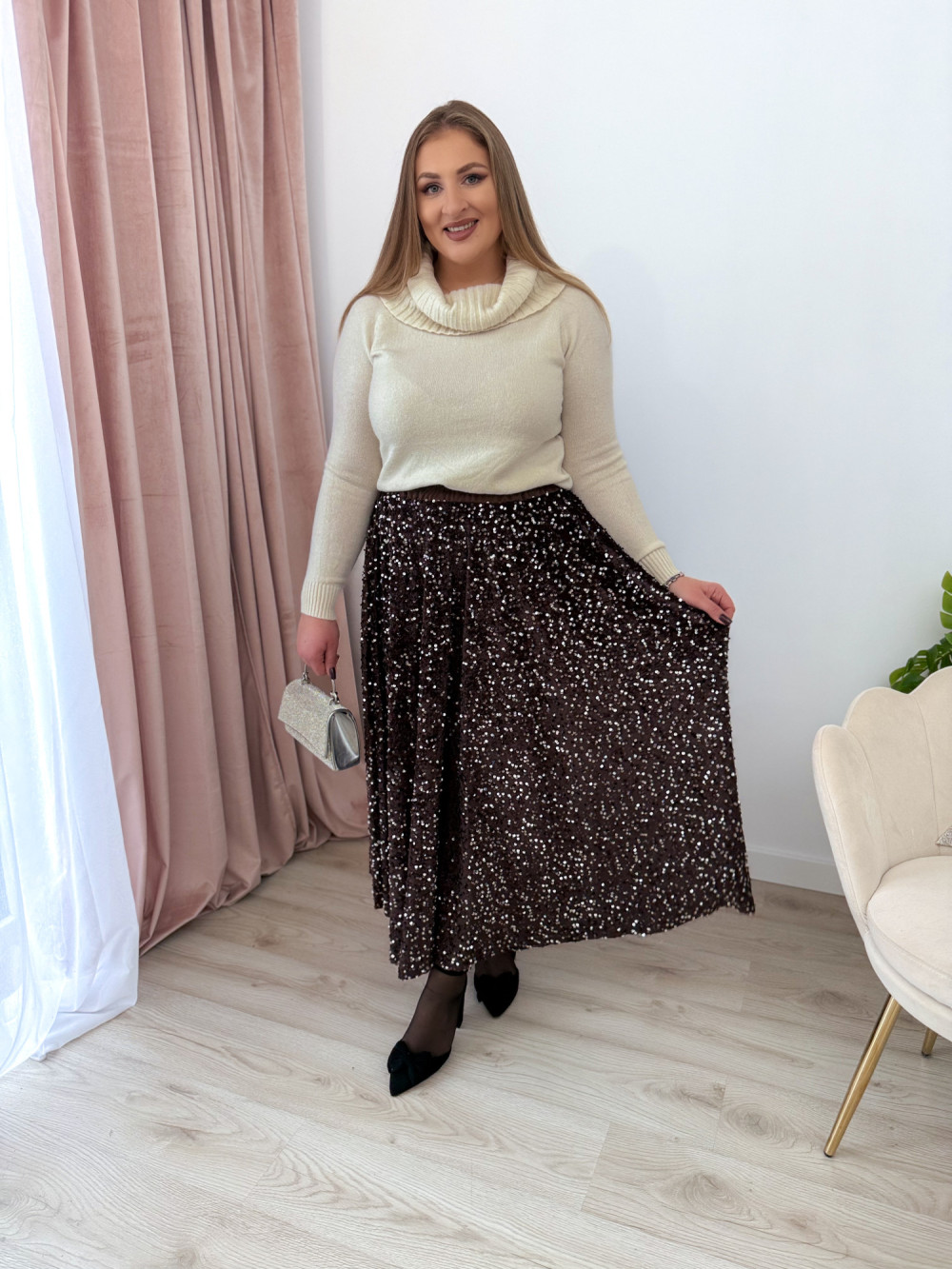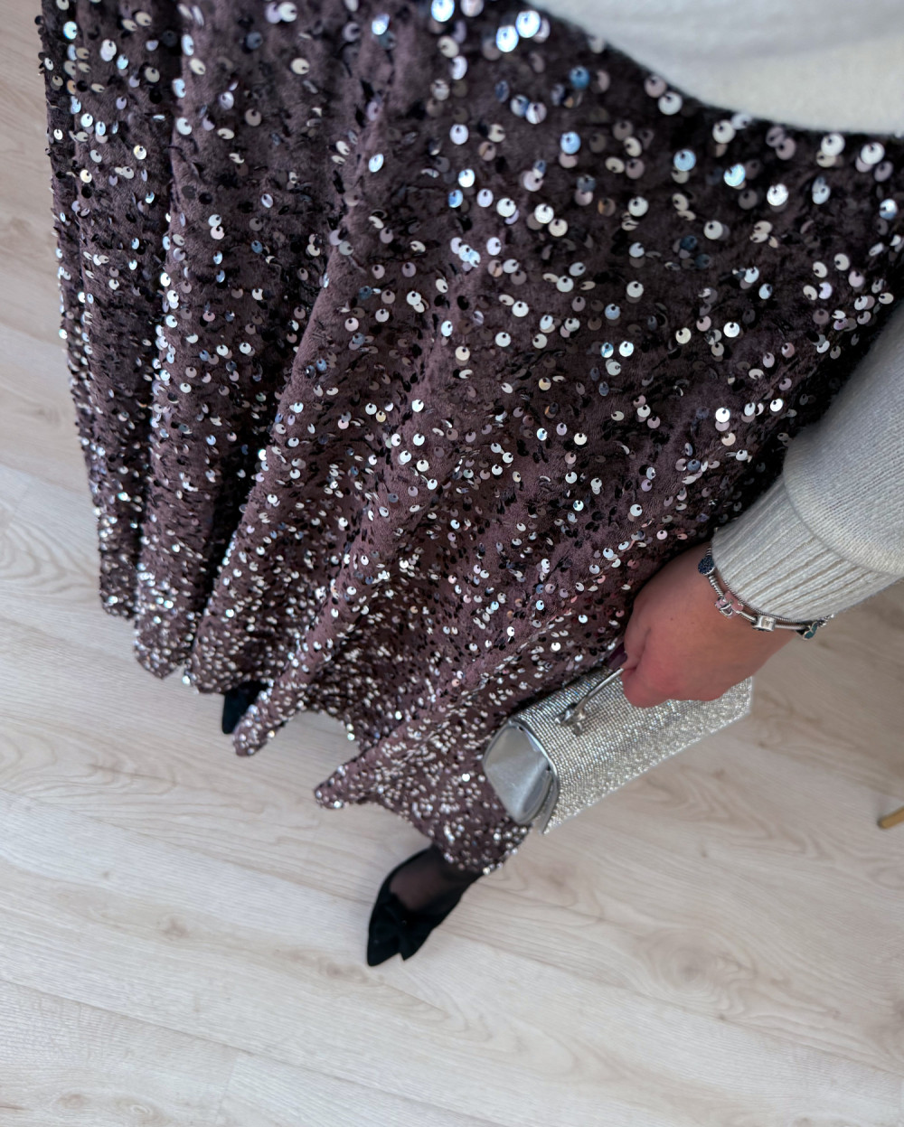 Spódnica maxi błyszcząca cekinowa Shine - czekoladowa