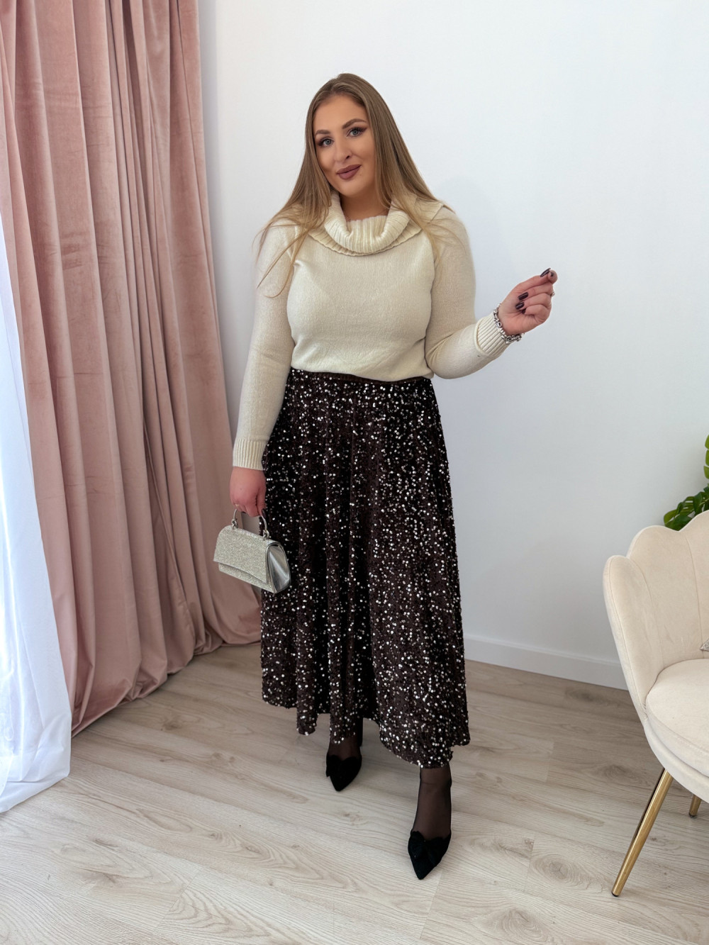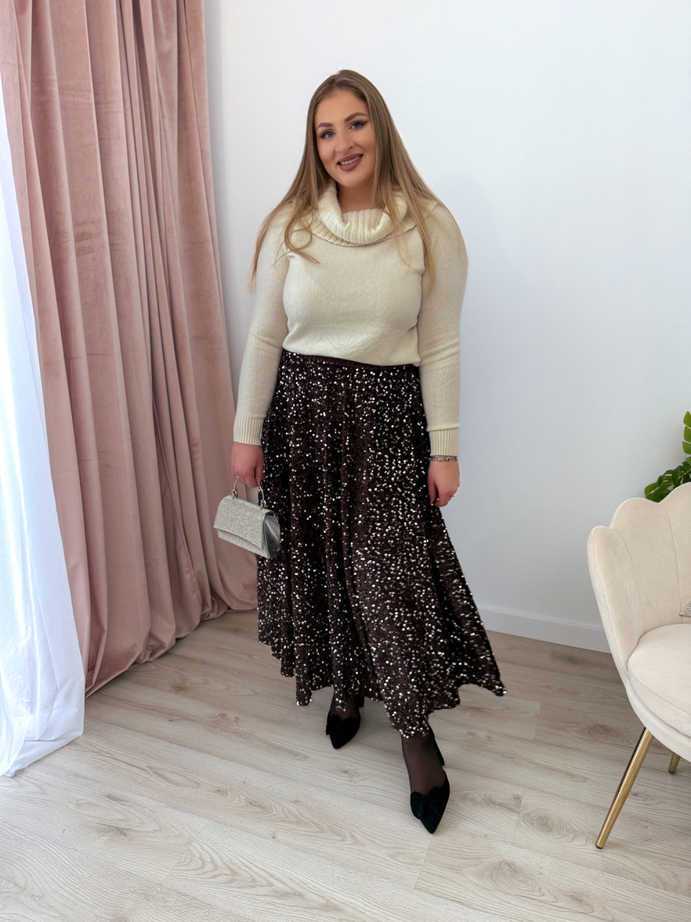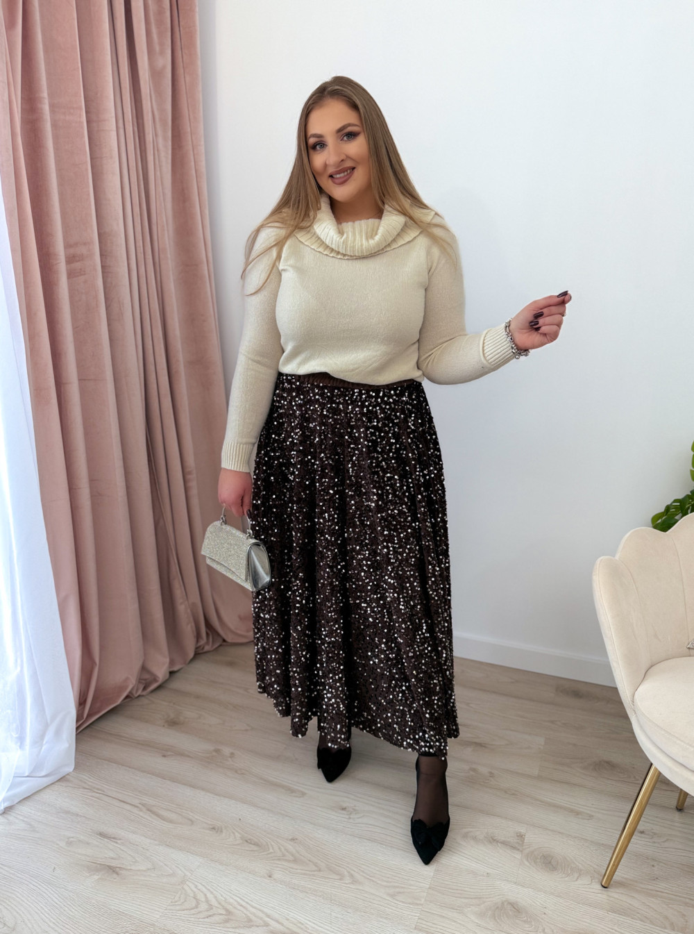Spódnica maxi błyszcząca cekinowa Shine - czekoladowa