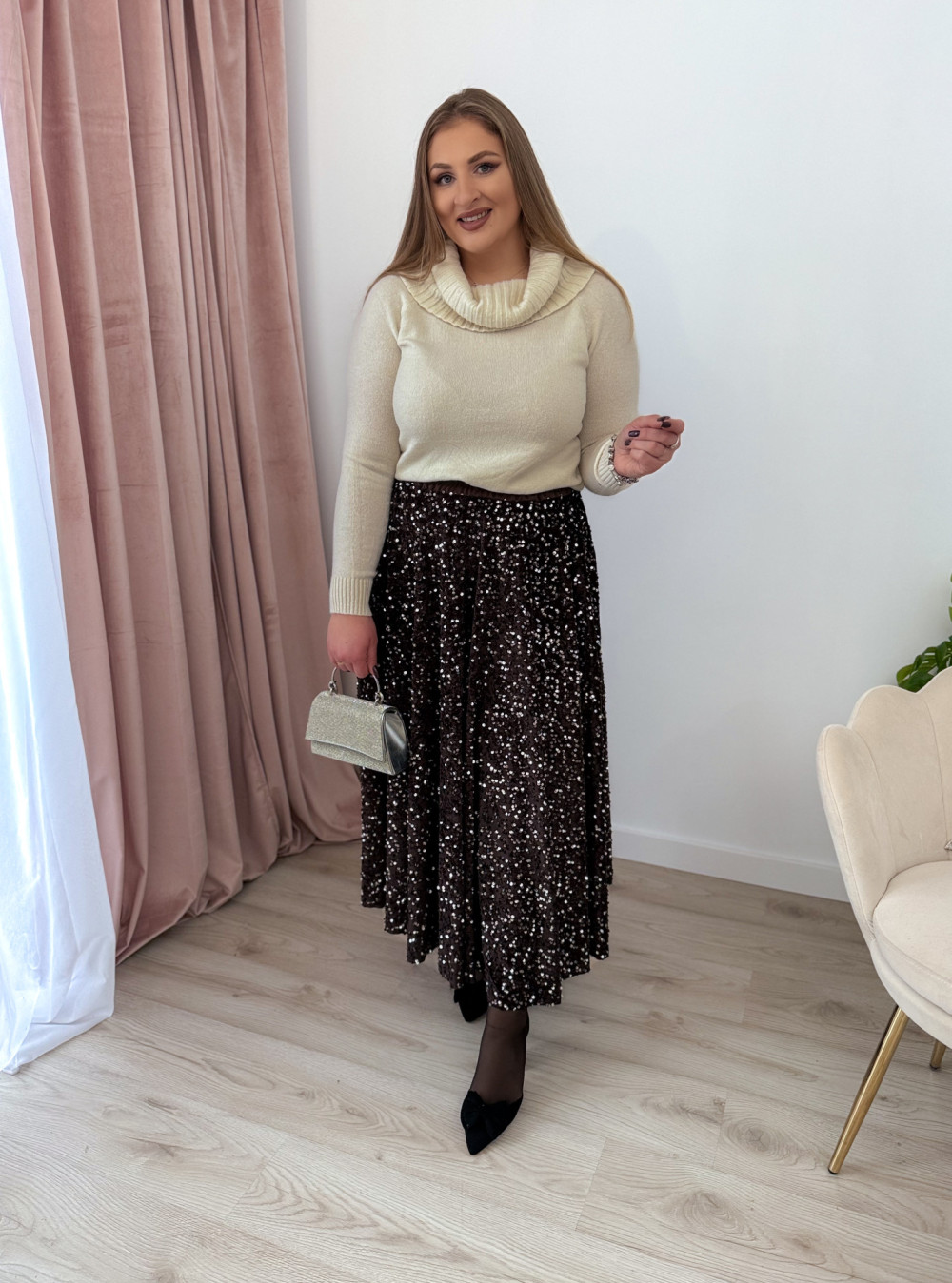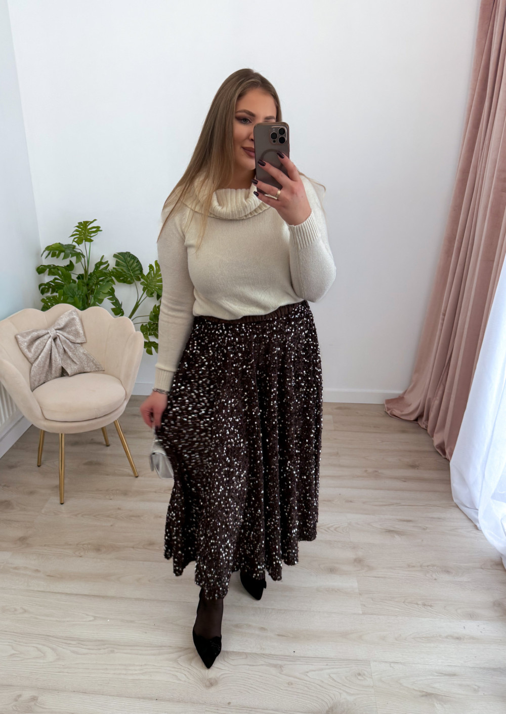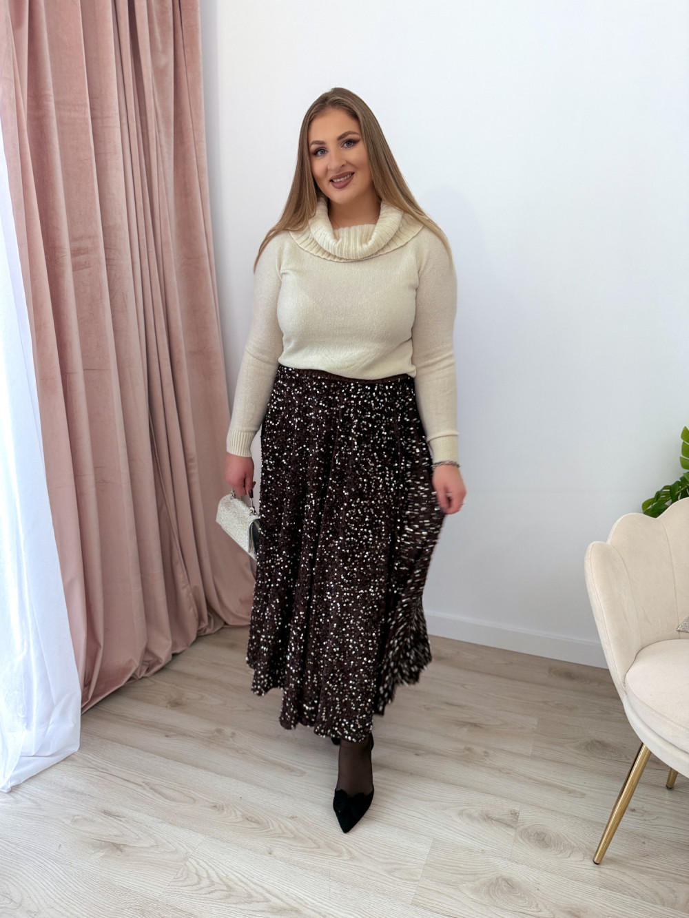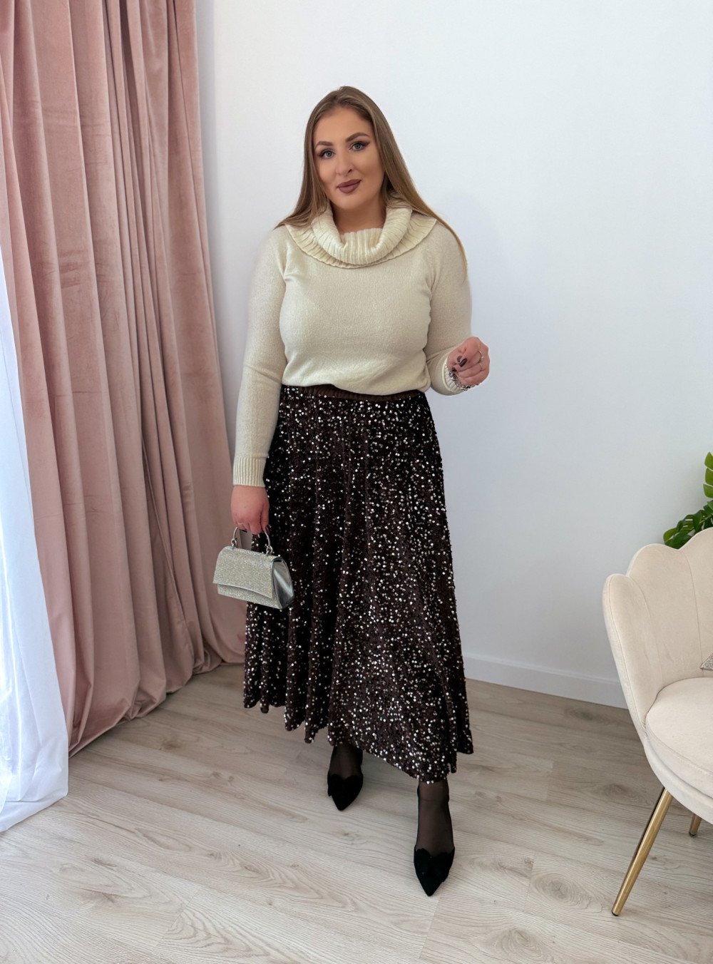Spódnica maxi błyszcząca cekinowa Shine - czekoladowa
