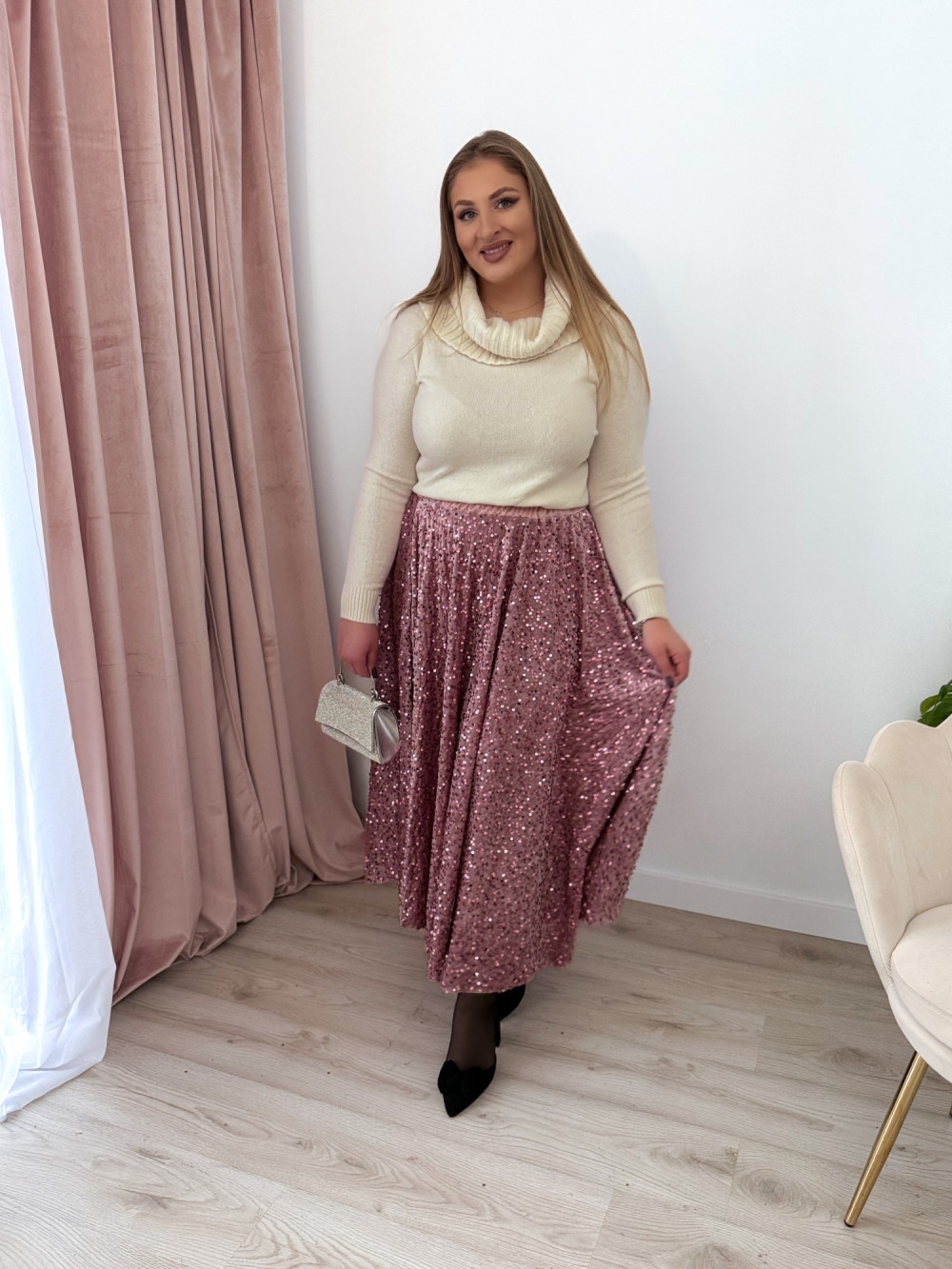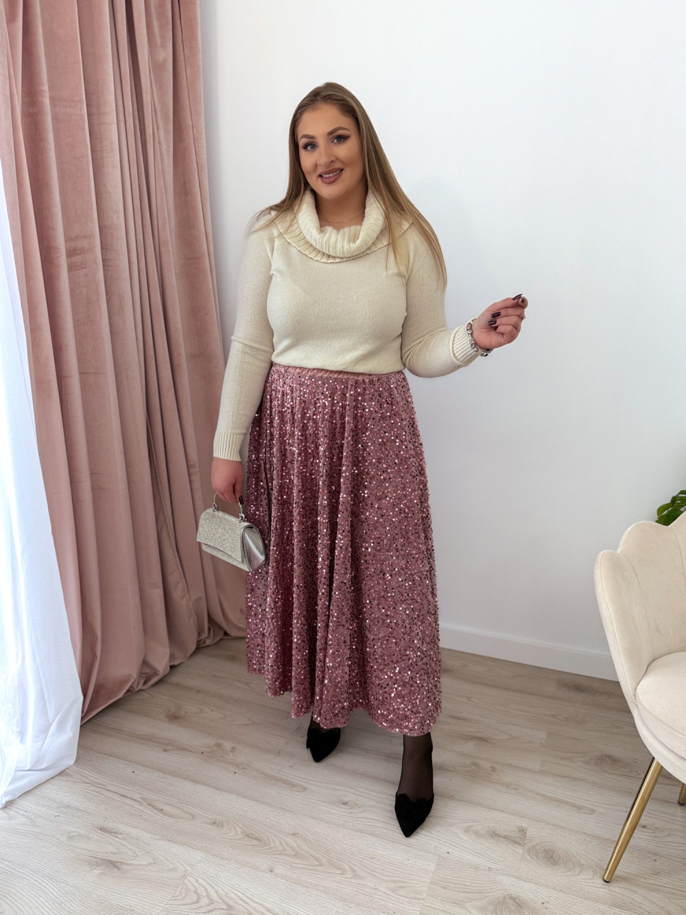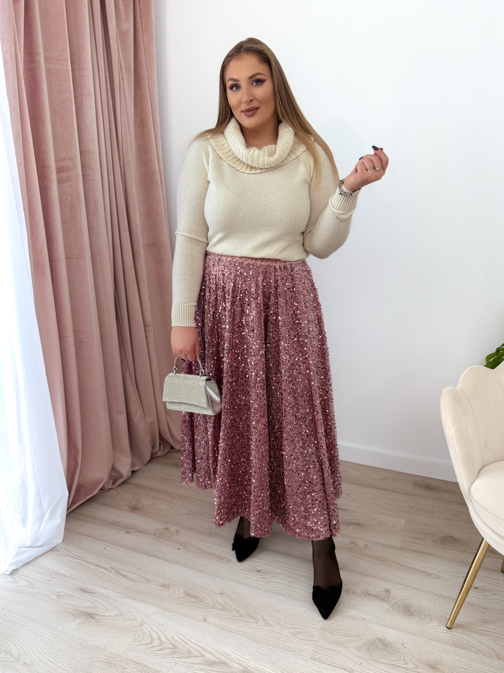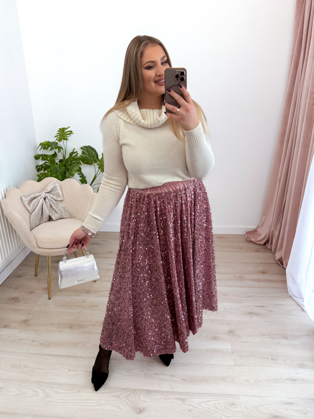 Spódnica maxi błyszcząca cekinowa Shine - pudrowy róż