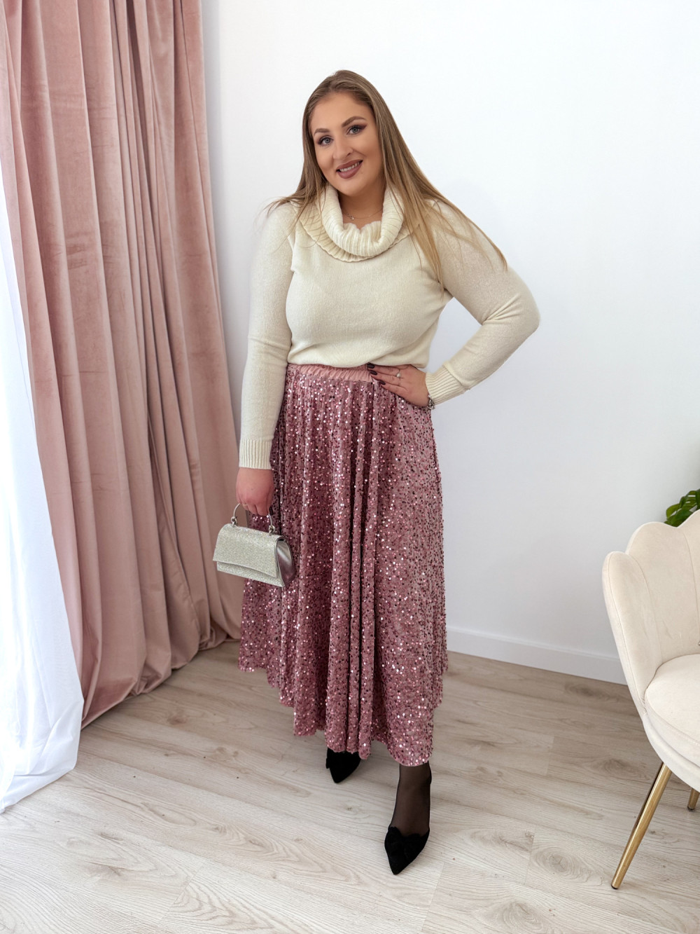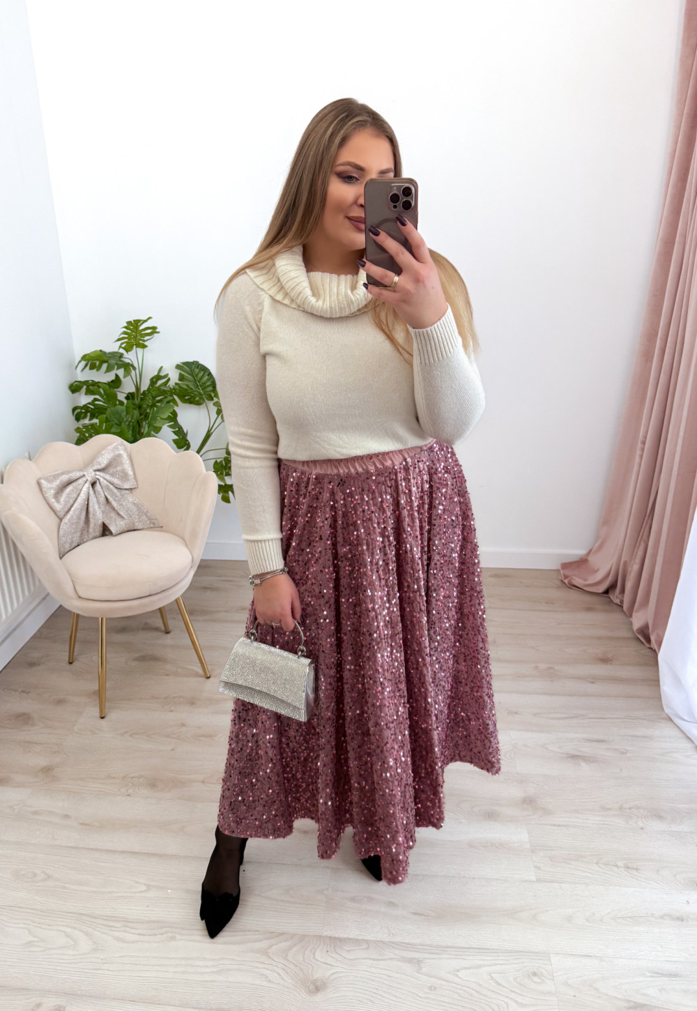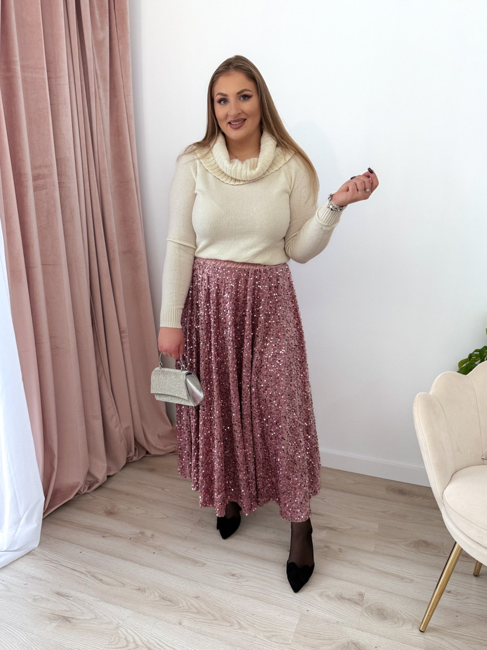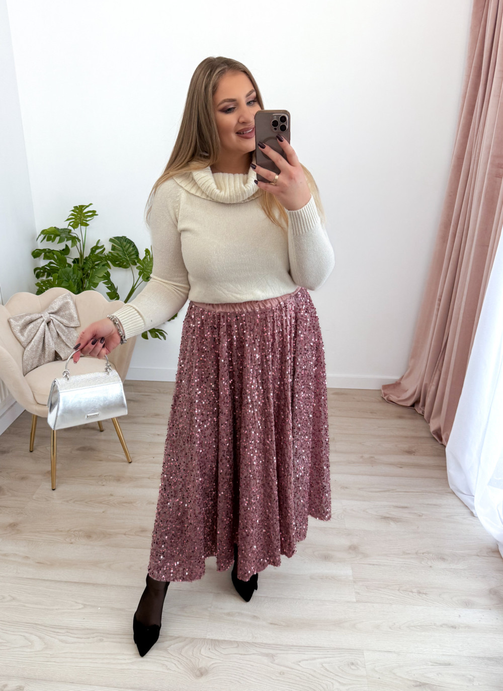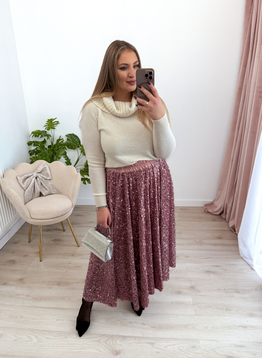Spódnica maxi błyszcząca cekinowa Shine - pudrowy róż
