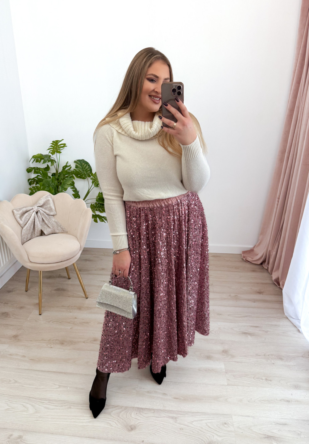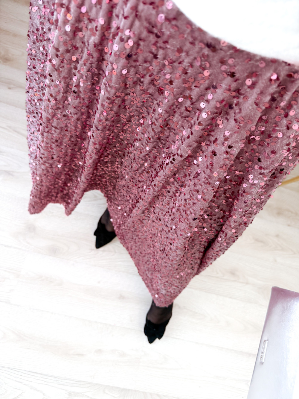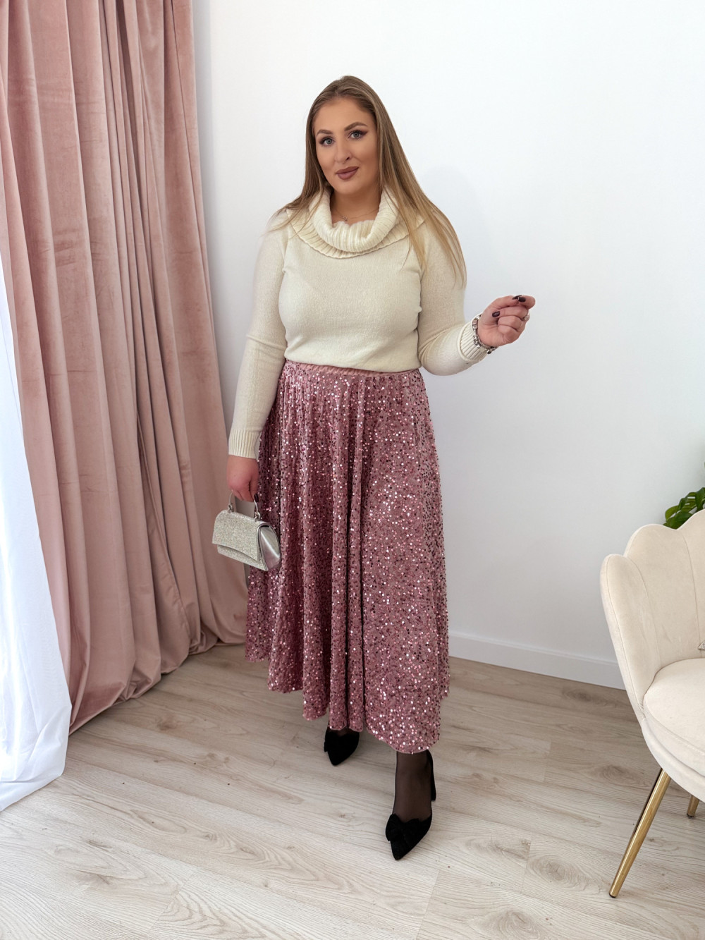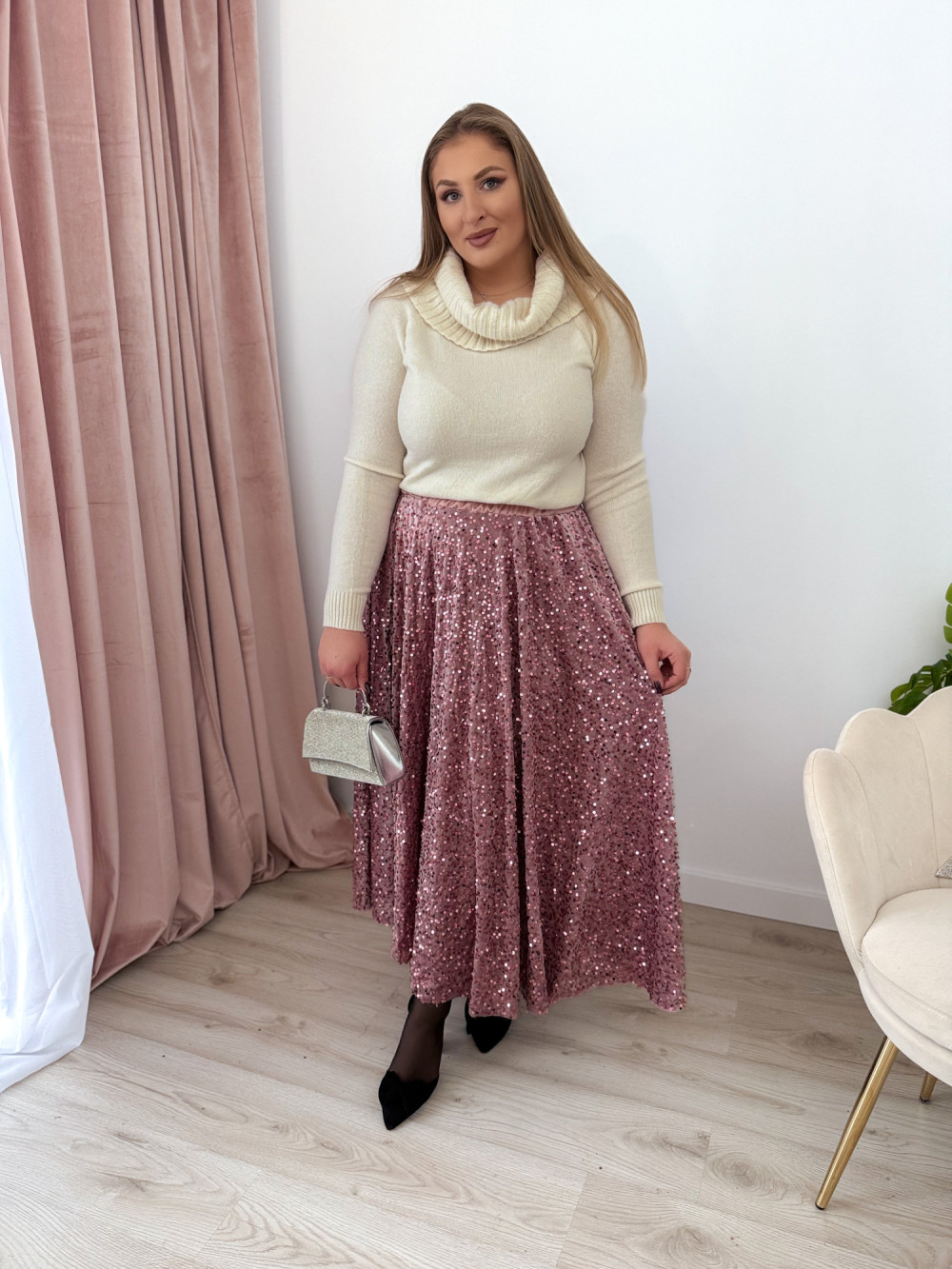 Spódnica maxi błyszcząca cekinowa Shine - pudrowy róż