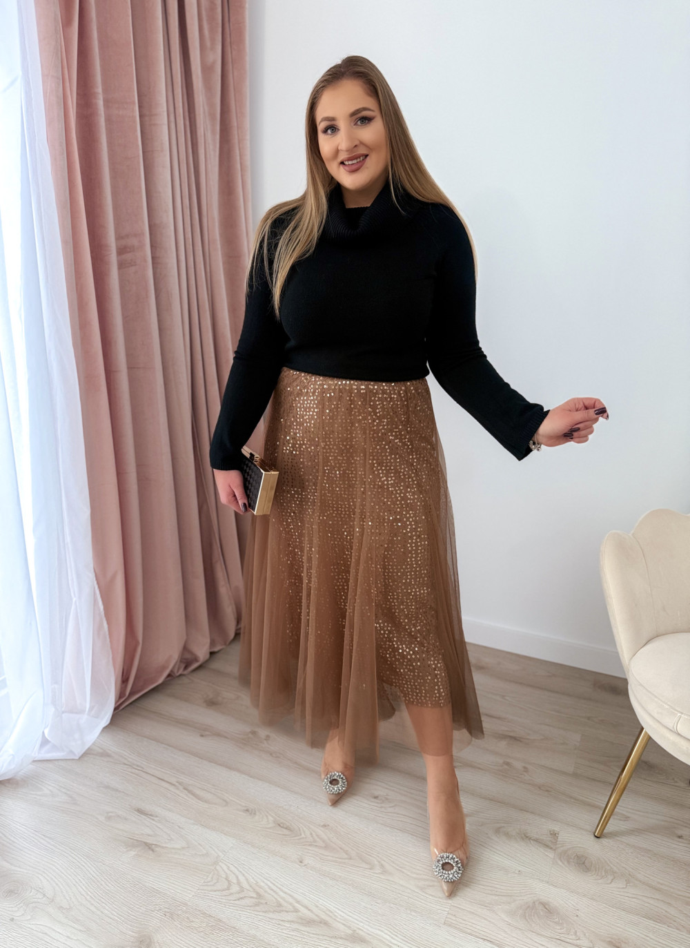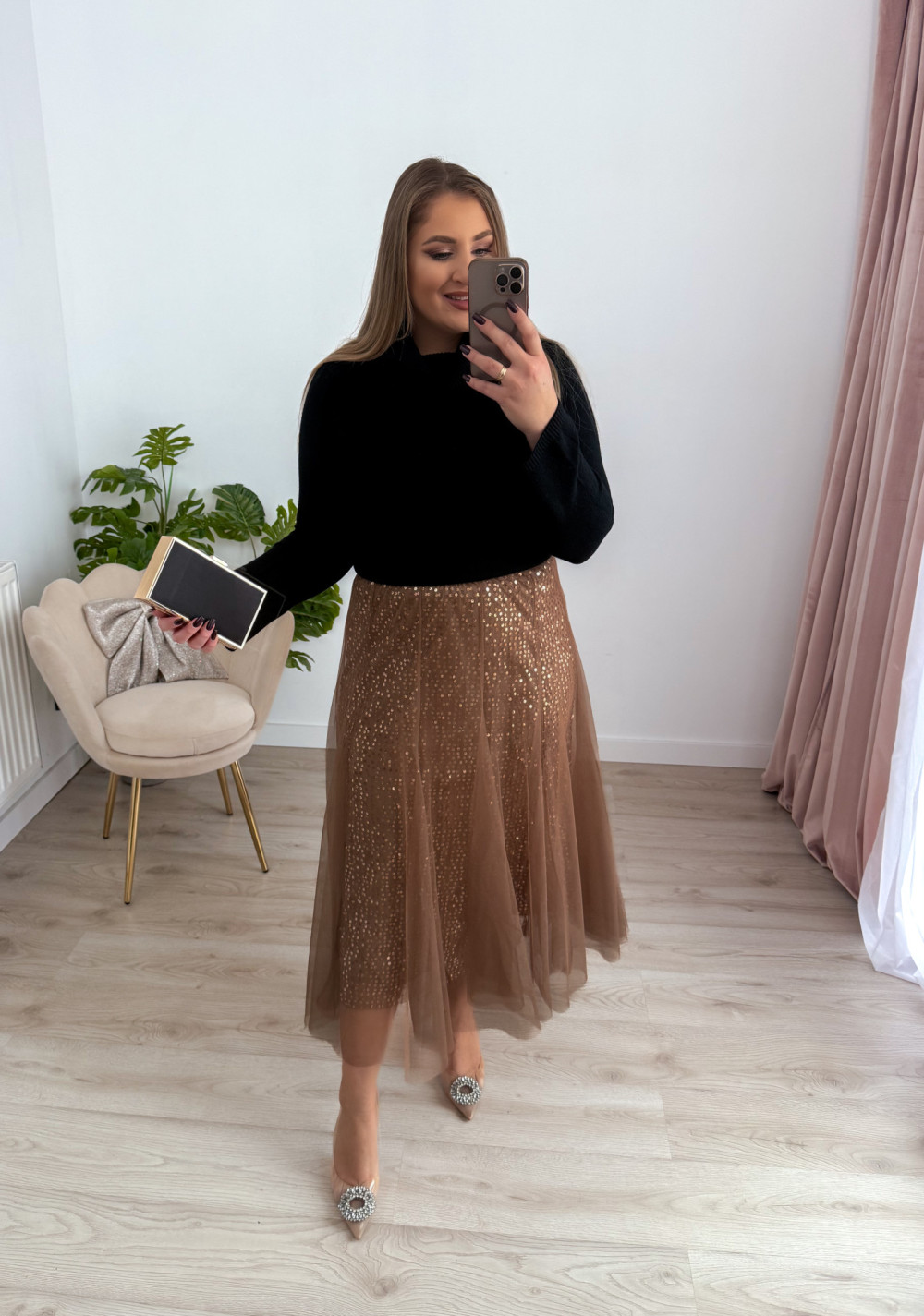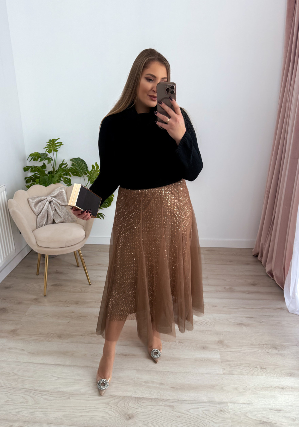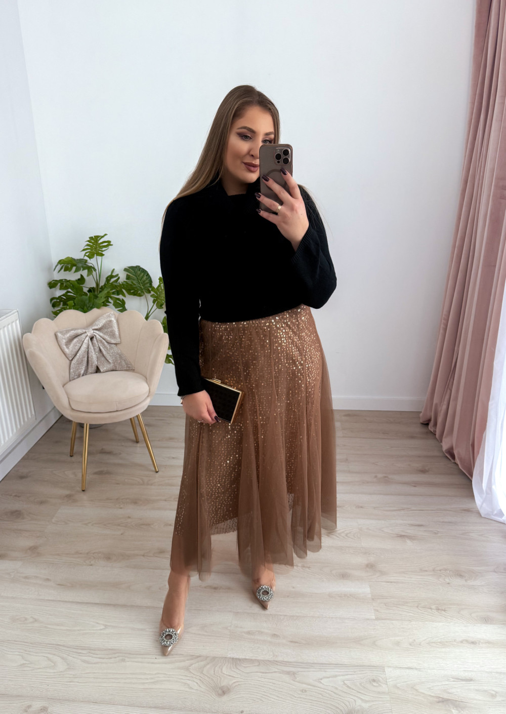 Spódnica tiulowa z cekinami Glow Tulle - karmel