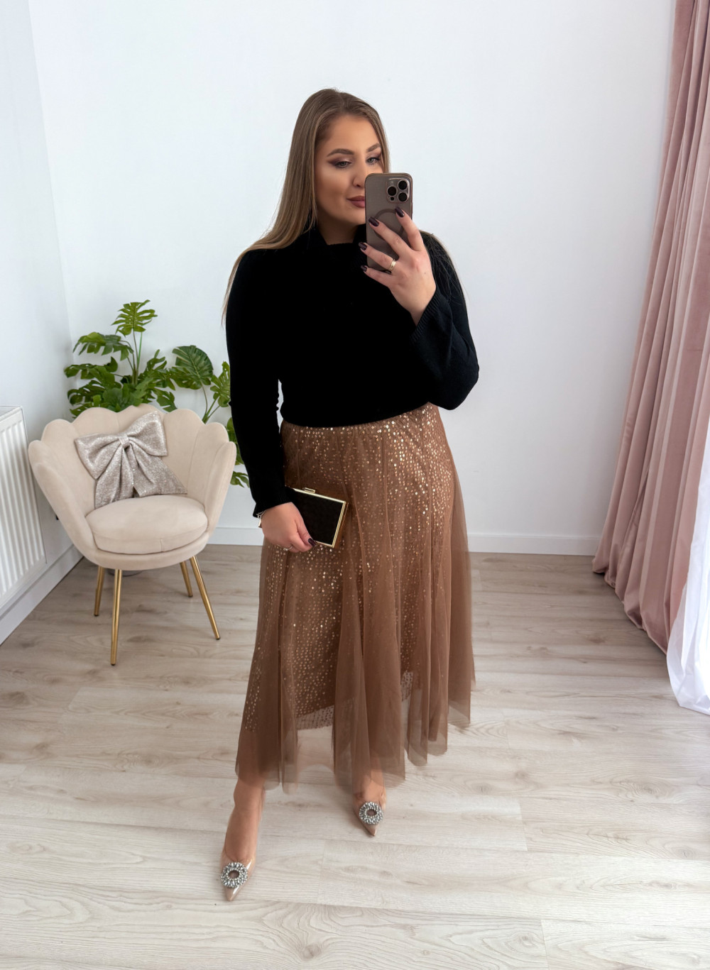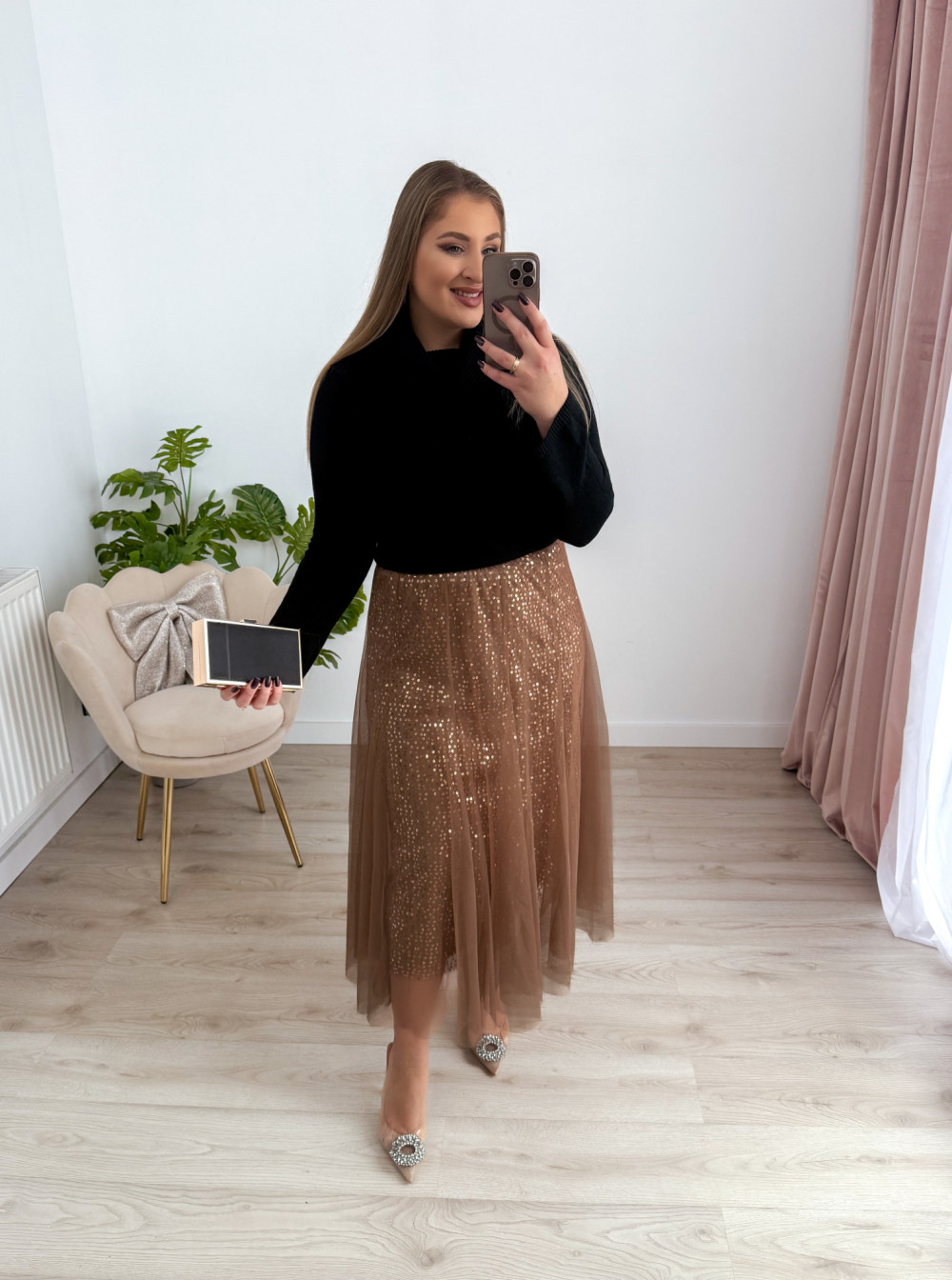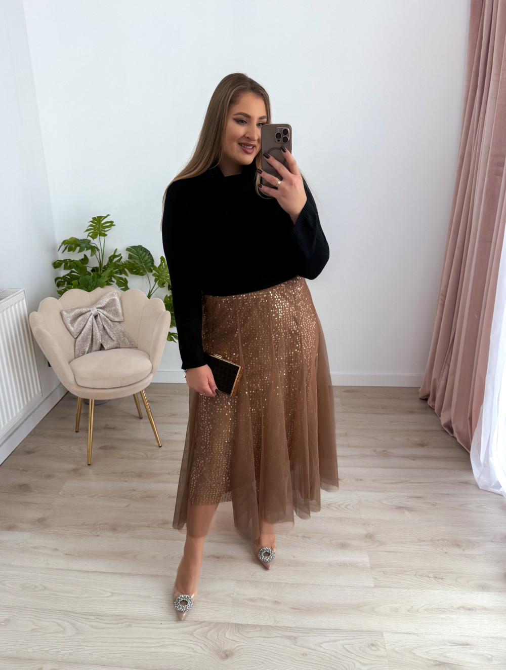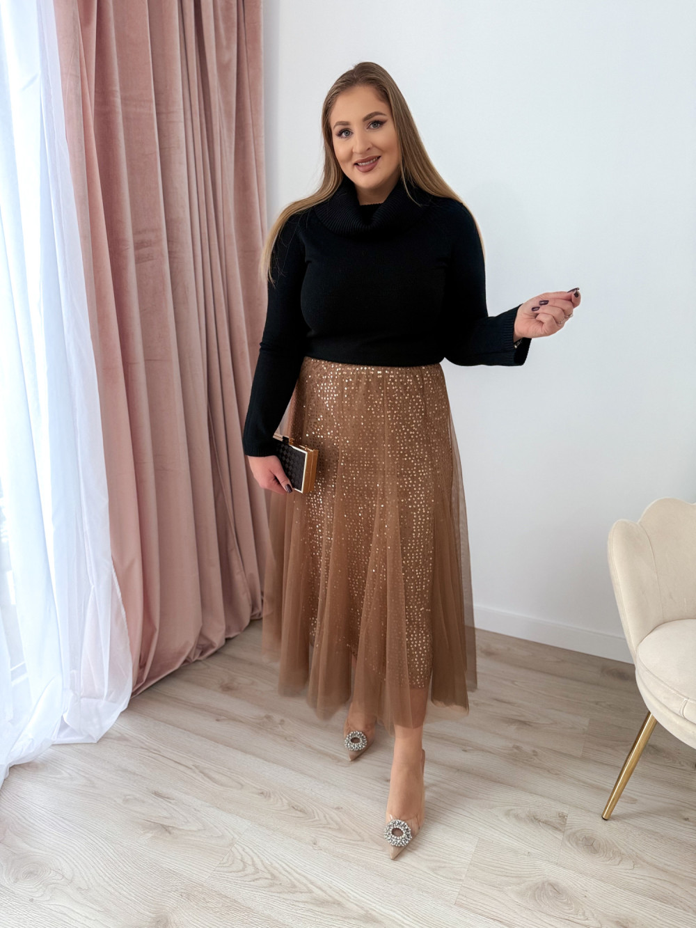 Spódnica tiulowa z cekinami Glow Tulle - karmel