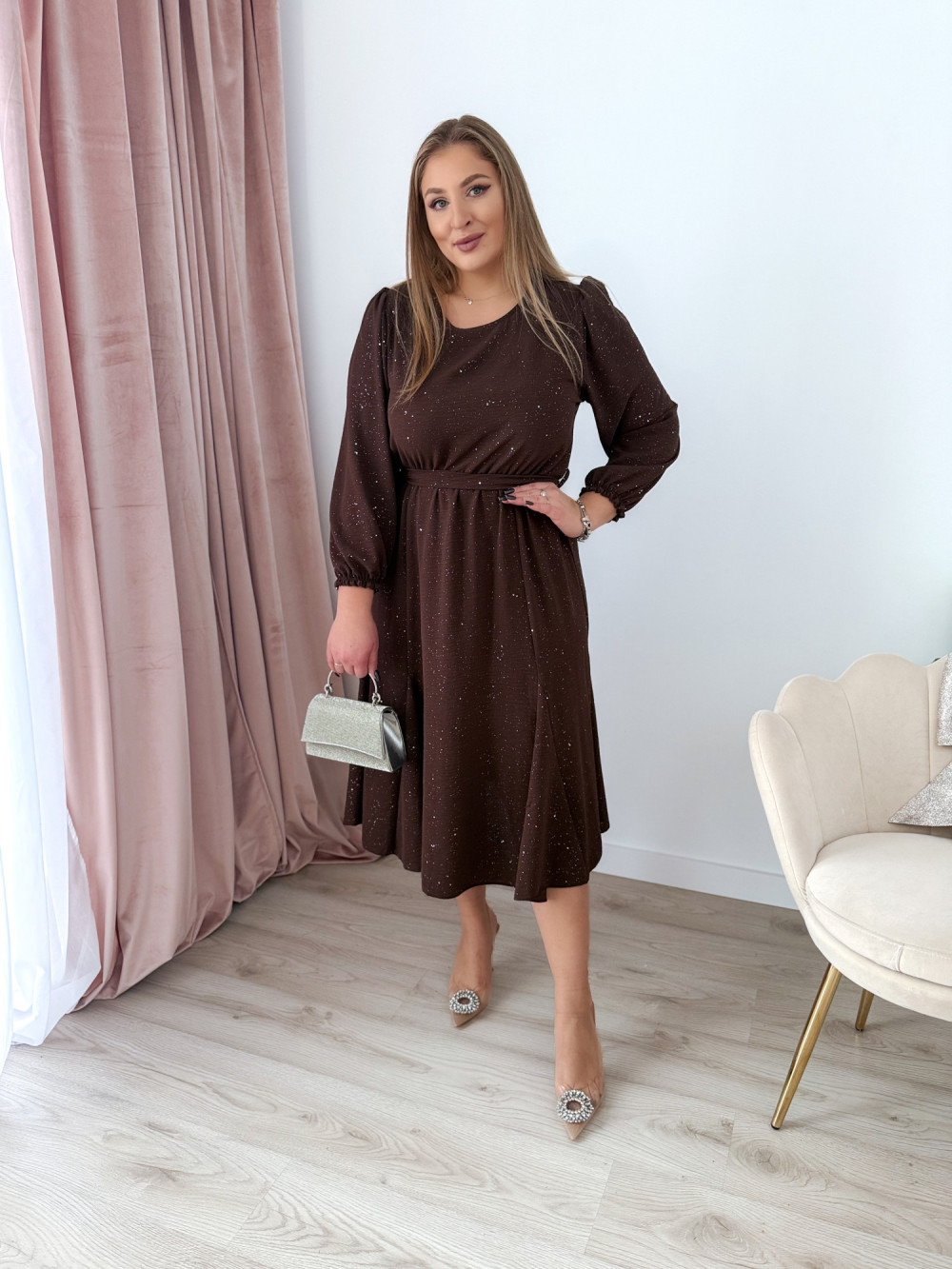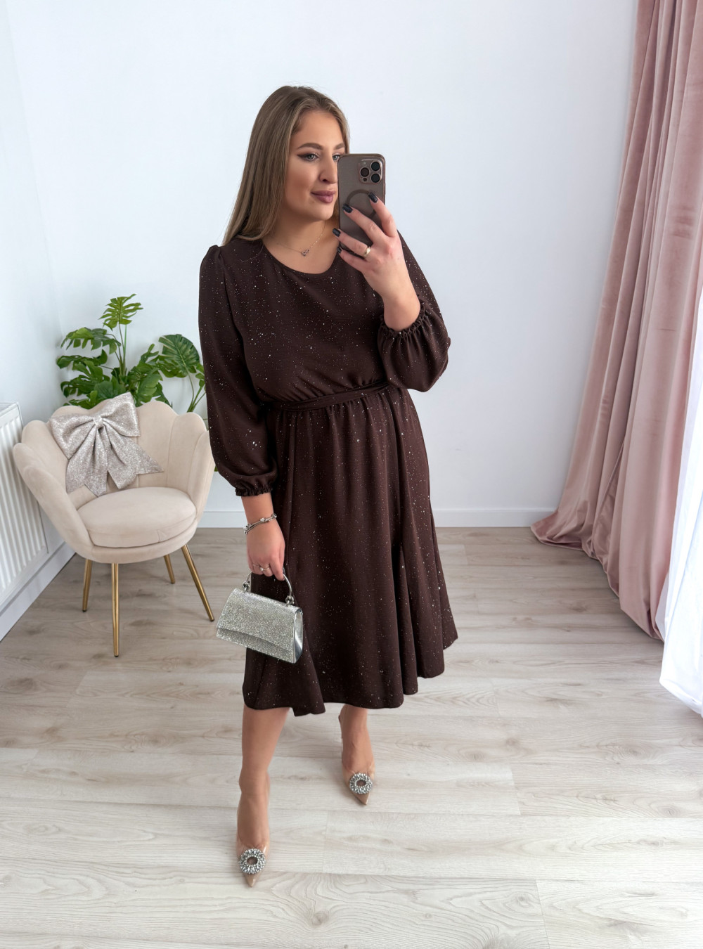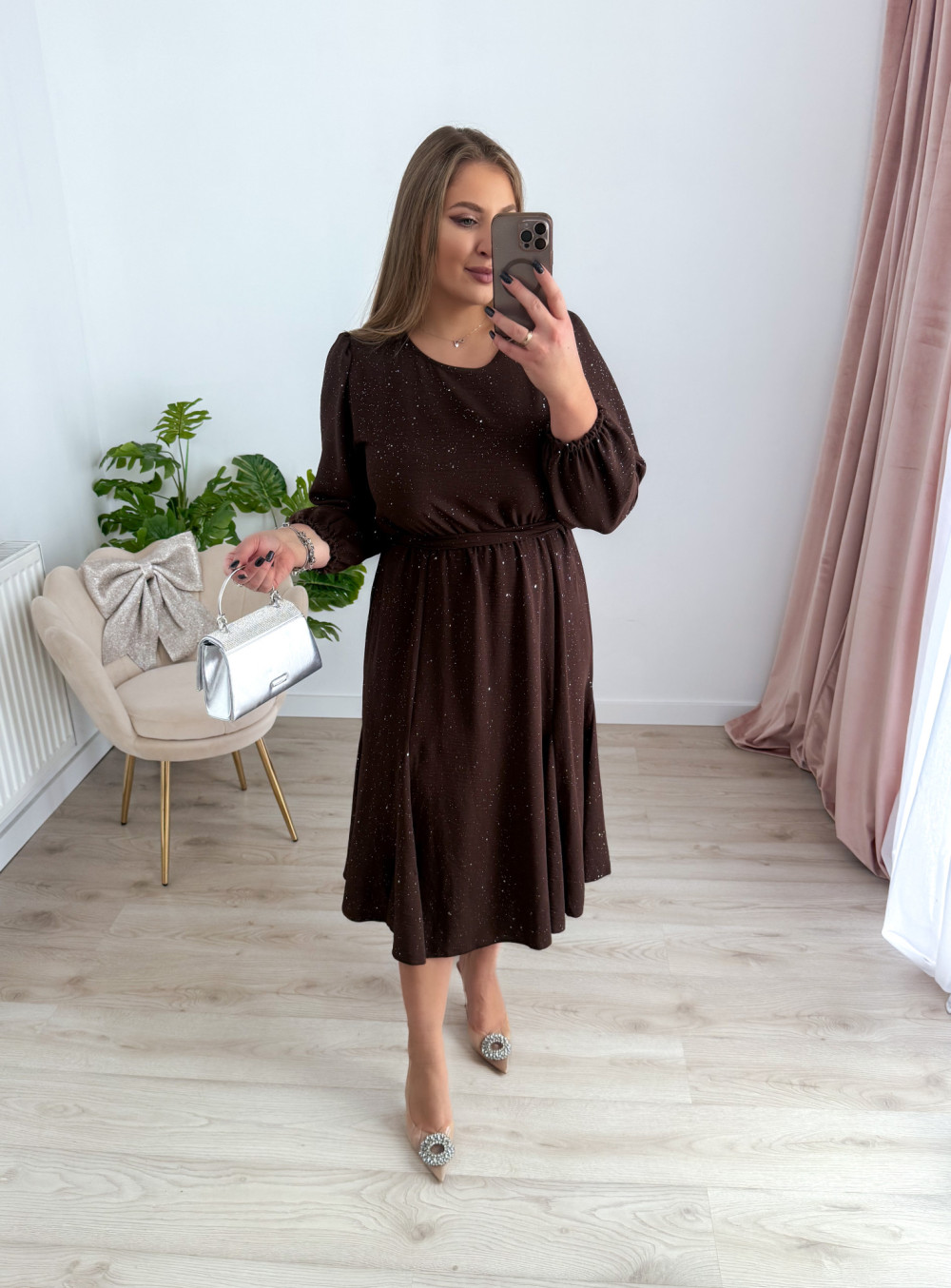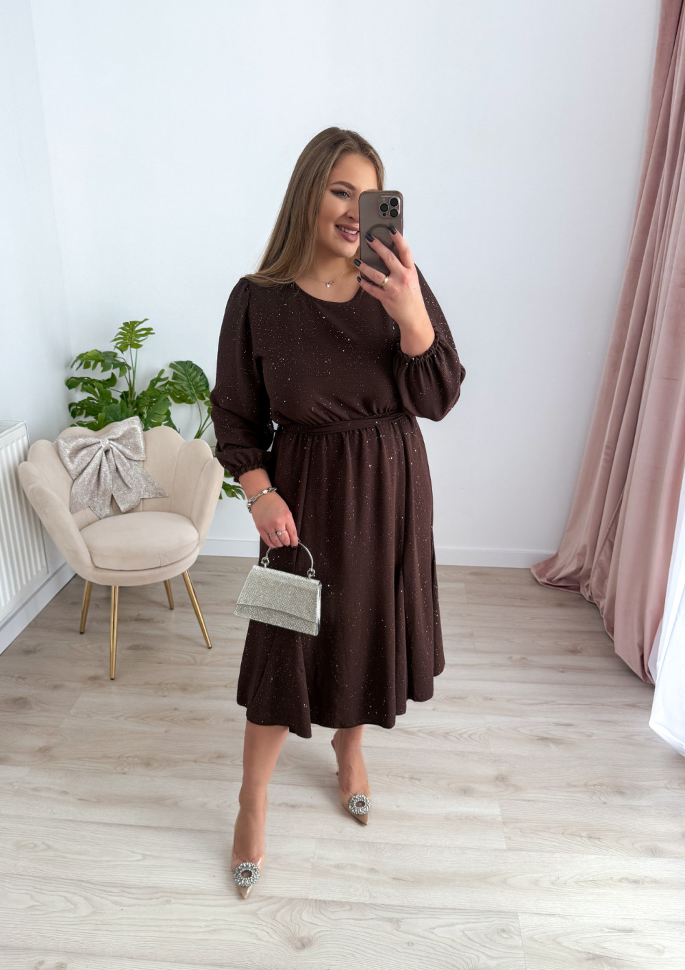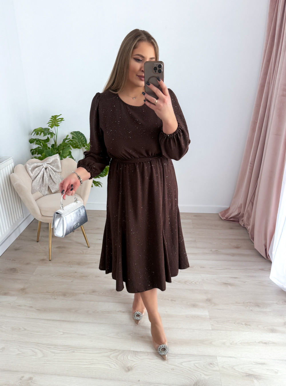Sukienka midi ze srebrnymi drobinkami Dominica - czekolada