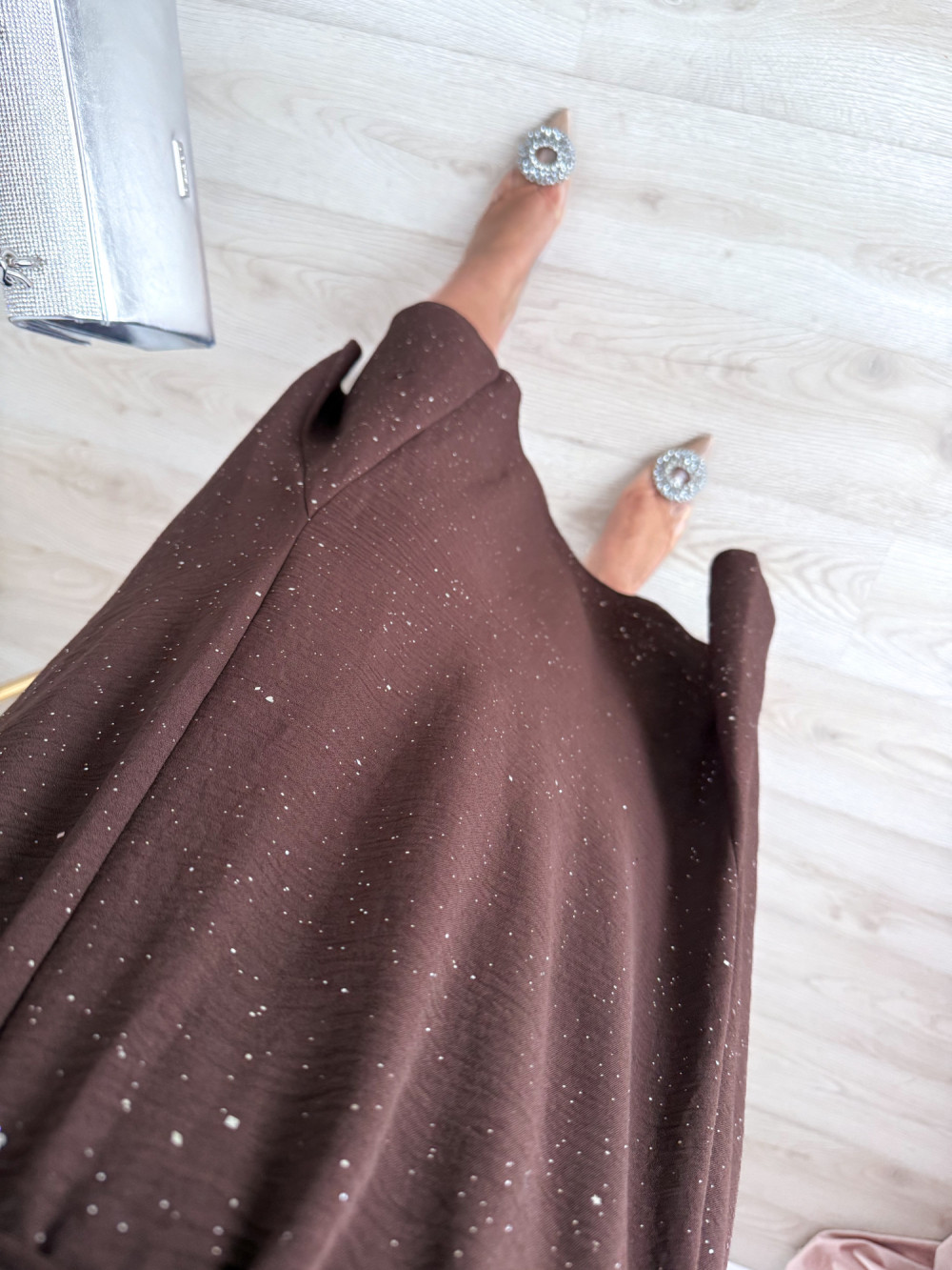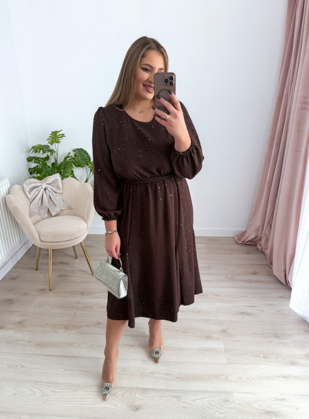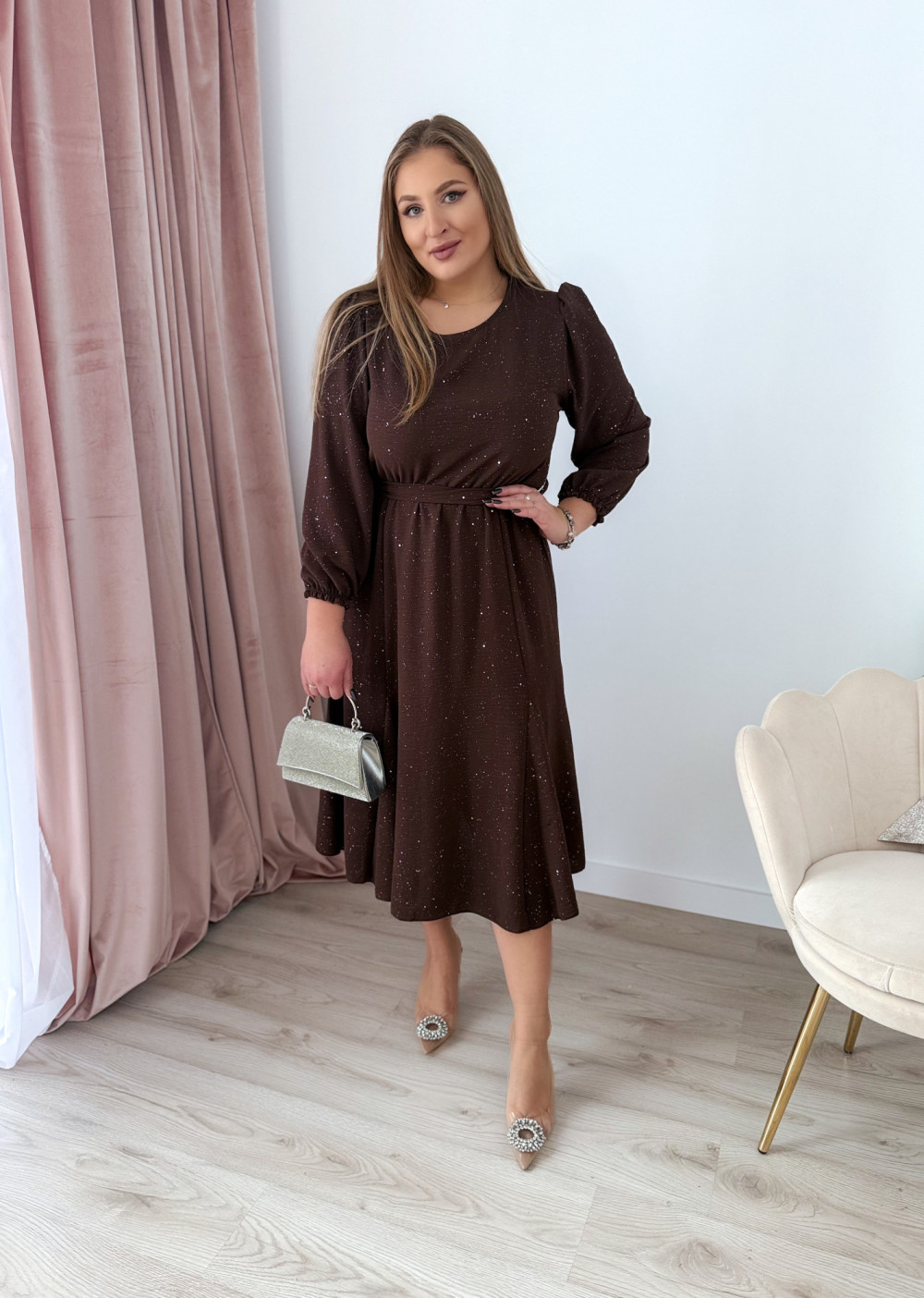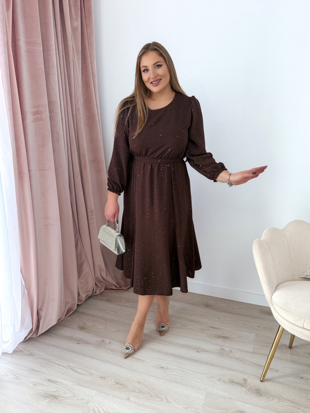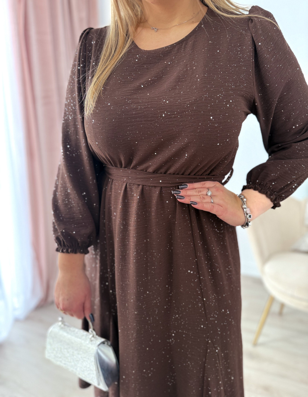 Sukienka midi ze srebrnymi drobinkami Dominica - czekolada