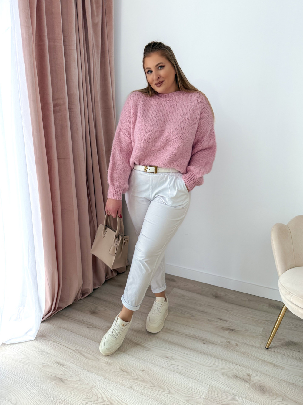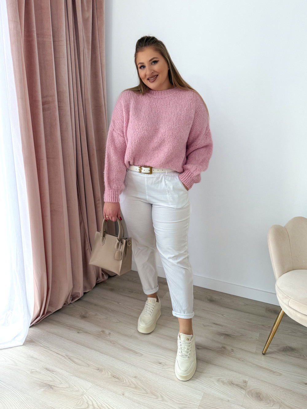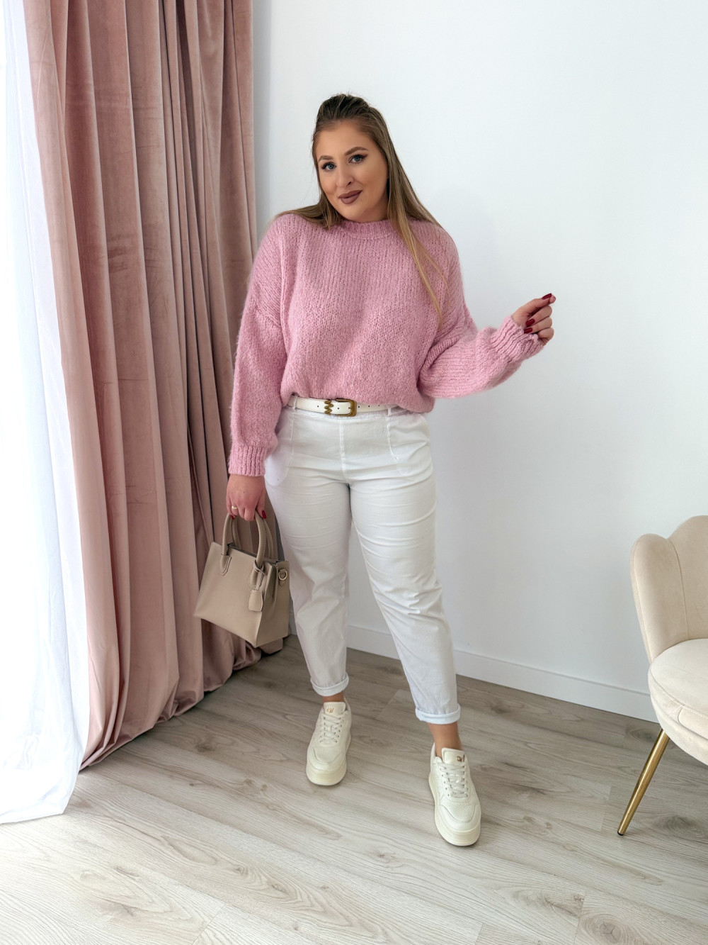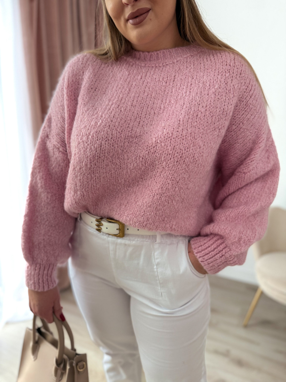 Sweter o fasonie oversize to idealna propozycja dla osób ceniących wygodę i modny, swobodny styl. Klasyczny okrągły dekolt oraz długi rękaw sprawiają, że model jest uniwersalny i doskonale sprawdzi się w codziennych stylizacjach. Wykonany w 65% z akrylu, sweter jest miękki, lekki i przyjemny w noszeniu, a jednocześnie łatwy w pielęgnacji. Świetnie komponuje się zarówno z jeansami, jak i legginsami czy spódnicą.