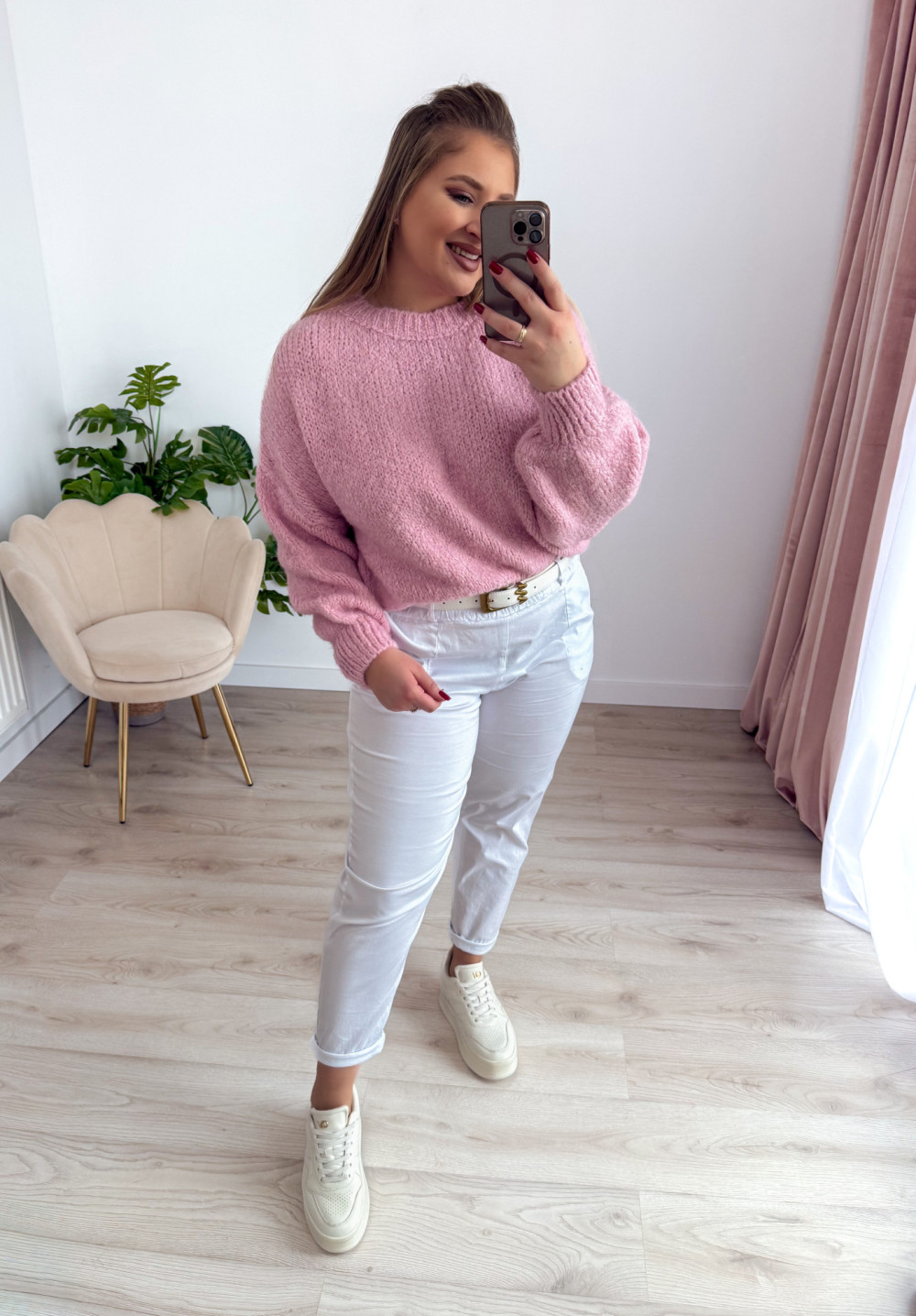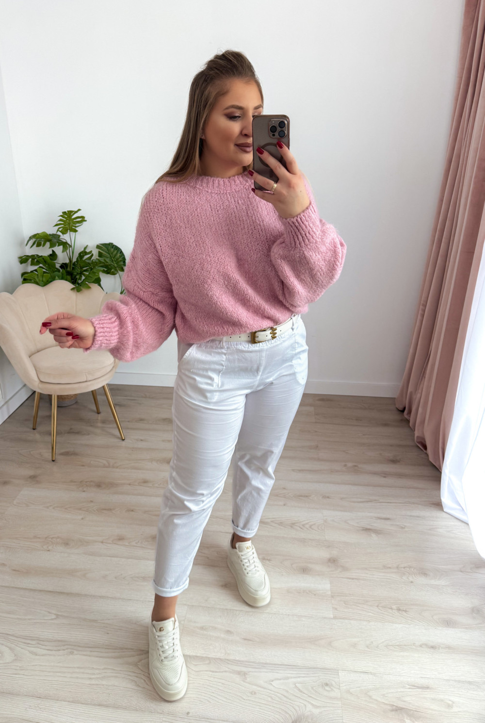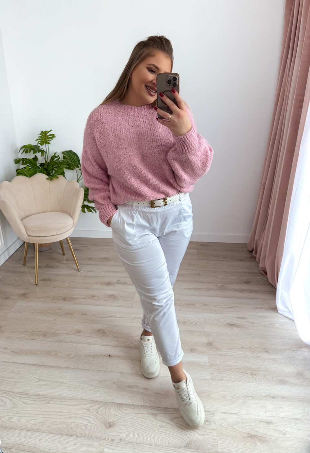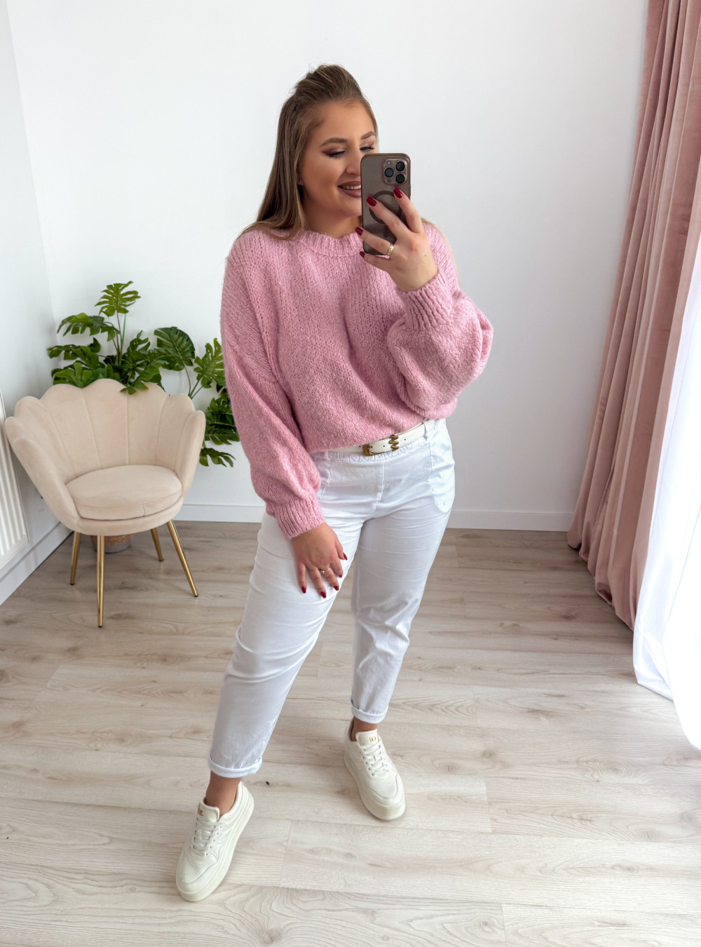 Sweter o fasonie oversize to idealna propozycja dla osób ceniących wygodę i modny, swobodny styl. Klasyczny okrągły dekolt oraz długi rękaw sprawiają, że model jest uniwersalny i doskonale sprawdzi się w codziennych stylizacjach. Wykonany w 65% z akrylu, sweter jest miękki, lekki i przyjemny w noszeniu, a jednocześnie łatwy w pielęgnacji. Świetnie komponuje się zarówno z jeansami, jak i legginsami czy spódnicą.