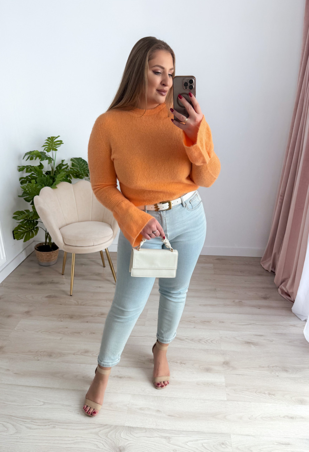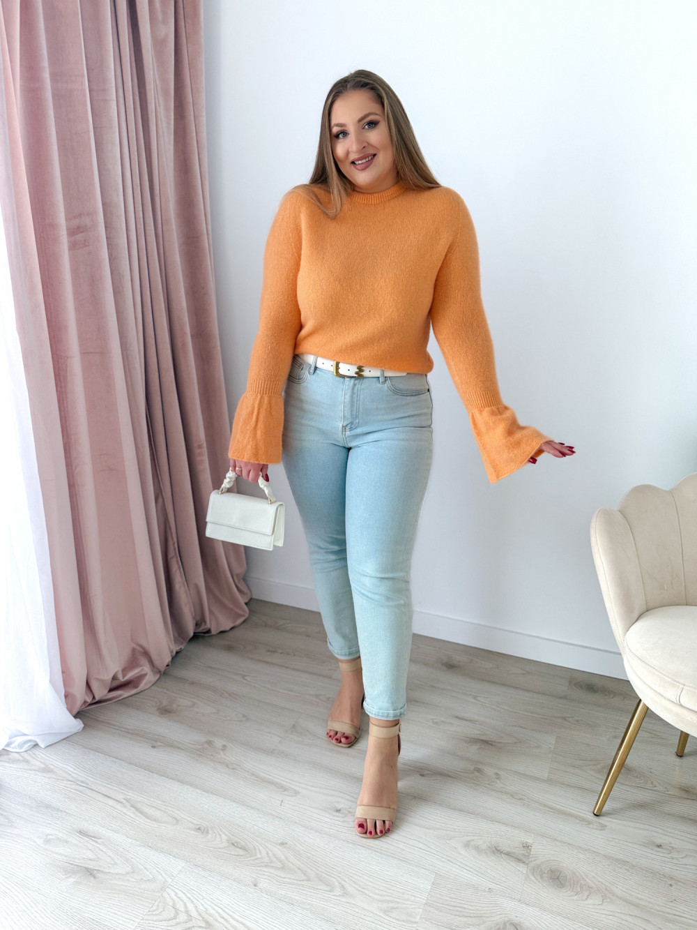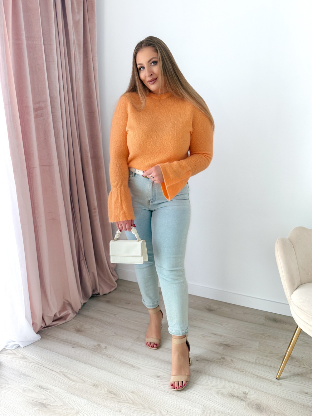 Sweter z rękawami dzwoneczki Sunlit - brzoskwinia