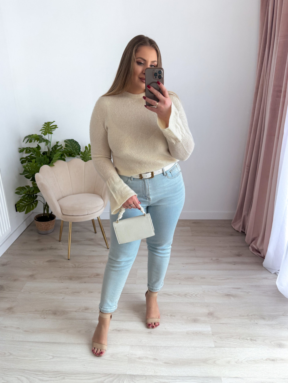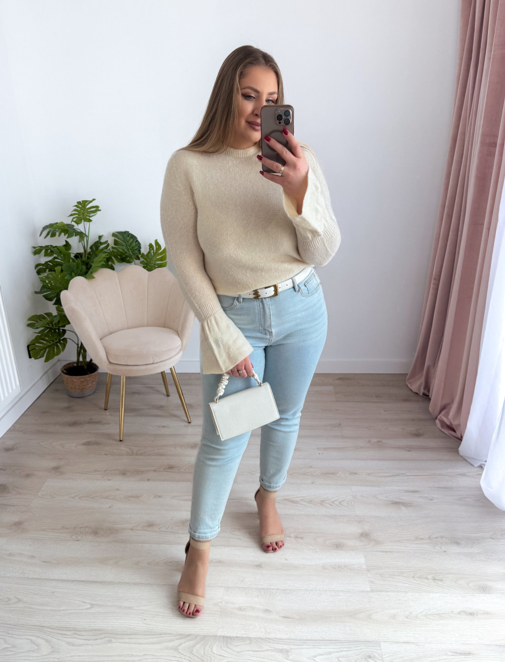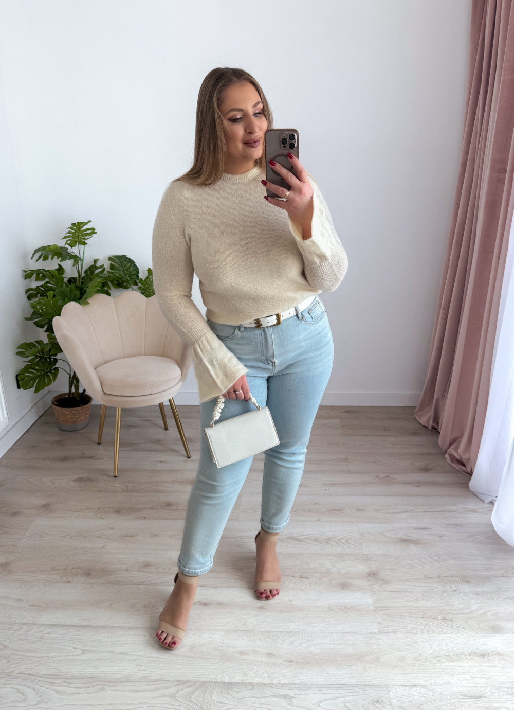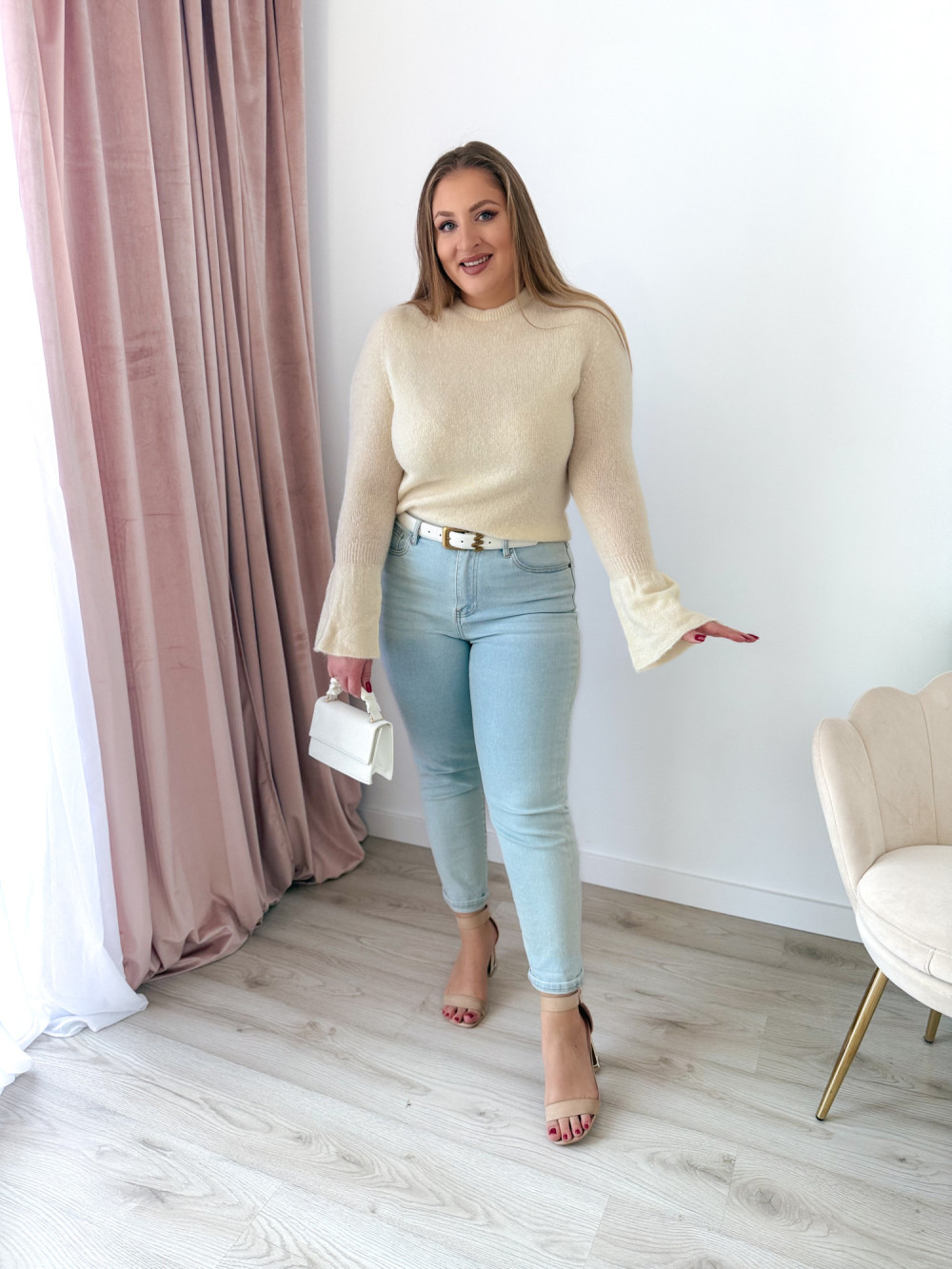 Sweter z rękawami dzwoneczki Sunlit - krem