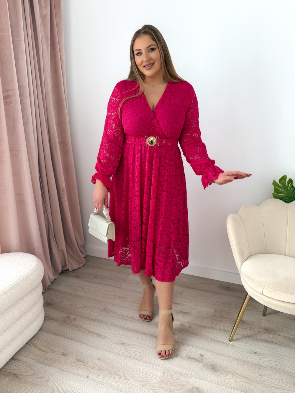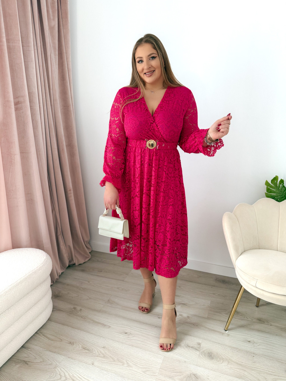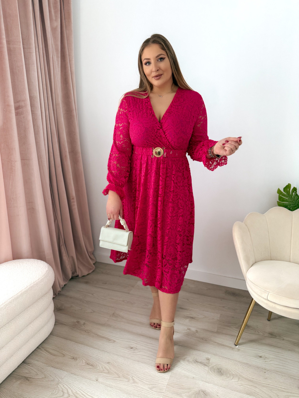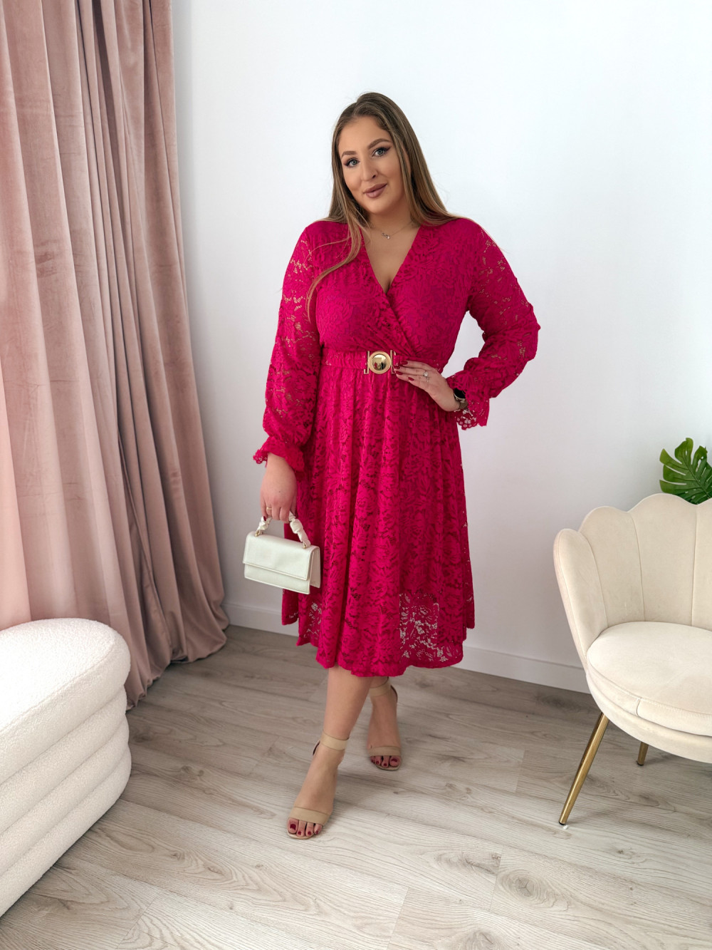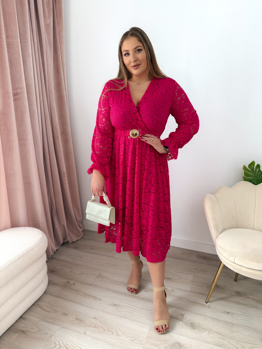 Sukienka midi koronkowa Bliss - fuksja