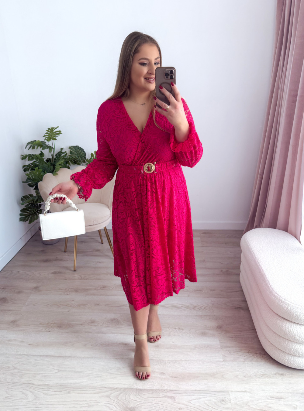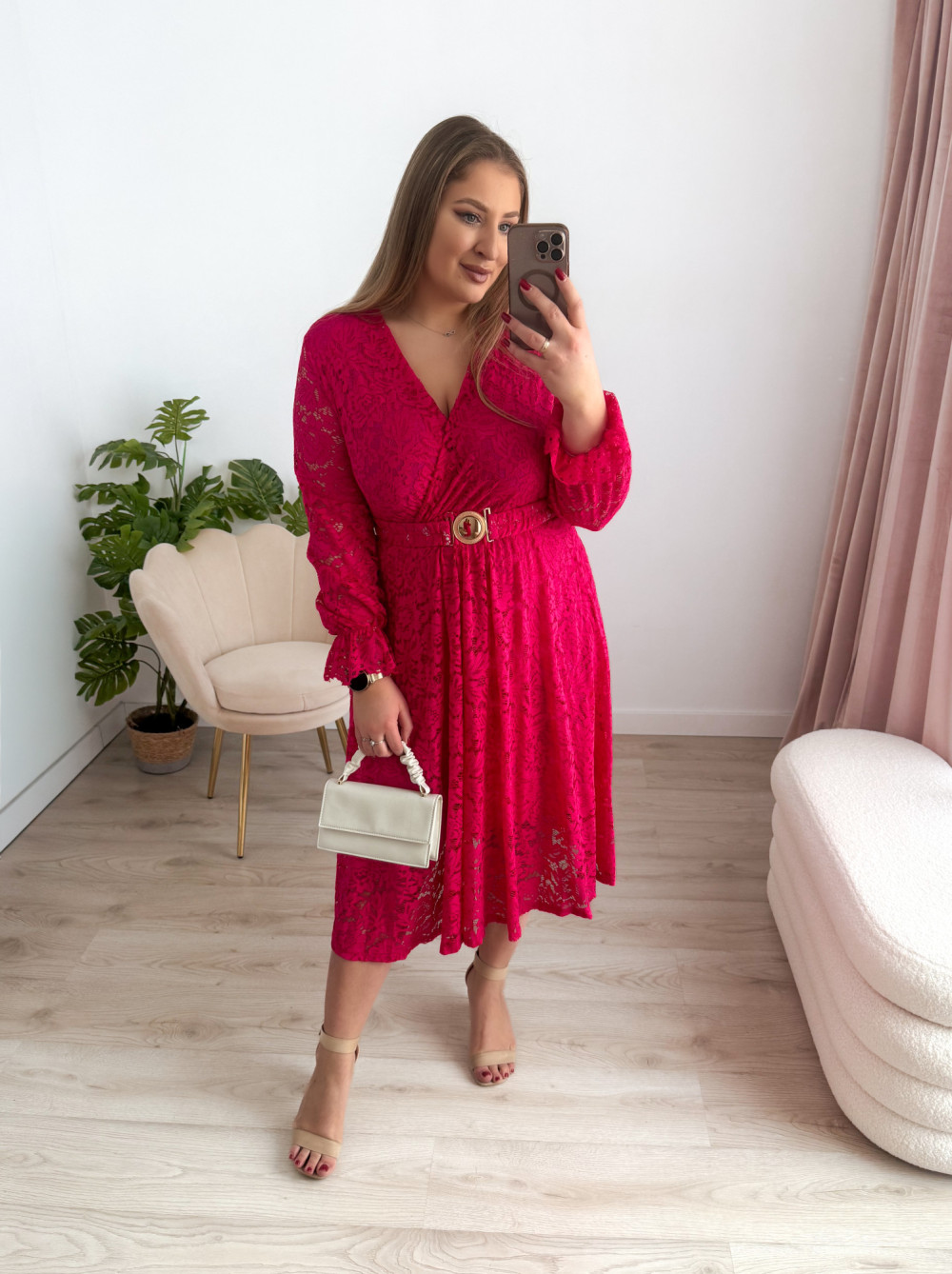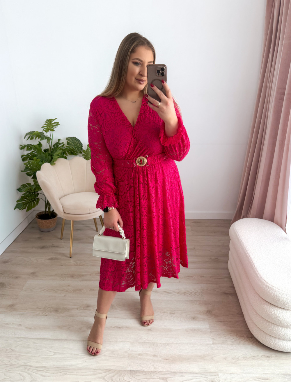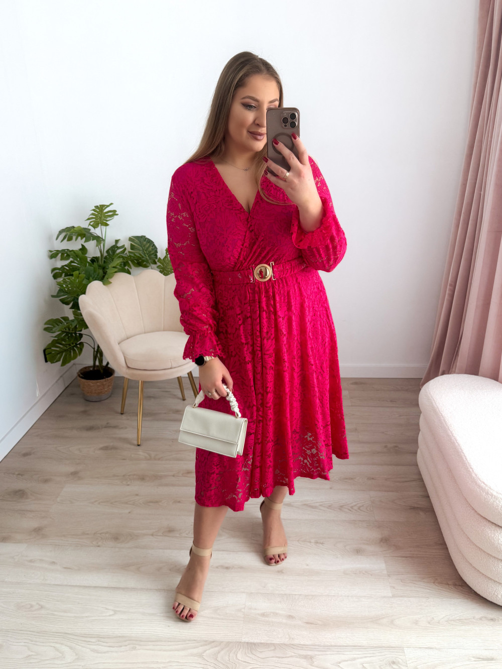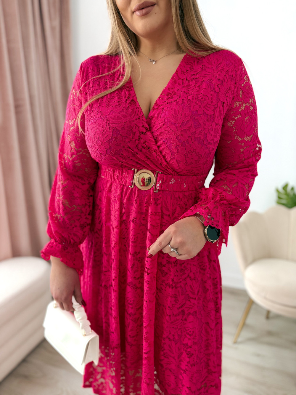 Sukienka midi koronkowa Bliss - fuksja