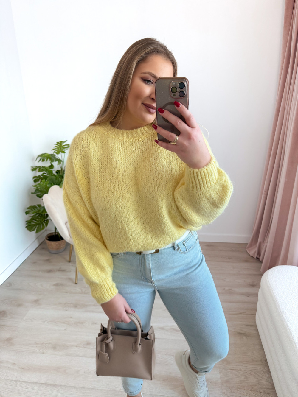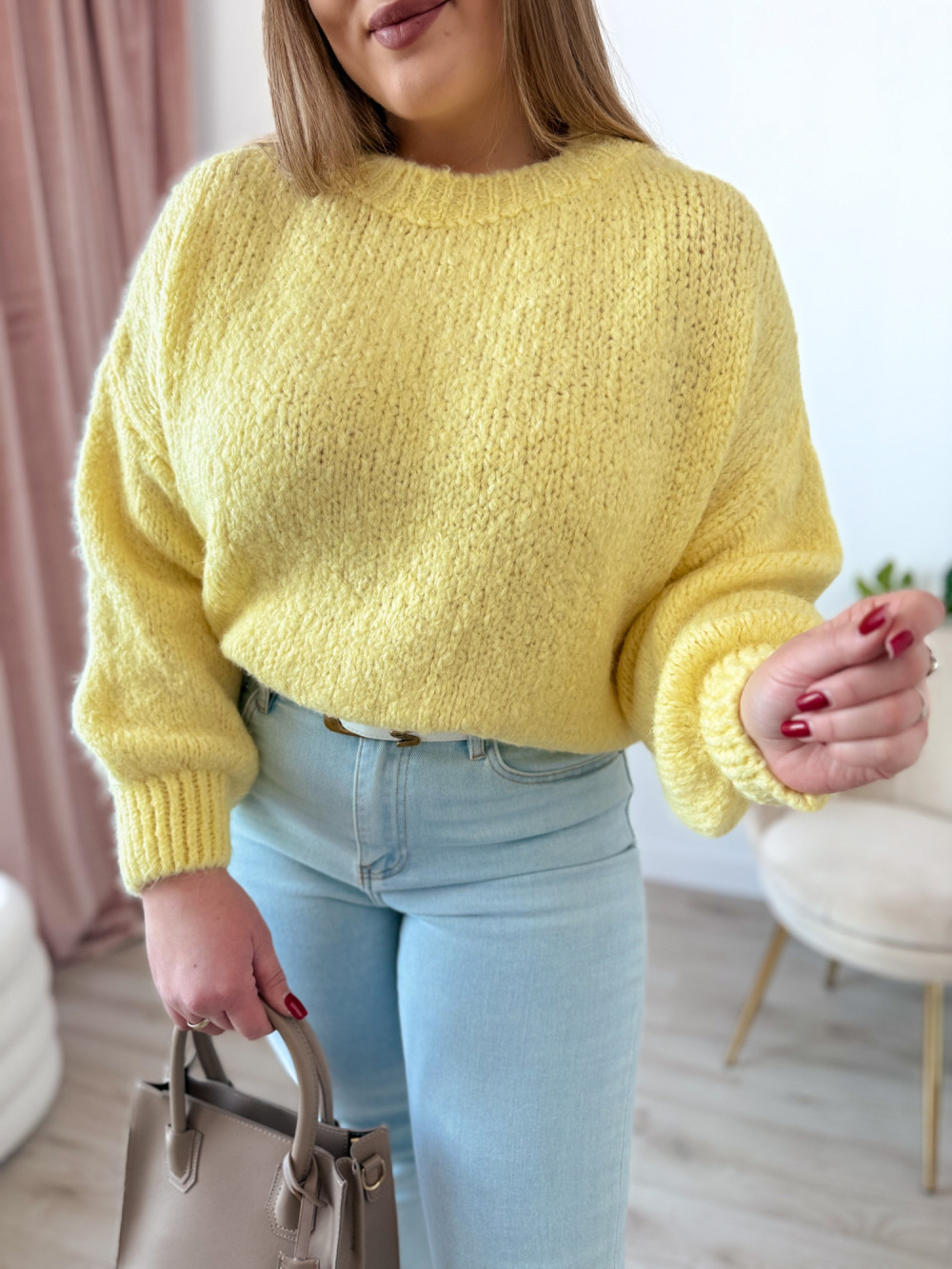 Sweter z szerokimi rękawami Claro - słoneczny